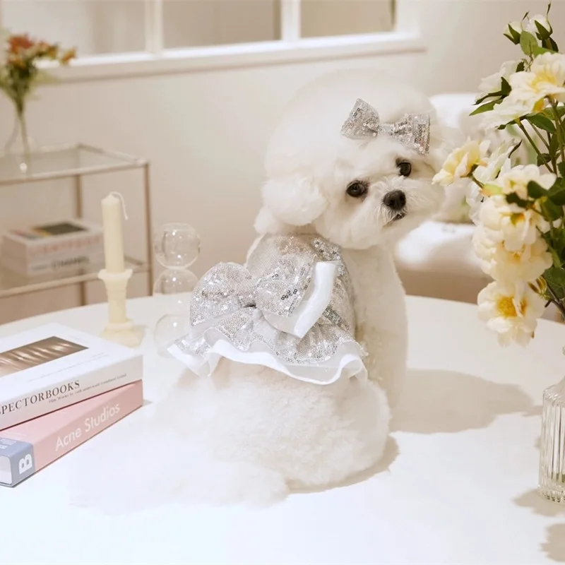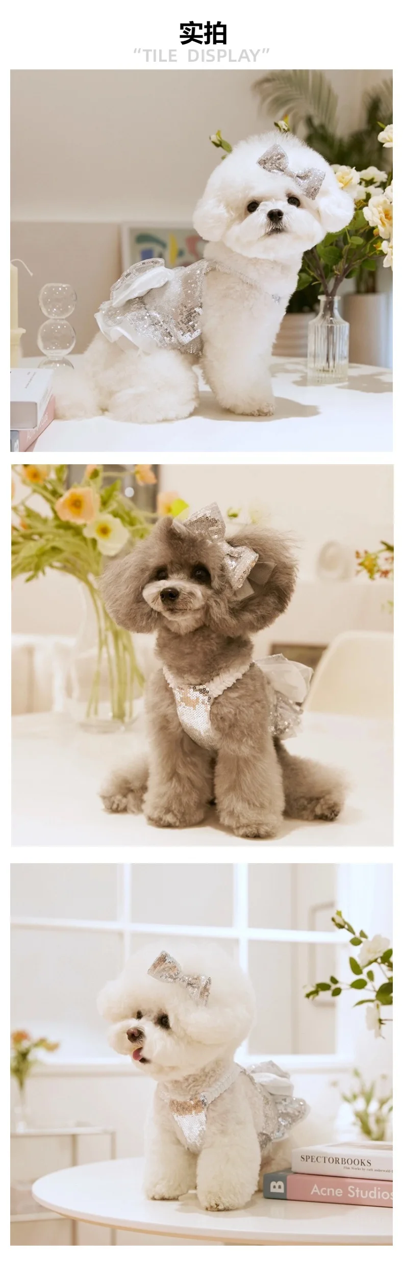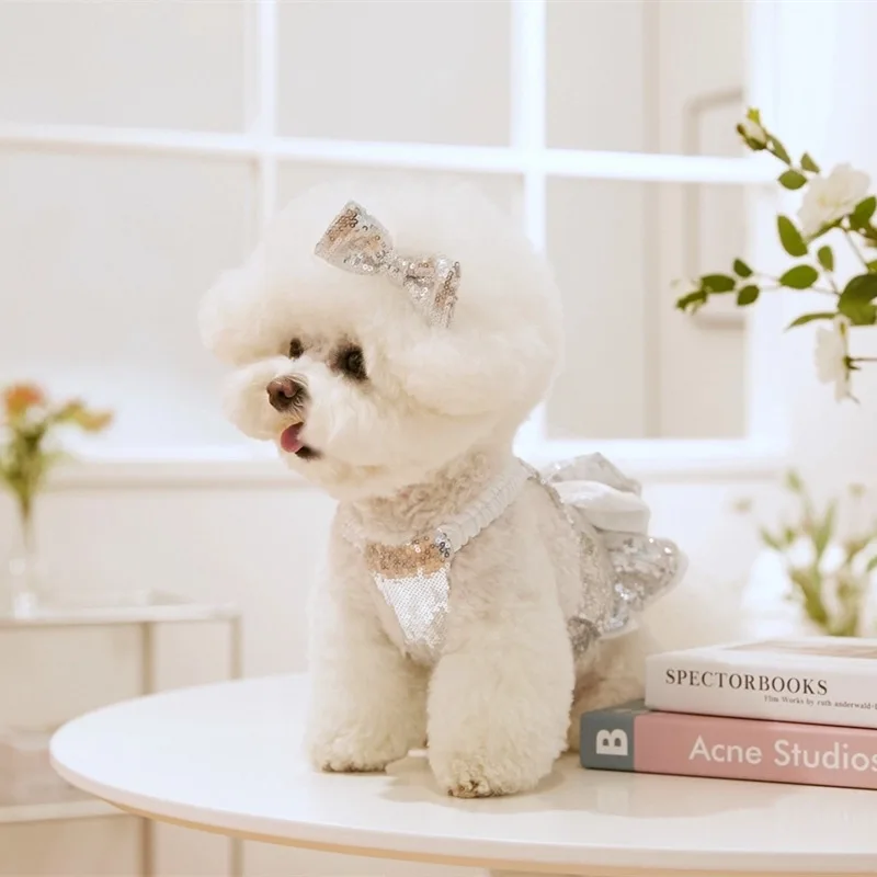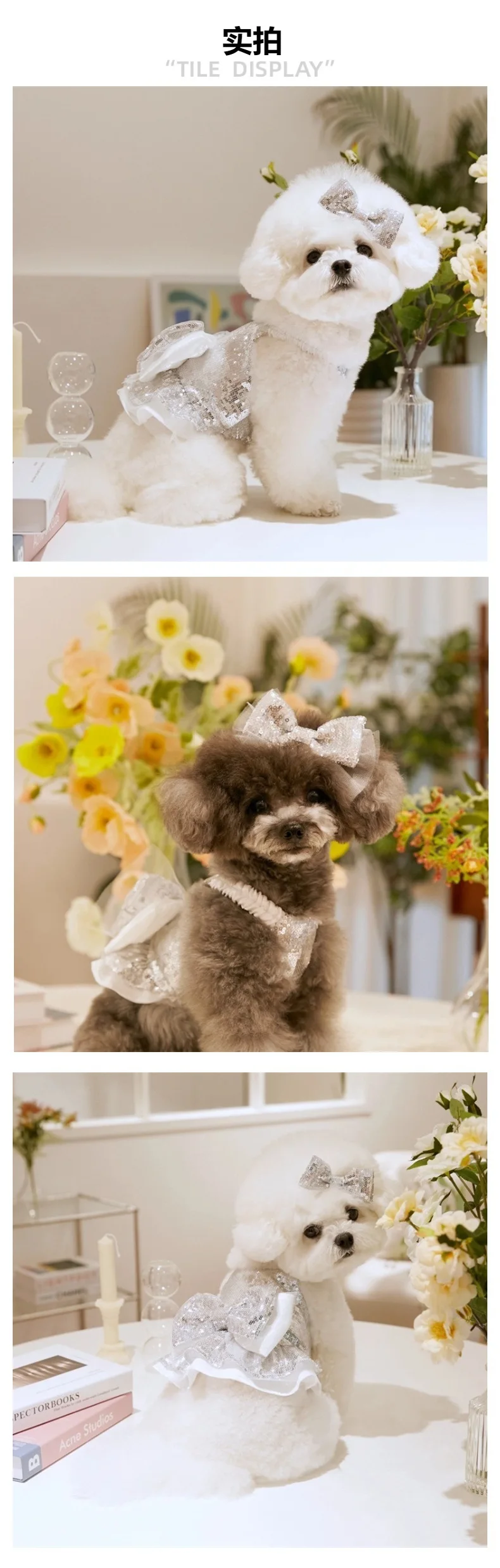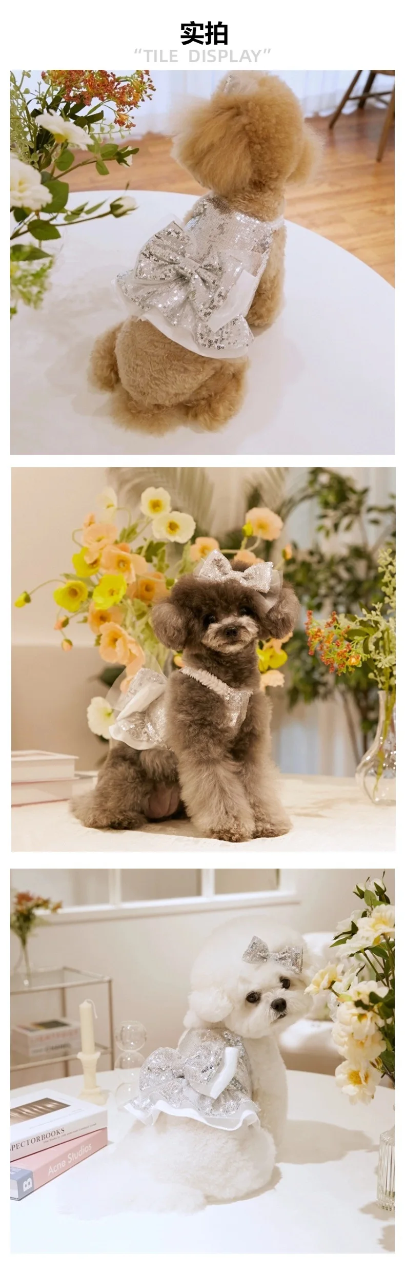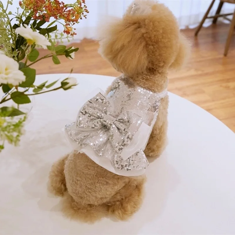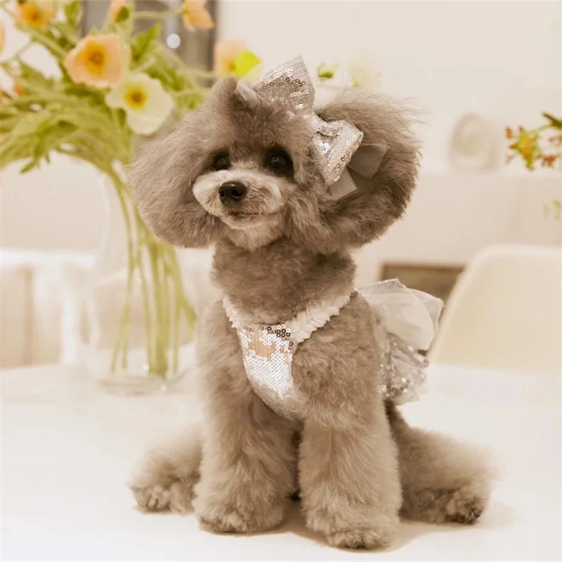 Vestido con lazo brillante para primavera/verano para mascotas, vestido de princesa con tirantes para boda para perros, tocado con lazo para mascotas, ropa para perros pequeños