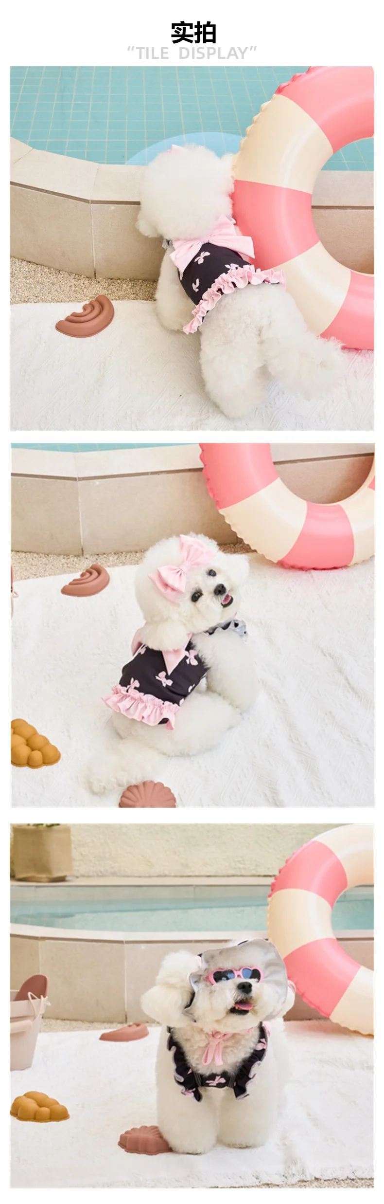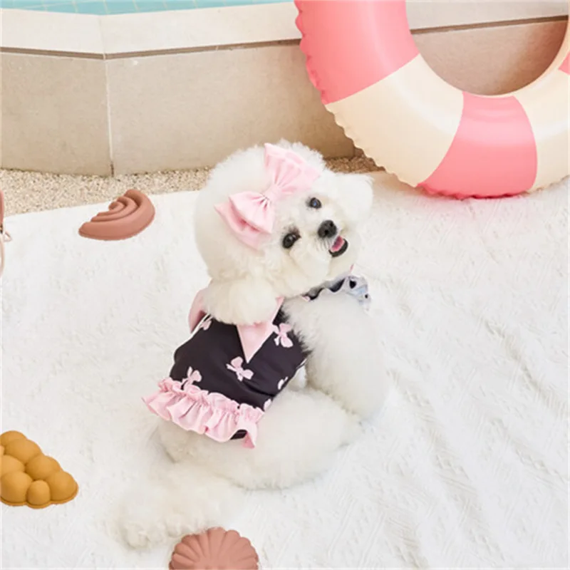 Vestido con lazo estampado de primavera para mascotas, traje de baño de talla pequeña y mediana, camiseta sin mangas para perros, ropa con lazo, ropa para cachorros