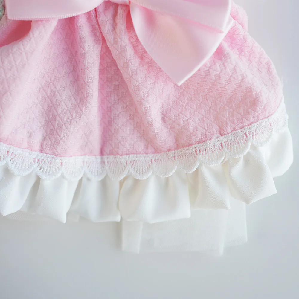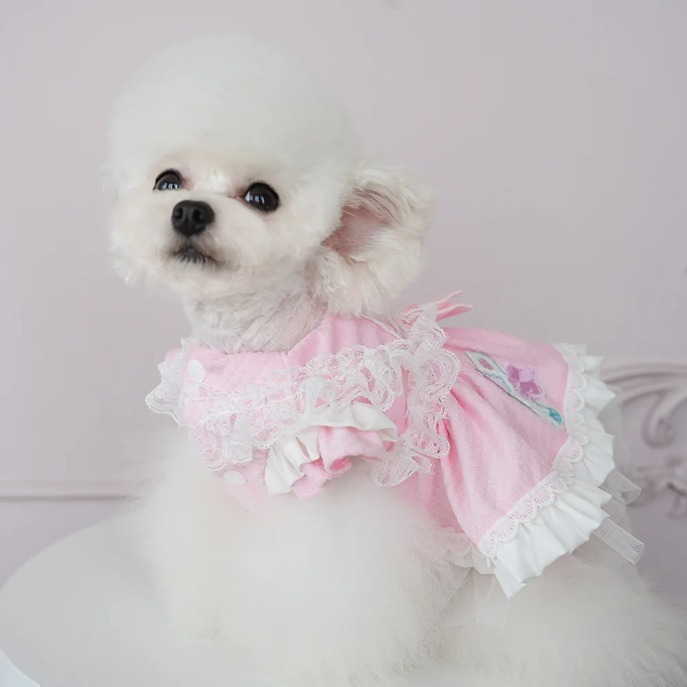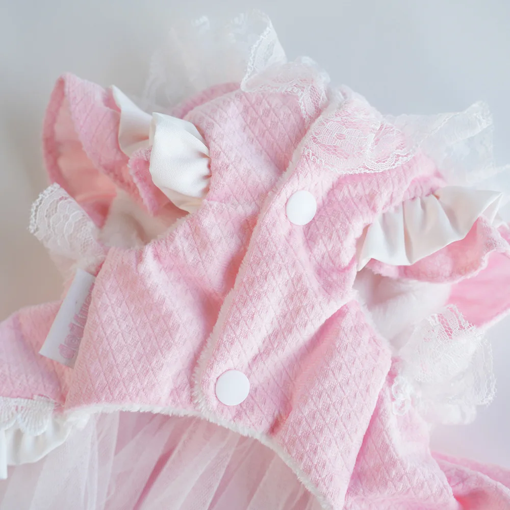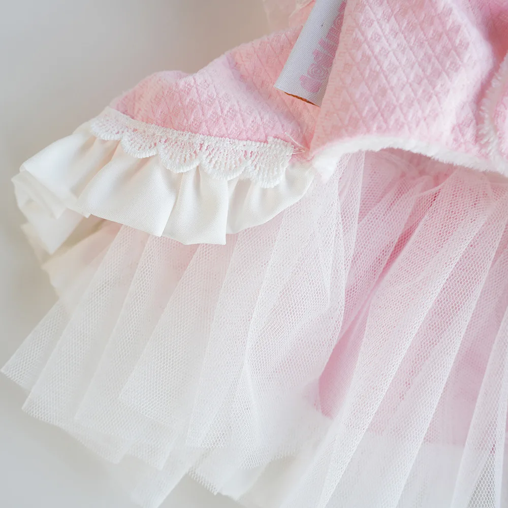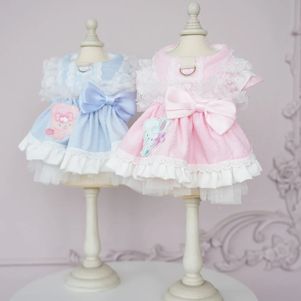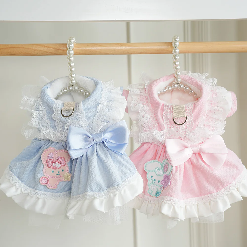 Vestido con lazo para otoño/invierno para mascotas, abrigo grueso, falda de malla empalmada, abrigo de peluche cálido, ropa para cachorros, vestidos para perros pequeños