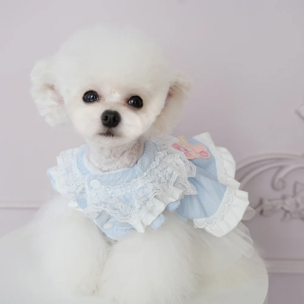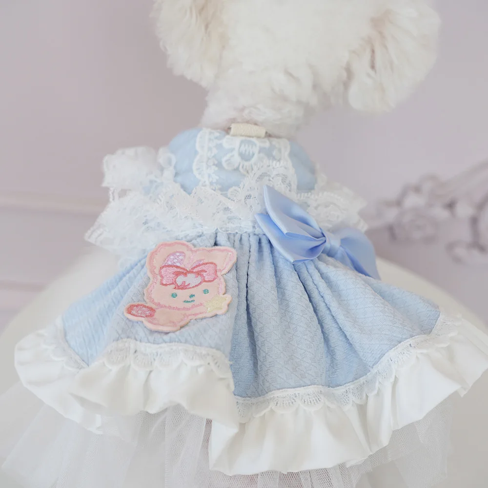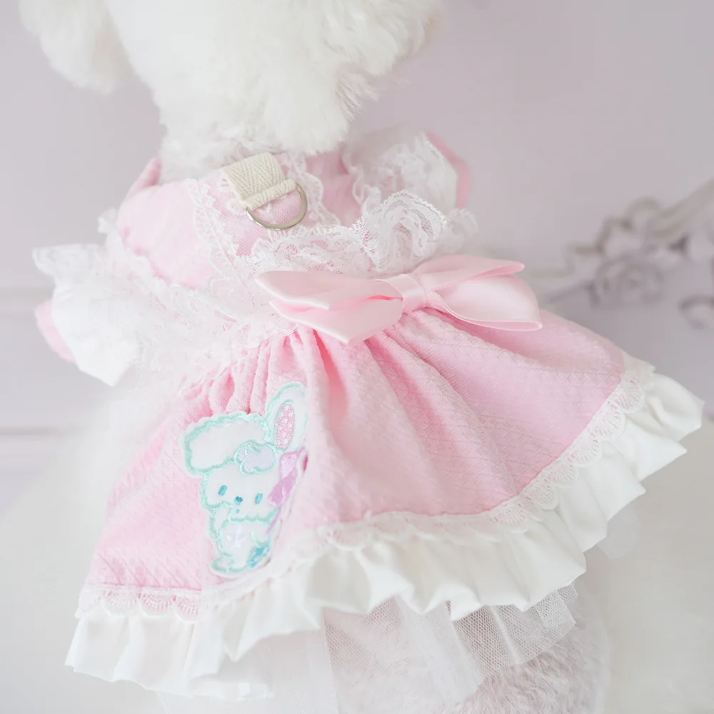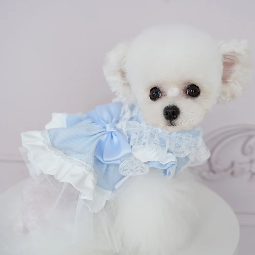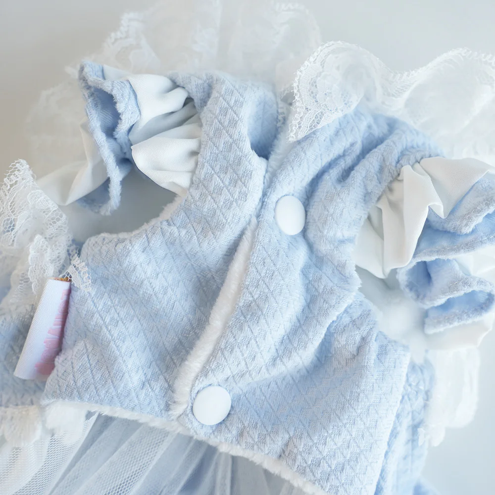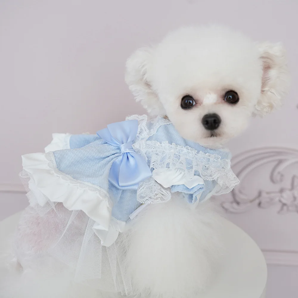 Vestido con lazo para otoño/invierno para mascotas, abrigo grueso, falda de malla empalmada, abrigo de peluche cálido, ropa para cachorros, vestidos para perros pequeños