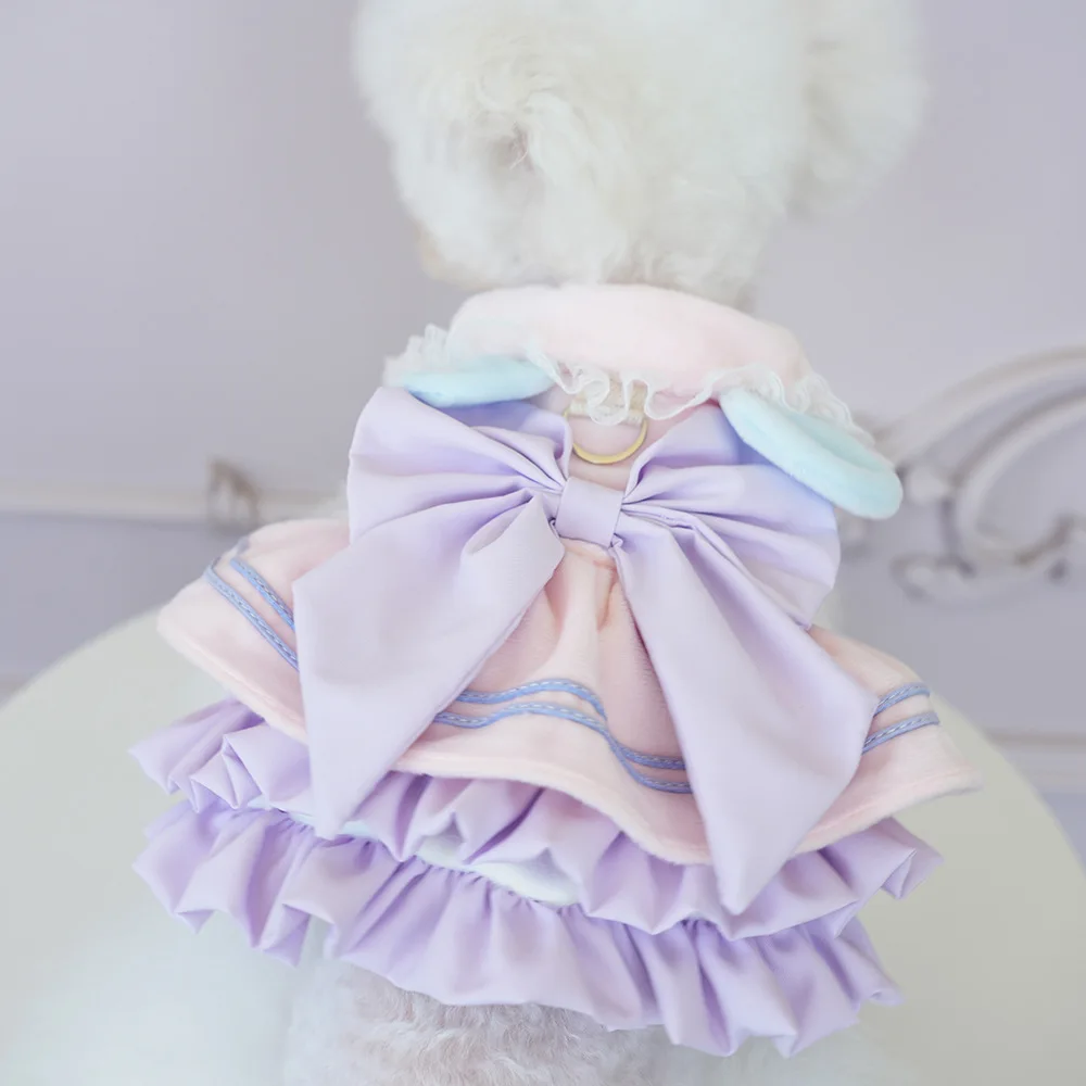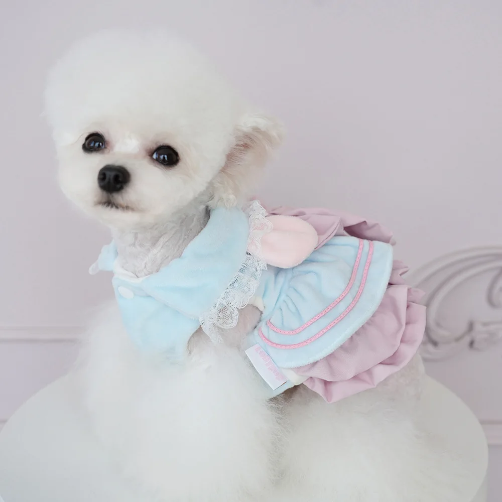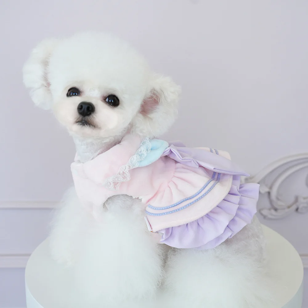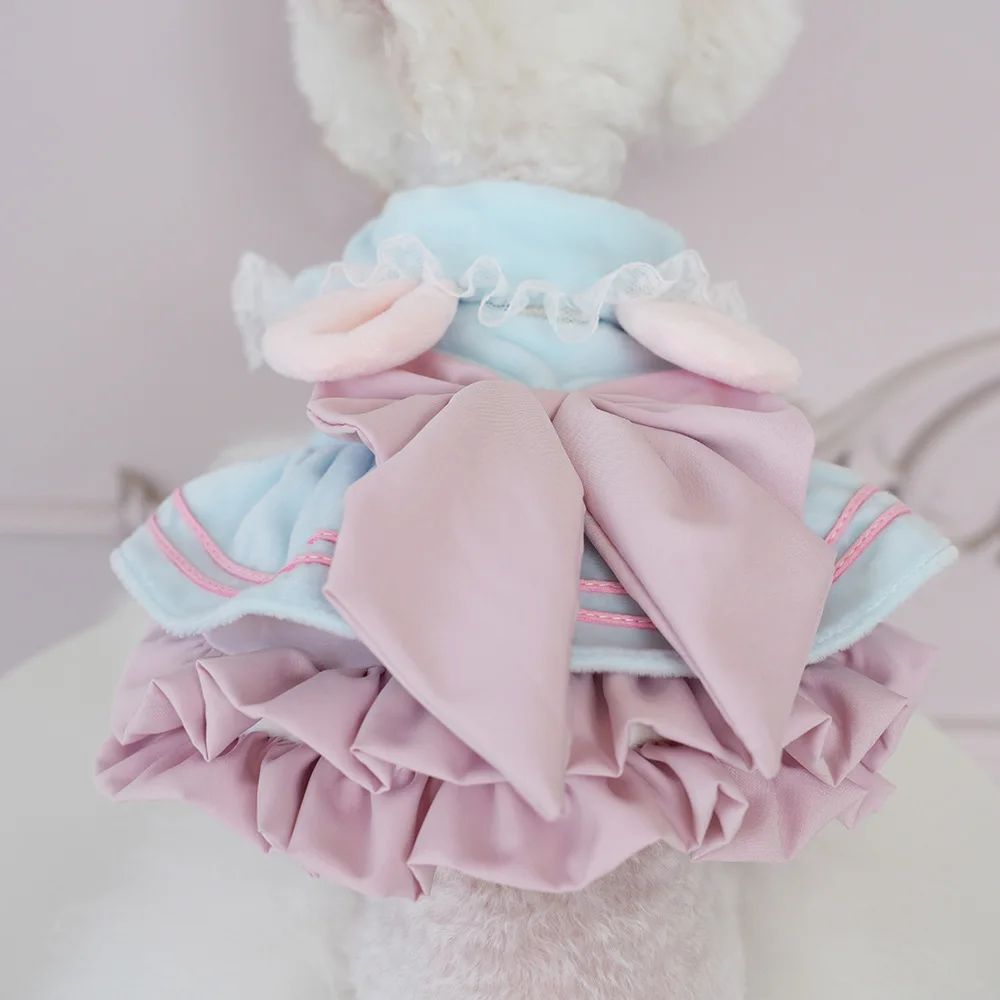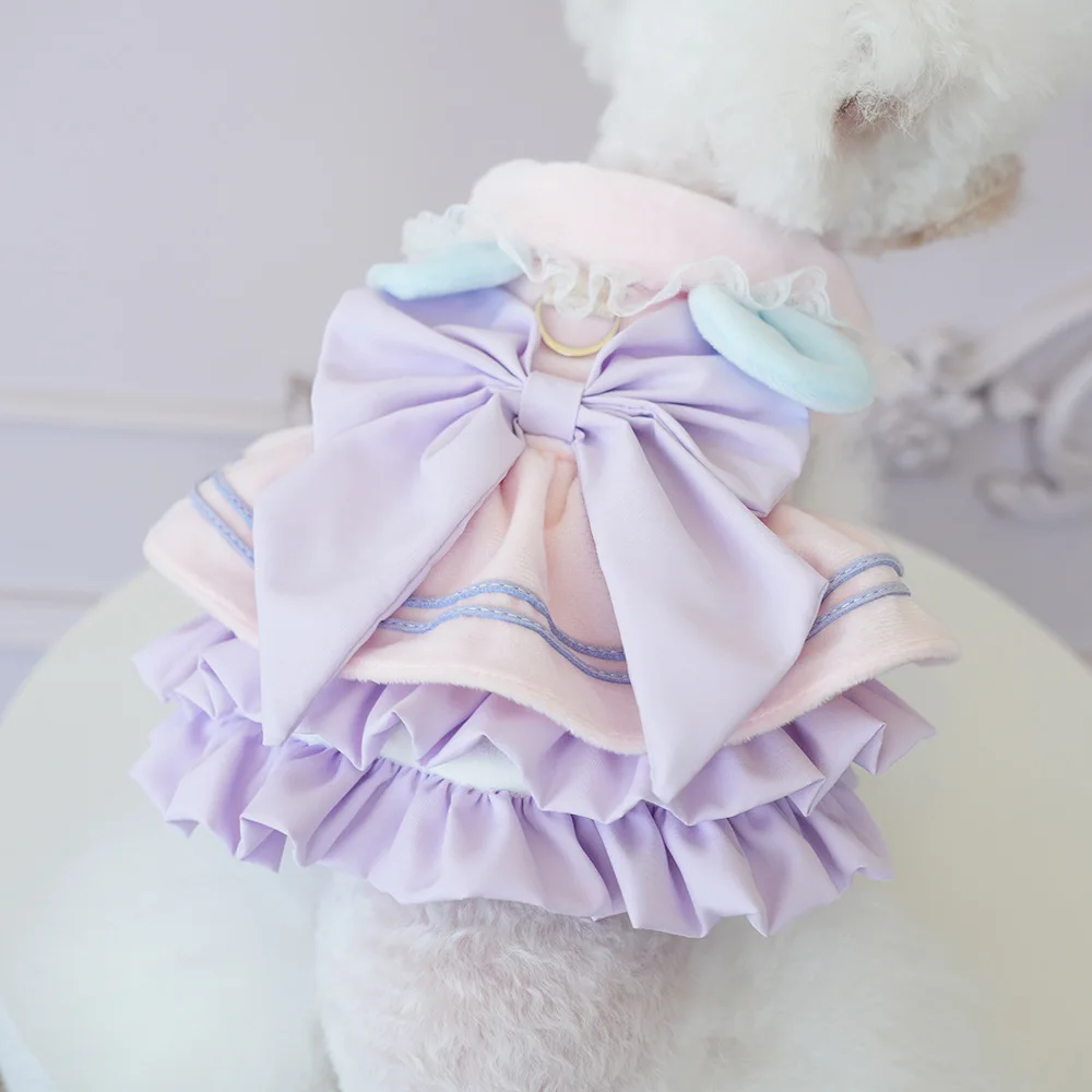 Vestido con lazo para otoño/invierno para mascotas, ropa para perros pequeños, abrigo bonito de felpa para gatos, vestidos para perros pequeños, ropa para cachorros