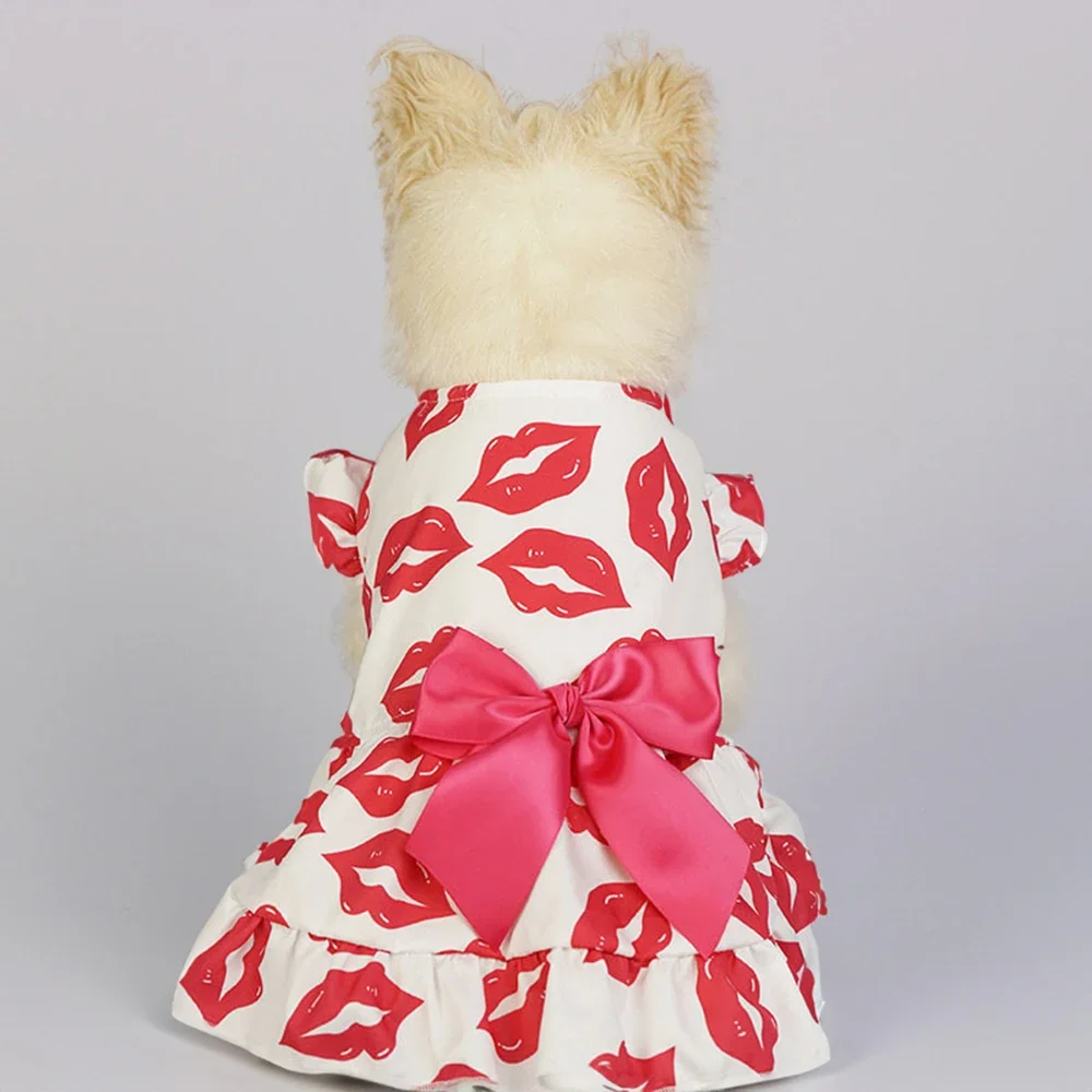 Con un encantador patrón amoroso del Día de San Valentín, este vestido añade un toque de romance al guardarropa de tu mascota.