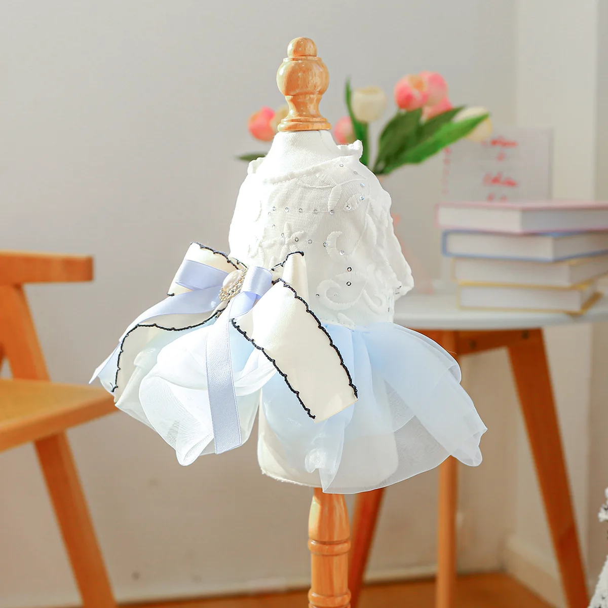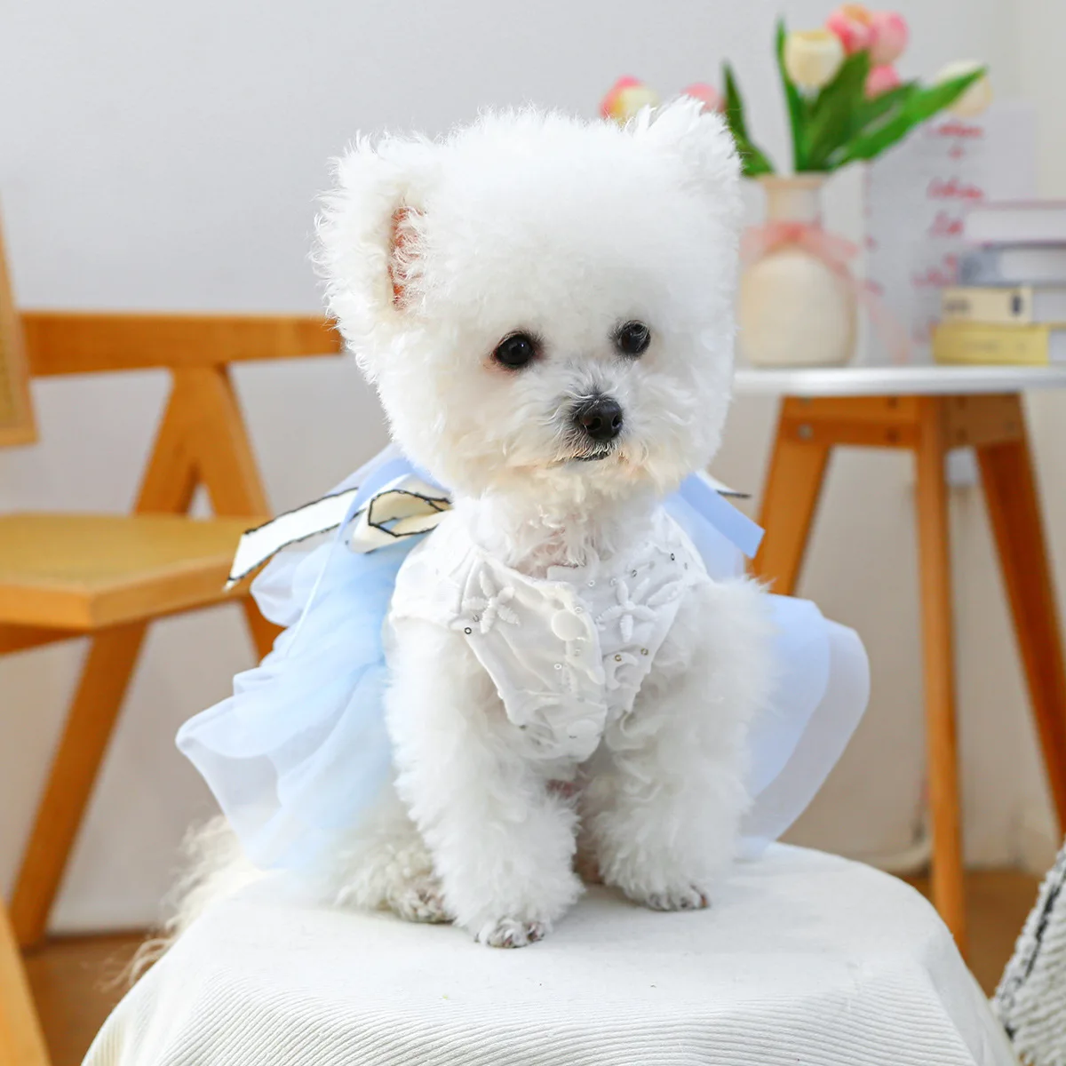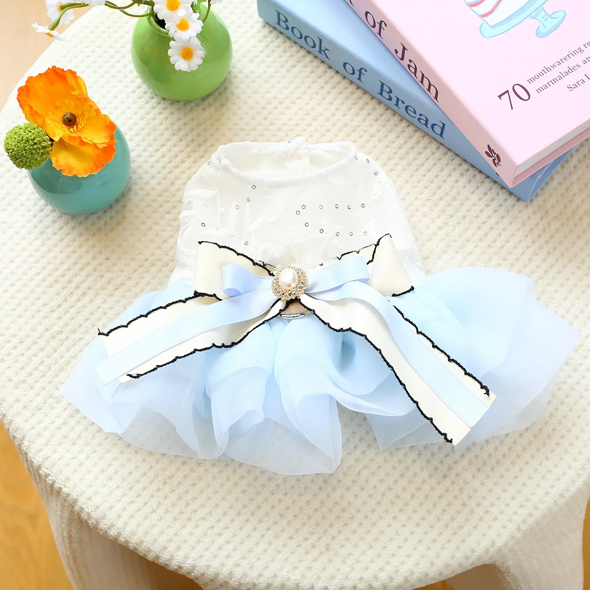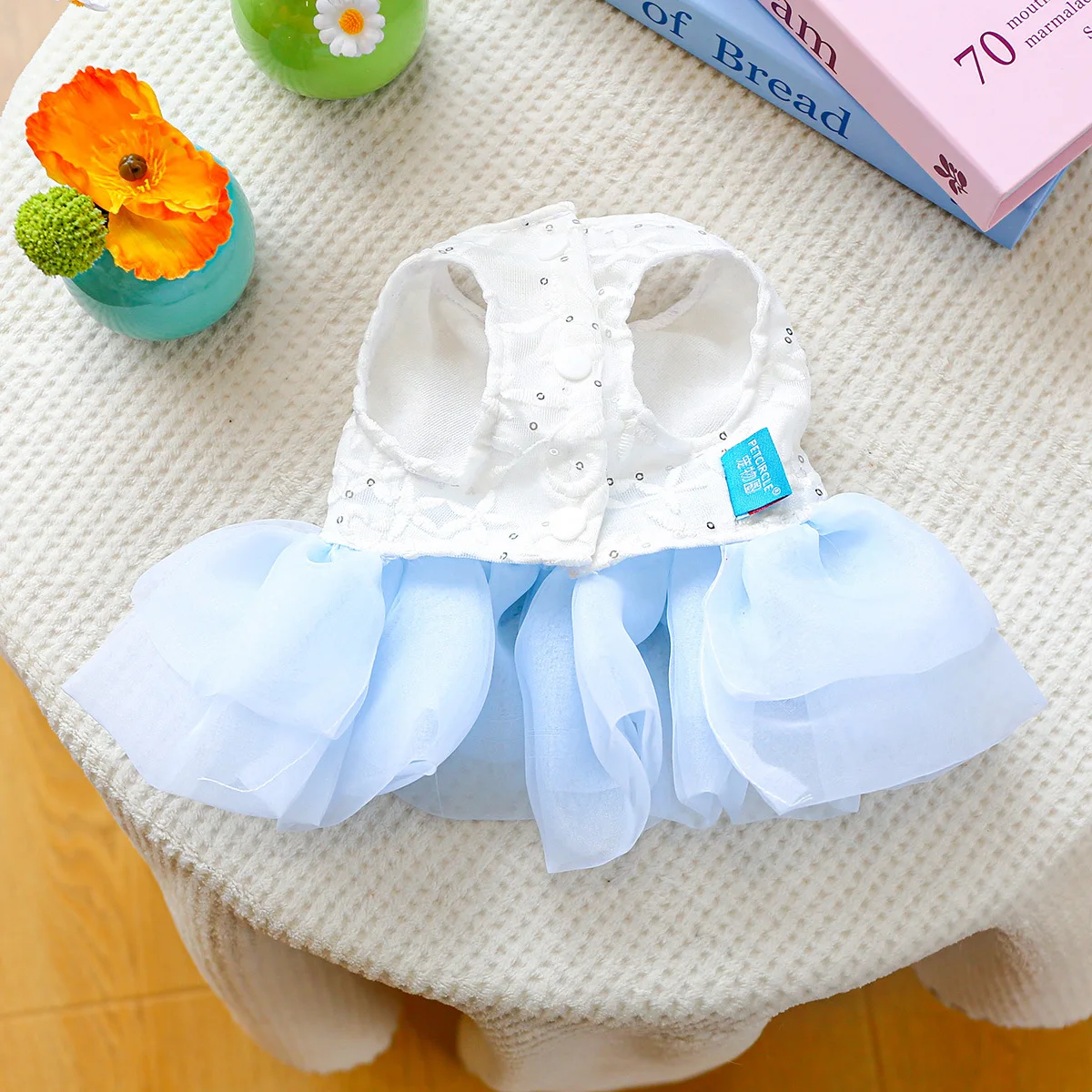 Vestido con lazo de primavera para mascotas, ropa para perros, falda de hilo de Pony azul, vestidos para perros pequeños, ropa para cachorros, vestido pequeño
