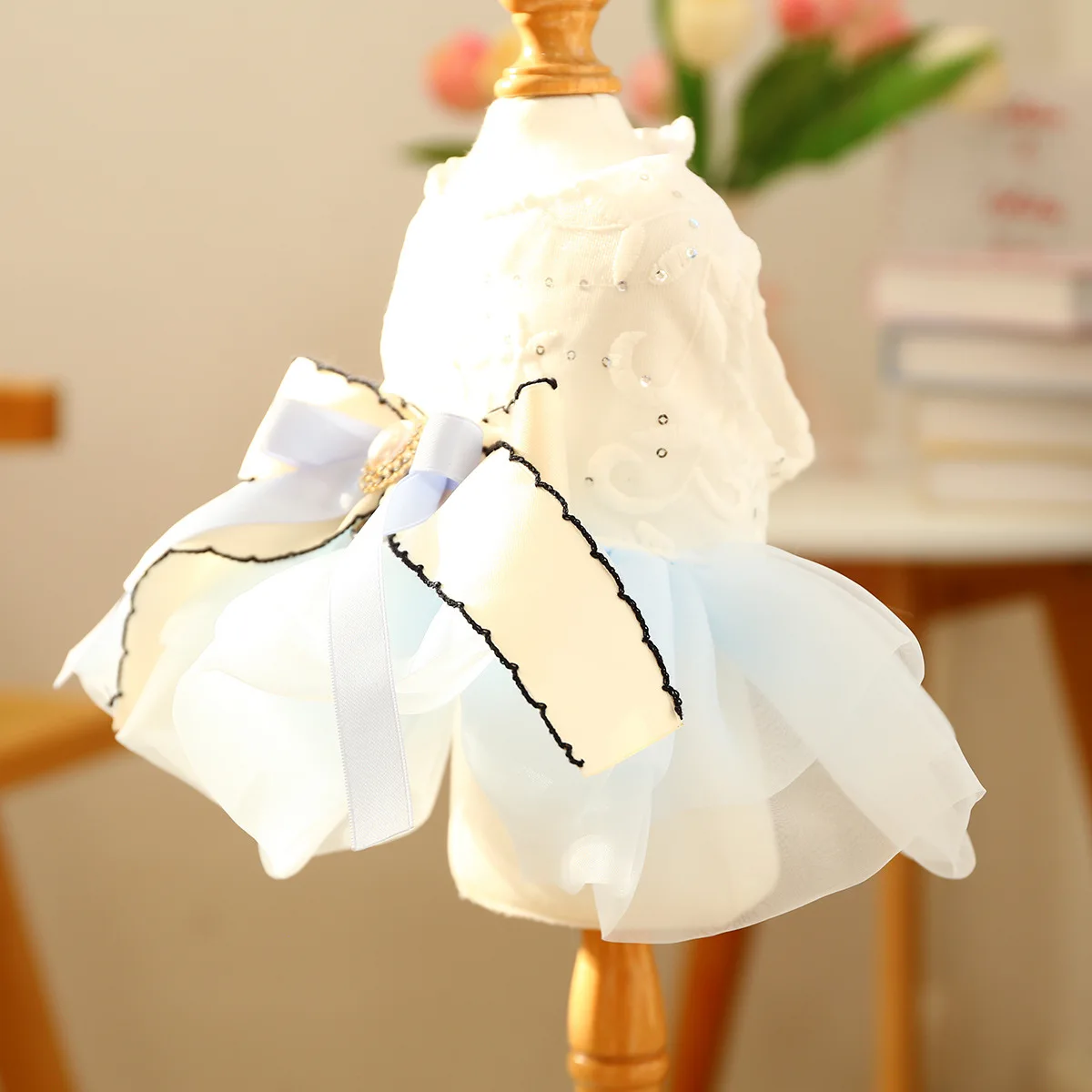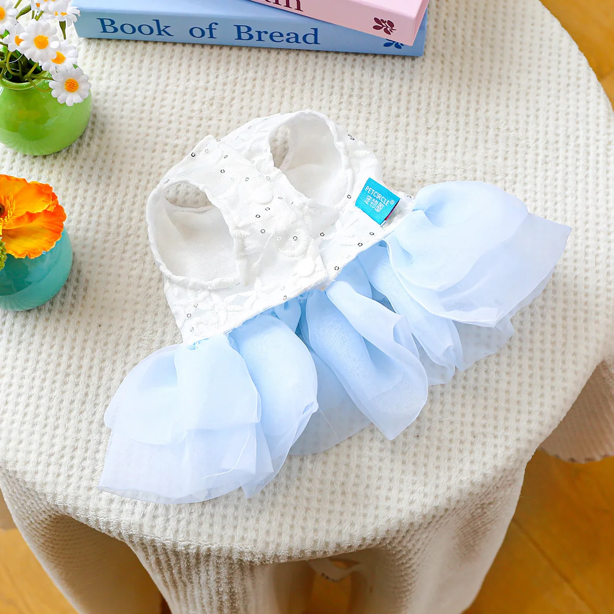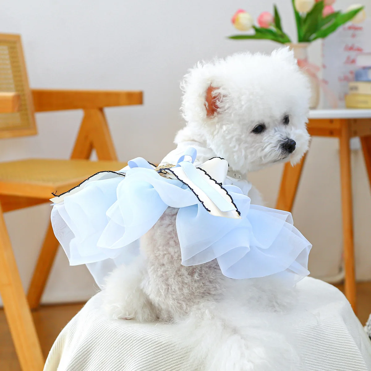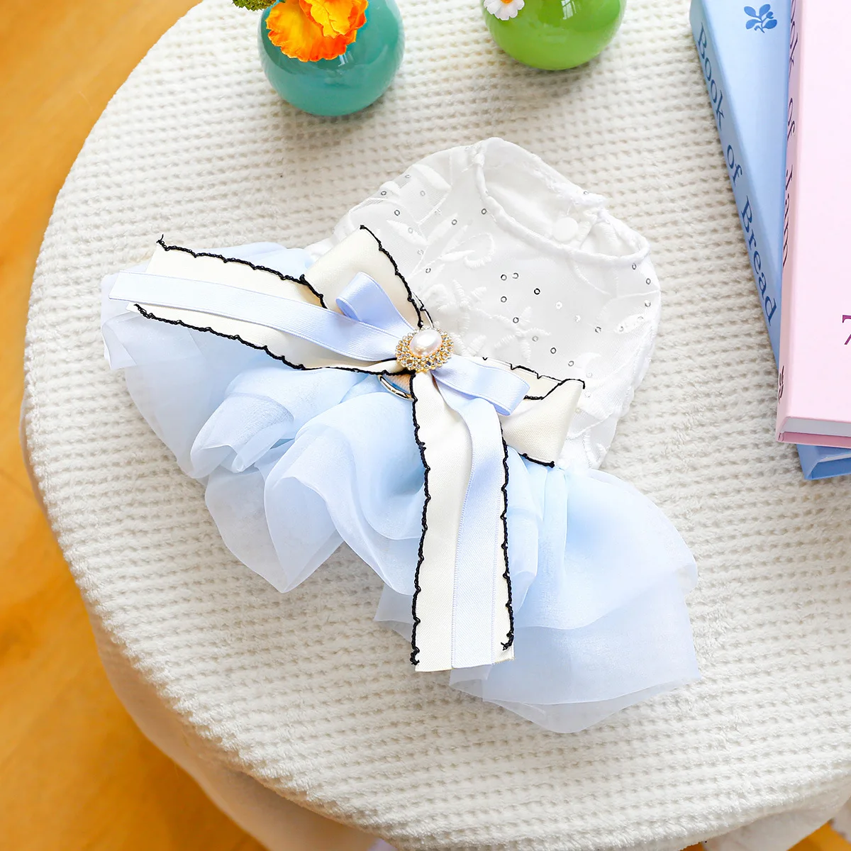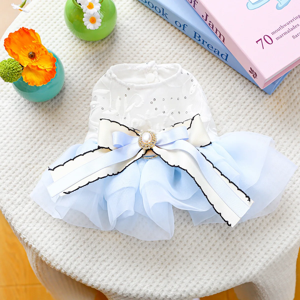 Vestido con lazo de primavera para mascotas, ropa para perros, falda de hilo de Pony azul, vestidos para perros pequeños, ropa para cachorros, vestido pequeño