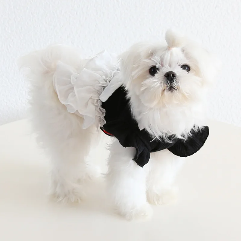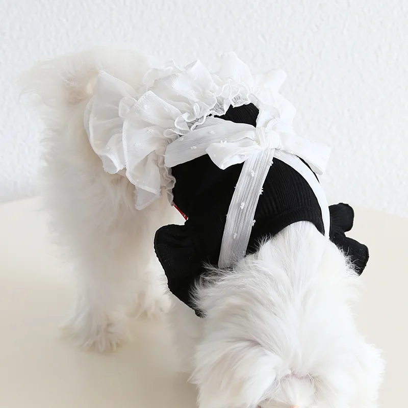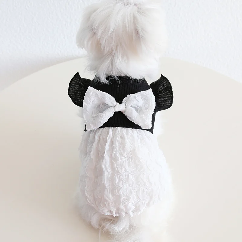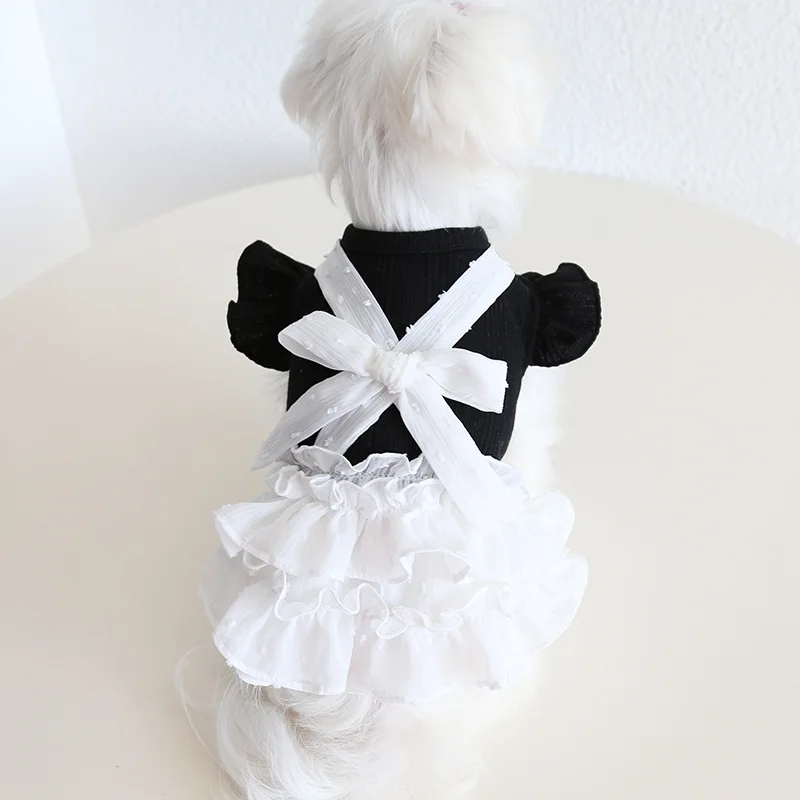 Vestido con lazo para primavera/verano para mascotas, ropa para perros y gatos, falda de calabaza con burbujas para mascotas, ropa para perros, vestidos para perros pequeños