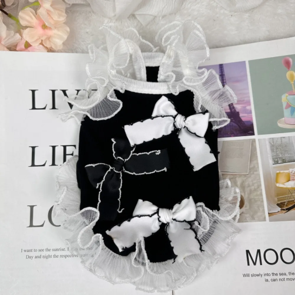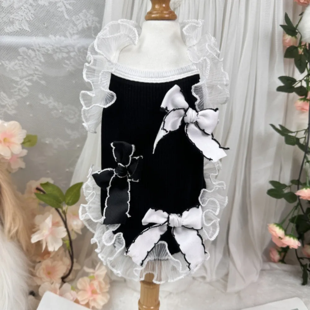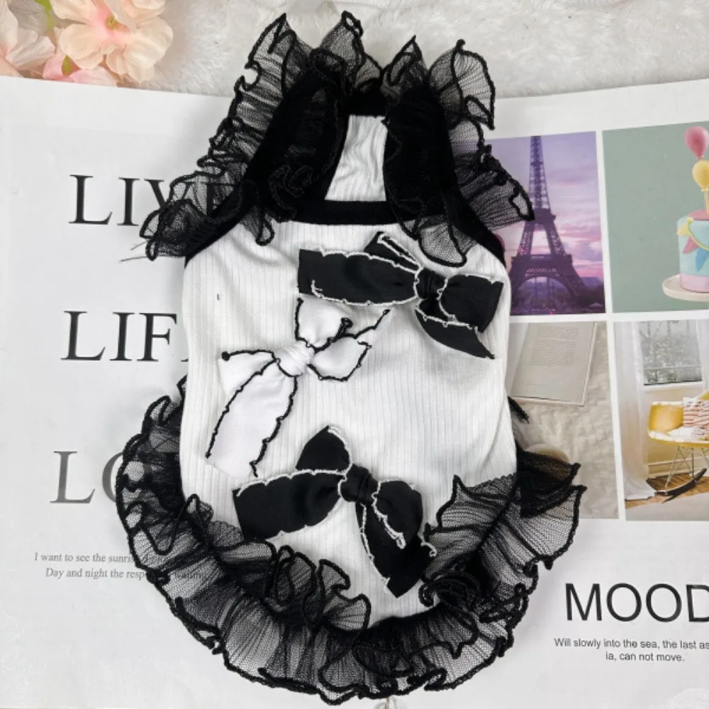 Vestido con lazo para primavera/verano para mascotas, ropa para perros Schnauzer, ropa para gatos de peluche, Top con tirantes, ropa para cachorros, ropa para perros pequeños