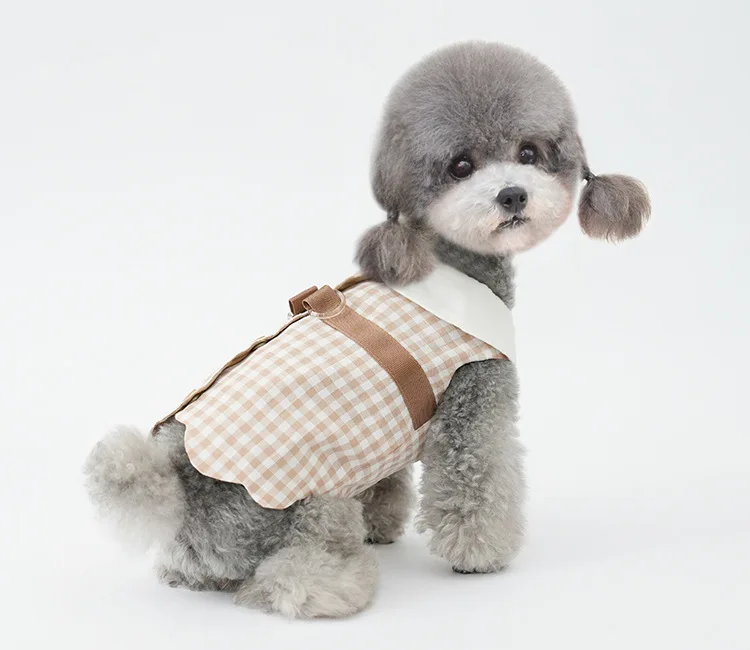 Vestido de lujo para perro, camisa bonita a cuadros, cuello redondo, ropa para perro pequeño, fiesta, boda, falda para cachorros, ropa Pomerania Teddy Yorkshire
