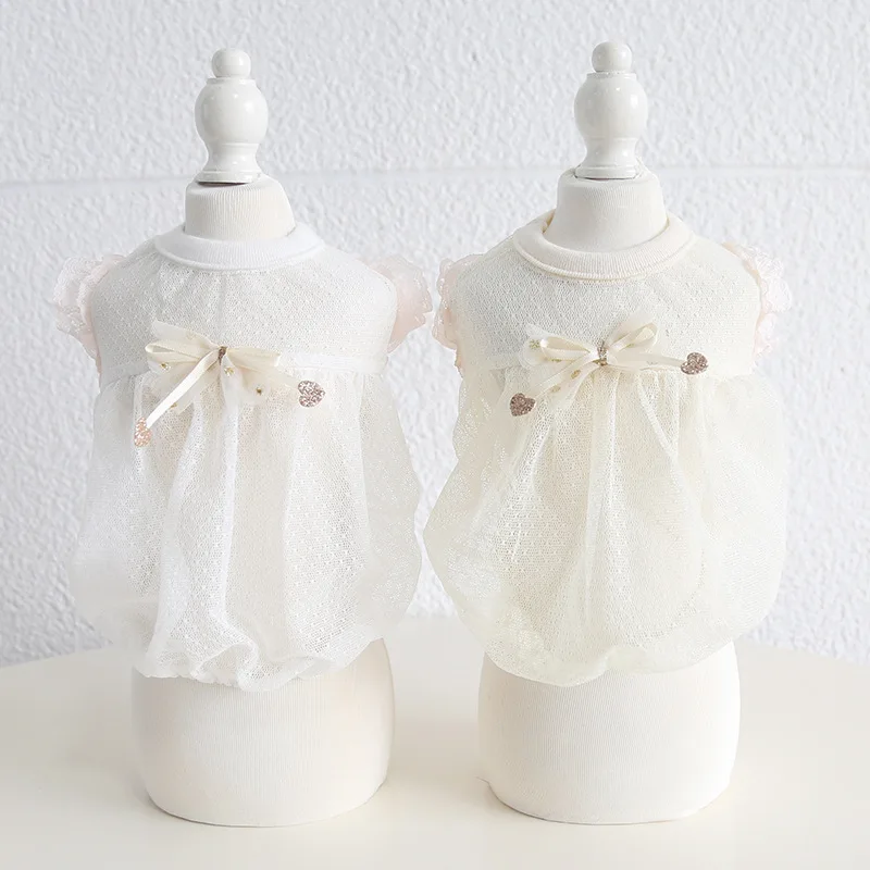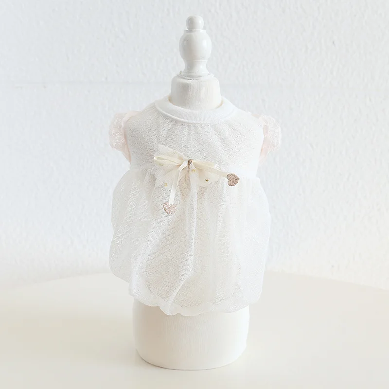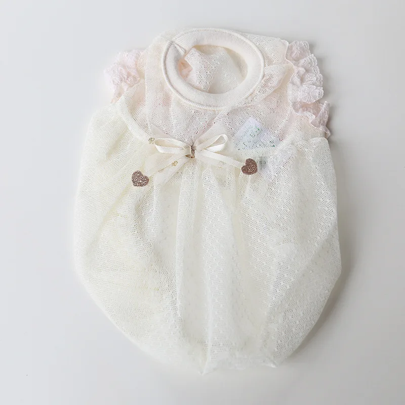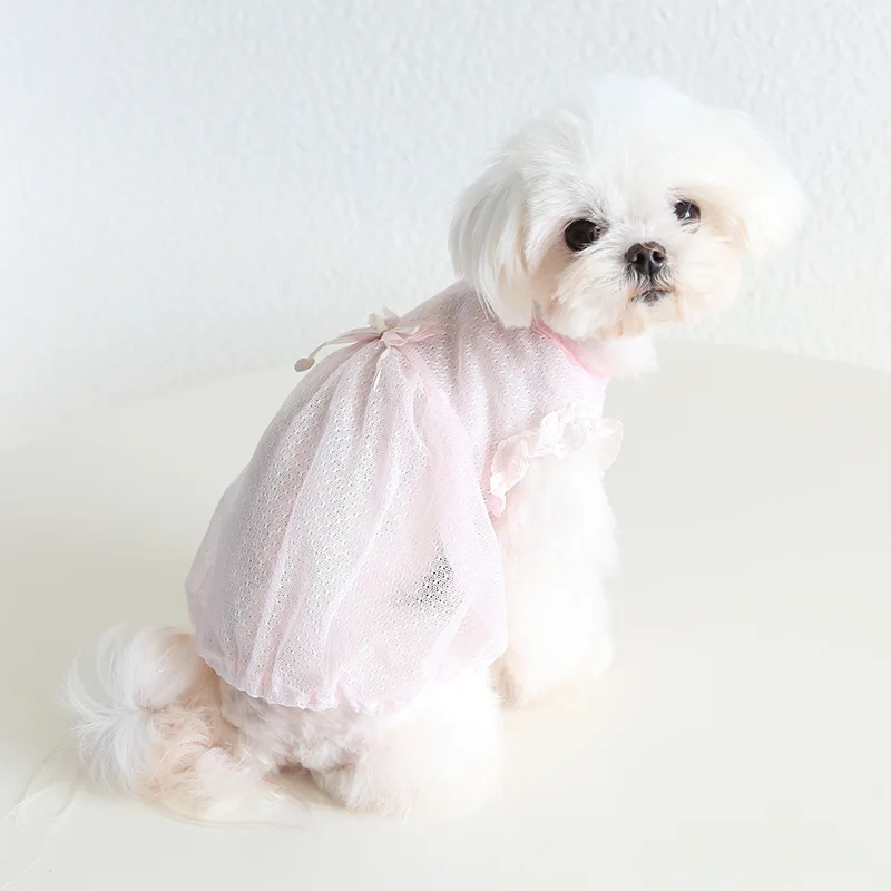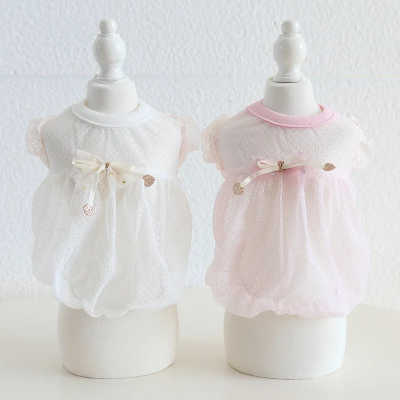 Vestido de malla de amor para mascotas, protector solar para gatos, camiseta sin mangas fresca y transpirable, camiseta de peluche para mascotas, ropa para perros pequeños Yorkshire