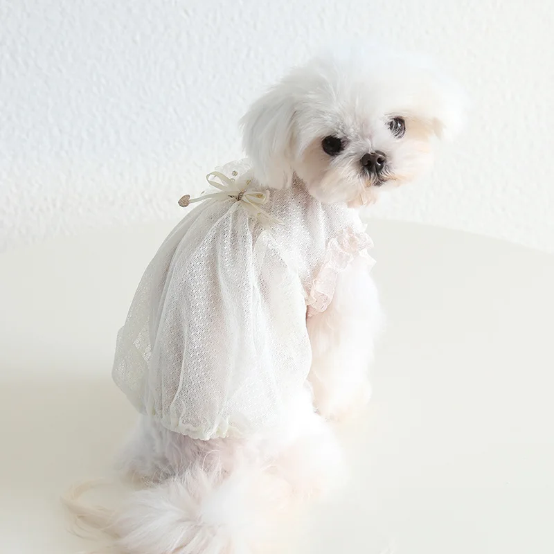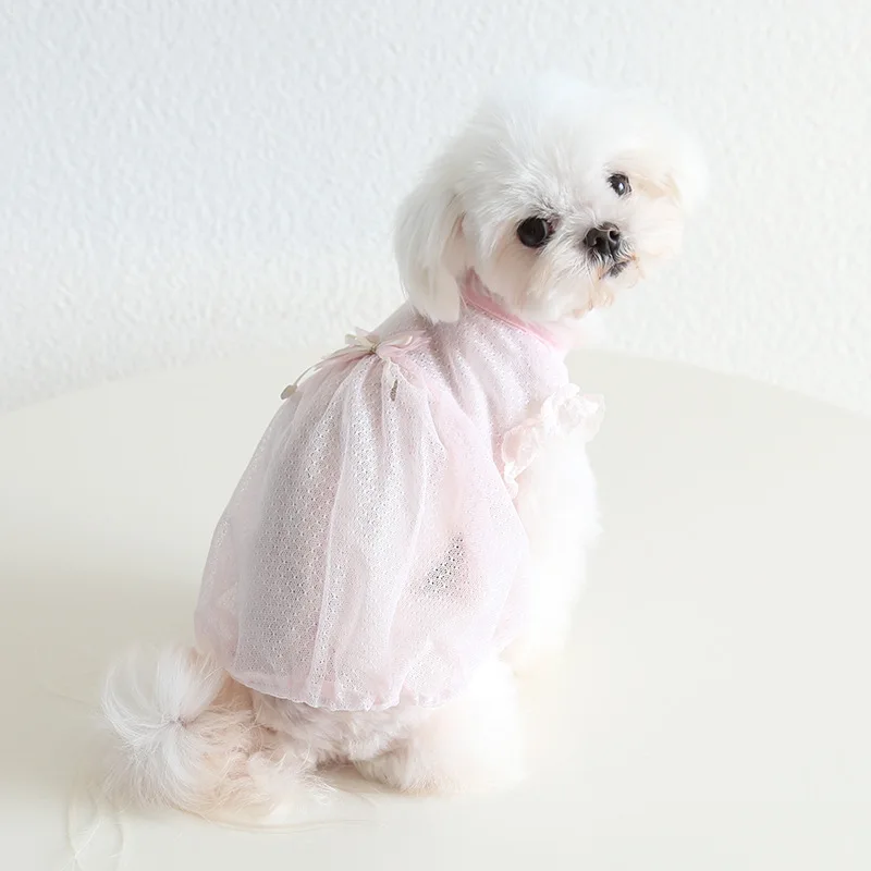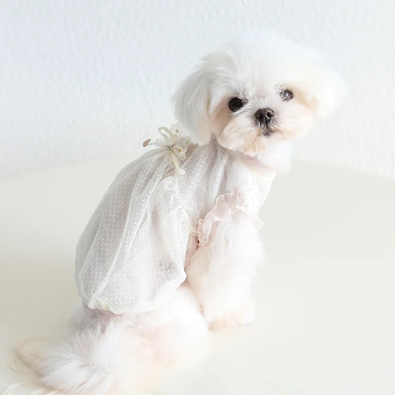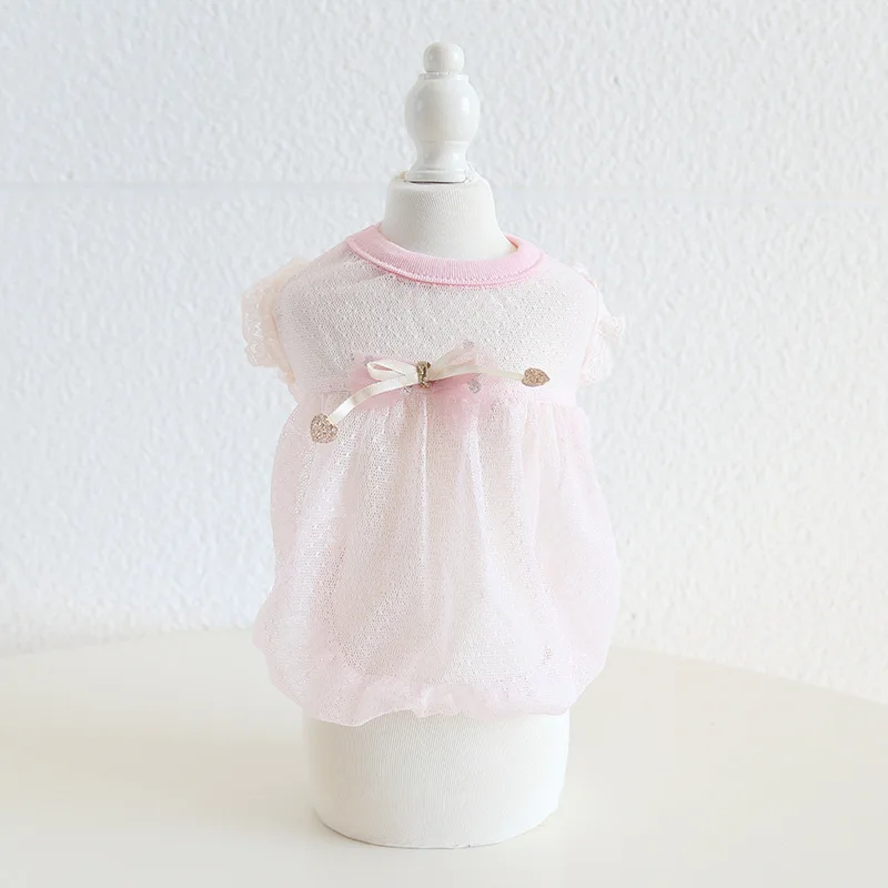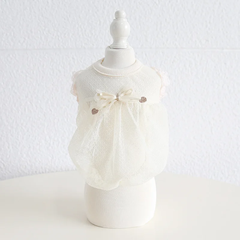 Vestido de malla de amor para mascotas, protector solar para gatos, camiseta sin mangas fresca y transpirable, camiseta de peluche para mascotas, ropa para perros pequeños Yorkshire
