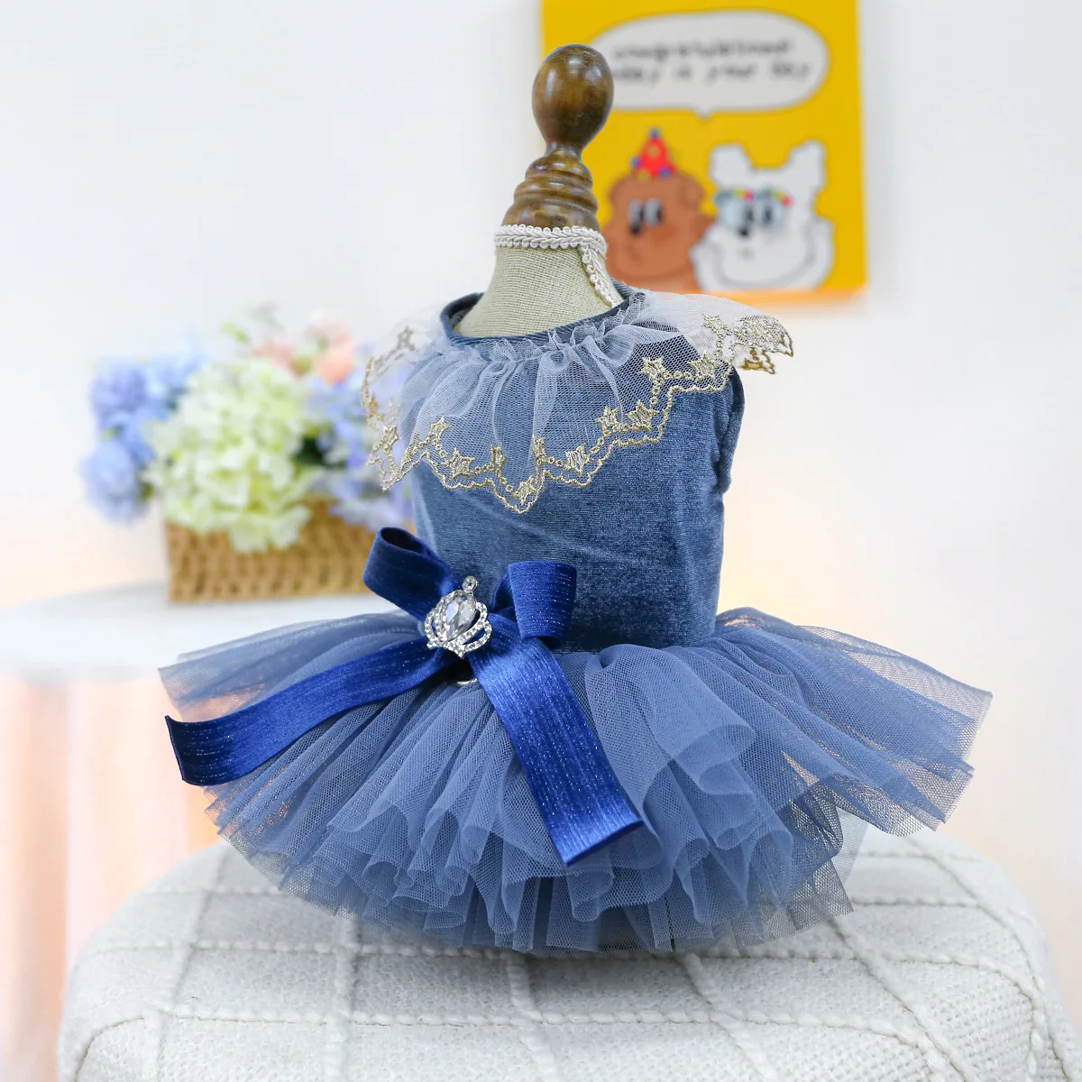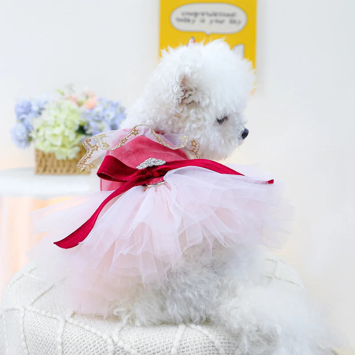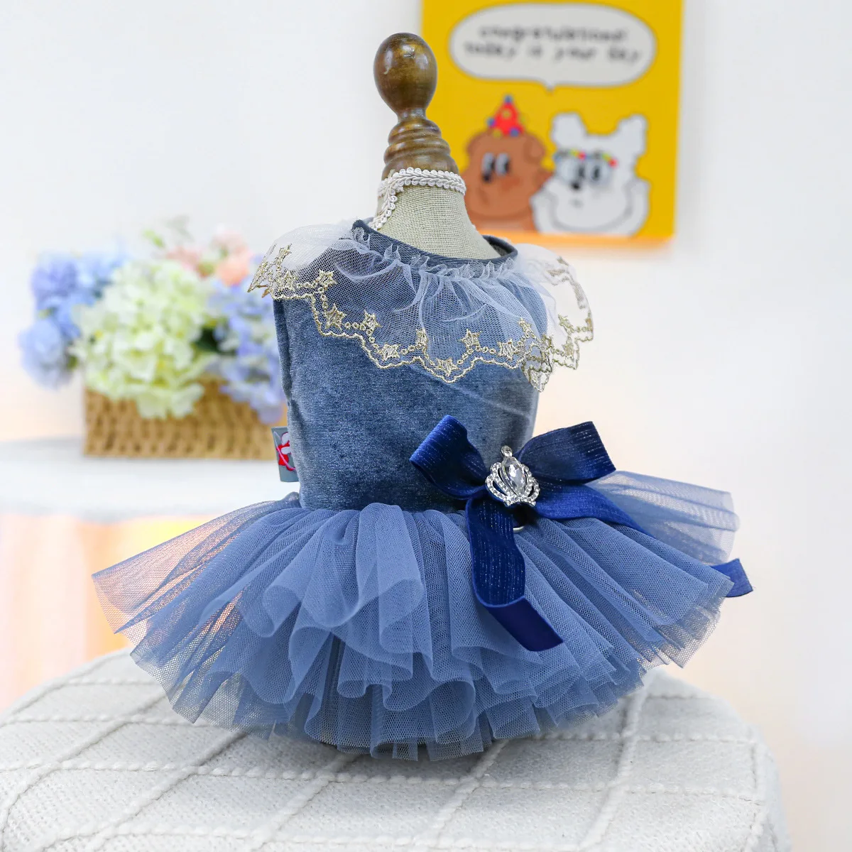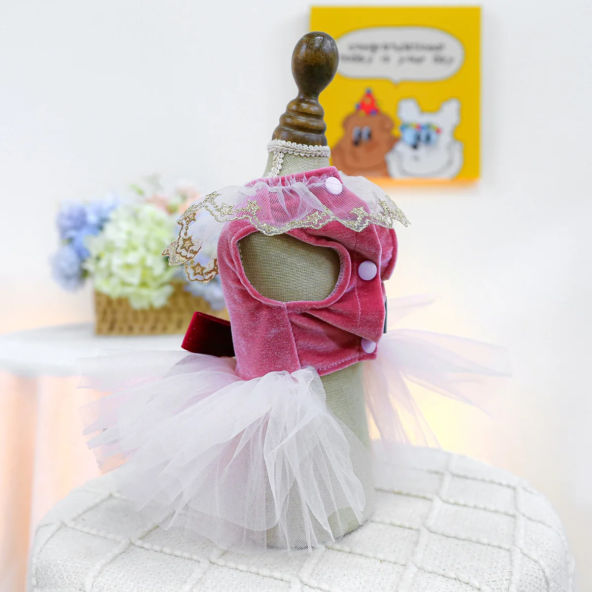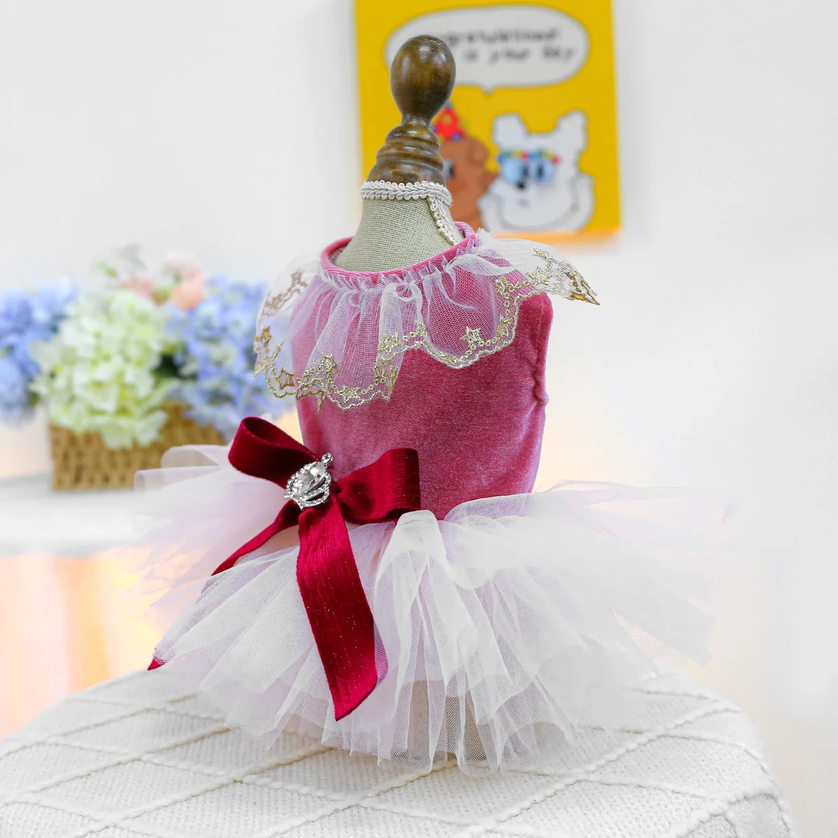 Vestido de malla de empalme de terciopelo para mascotas, abrigo con lazo para perros y gatos, vestido de hilo de princesa, vestidos de otoño/invierno para perros pequeños y cachorros