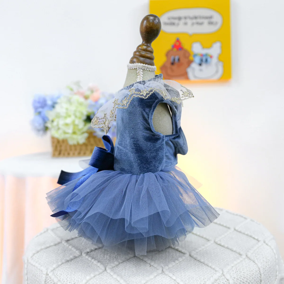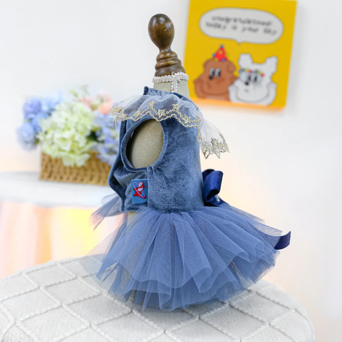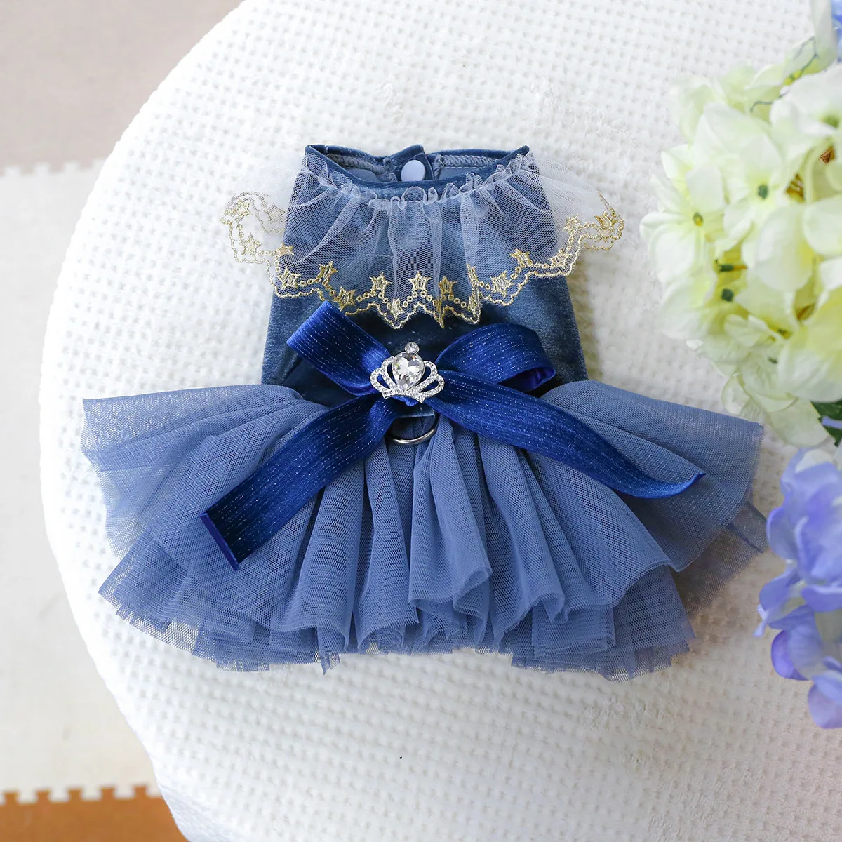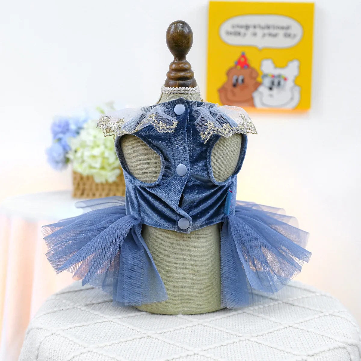 Vestido de malla de empalme de terciopelo para mascotas, abrigo con lazo para perros y gatos, vestido de hilo de princesa, vestidos de otoño/invierno para perros pequeños y cachorros