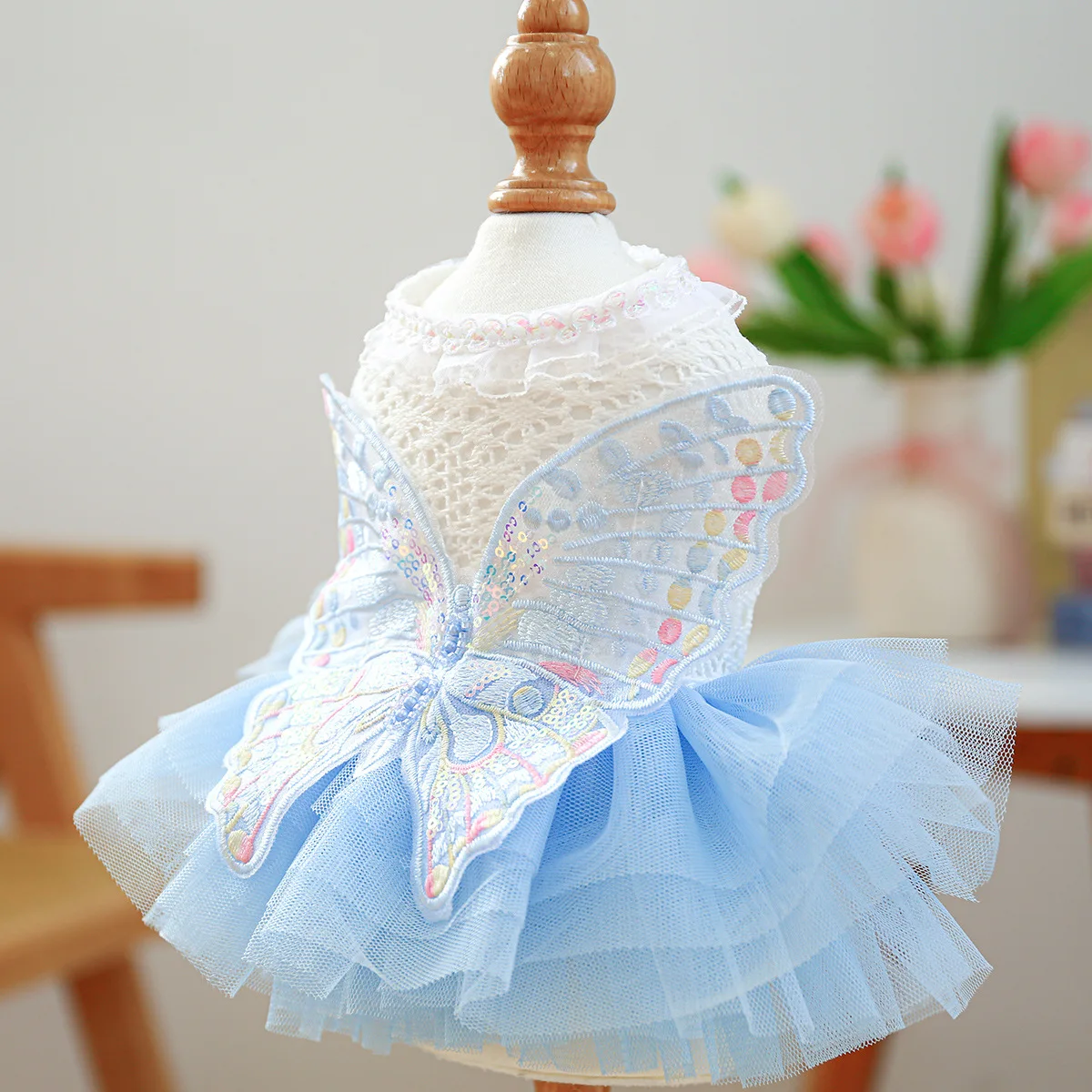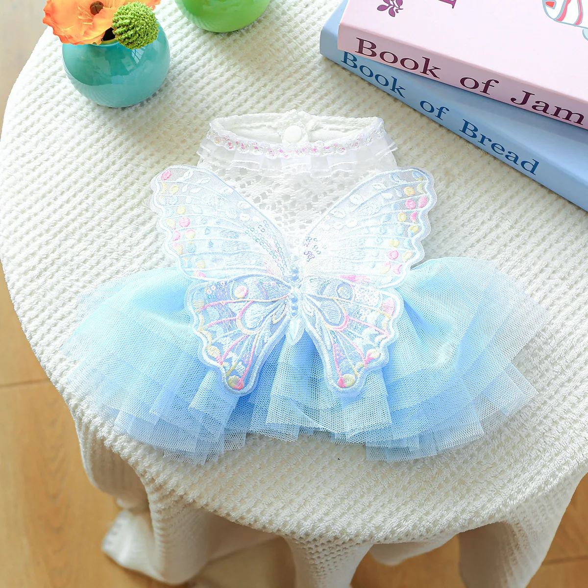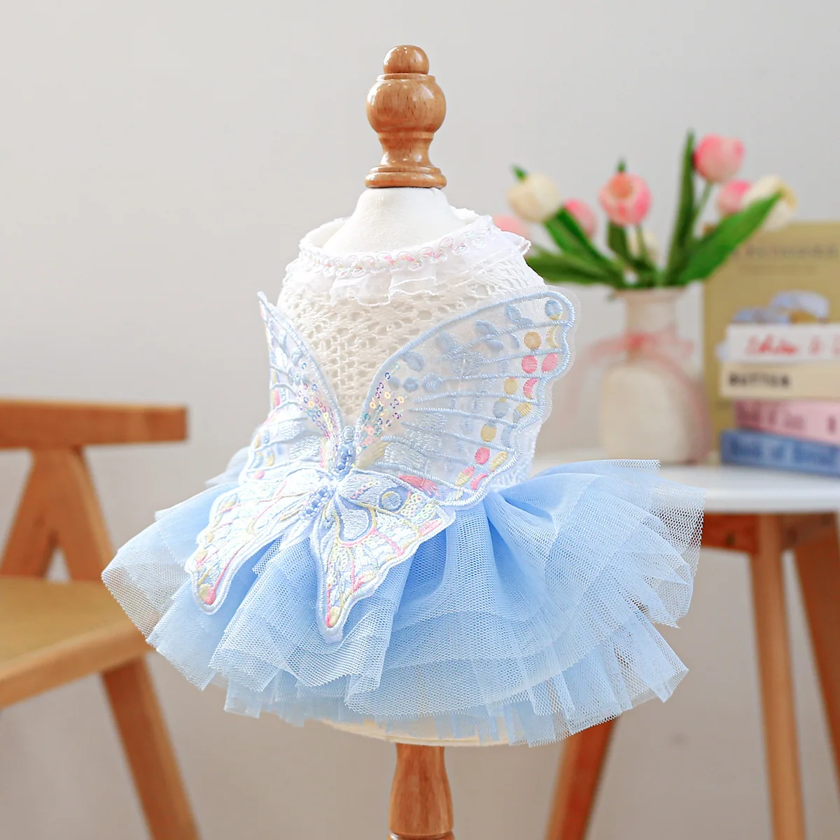 Vestido de malla de mariposa para mascotas, ropa para perros, falda abombada de malla de mariposa, ropa para cachorros, vestidos para perros pequeños