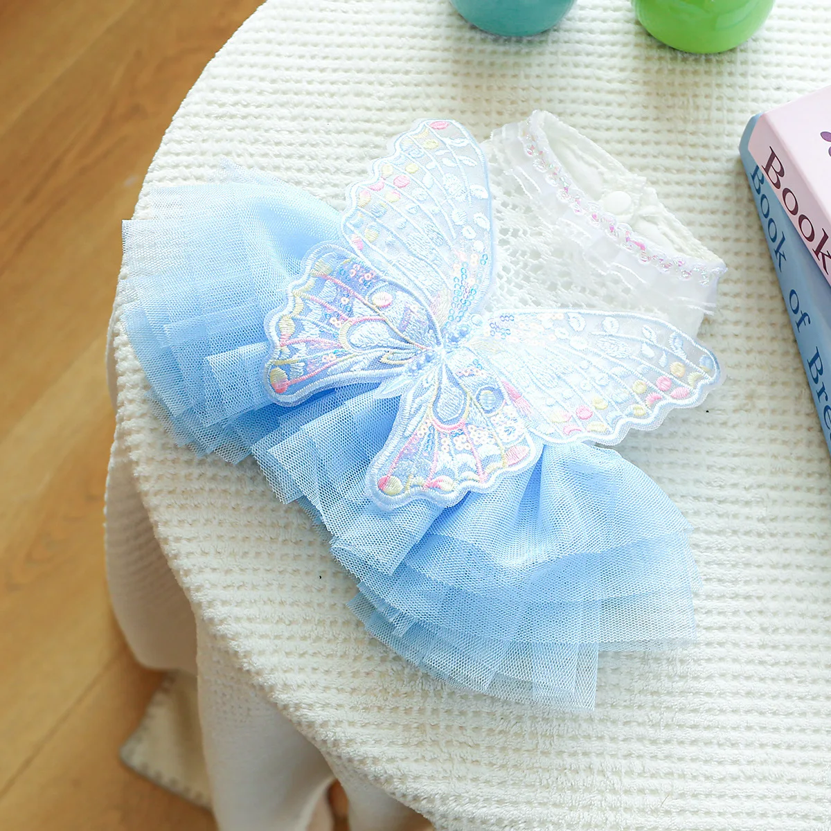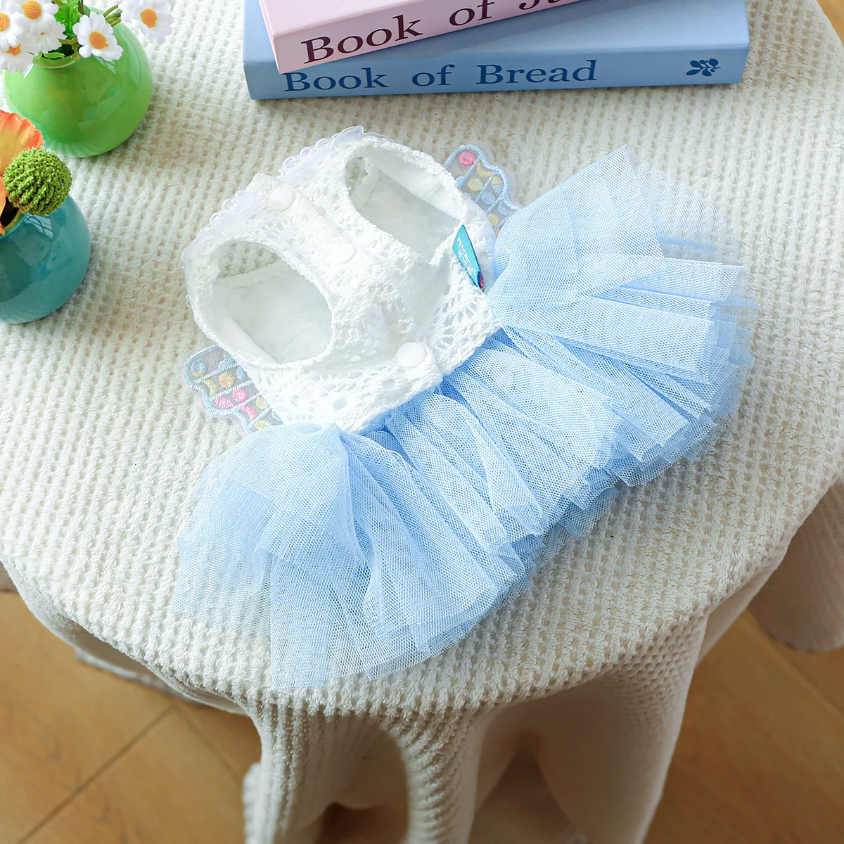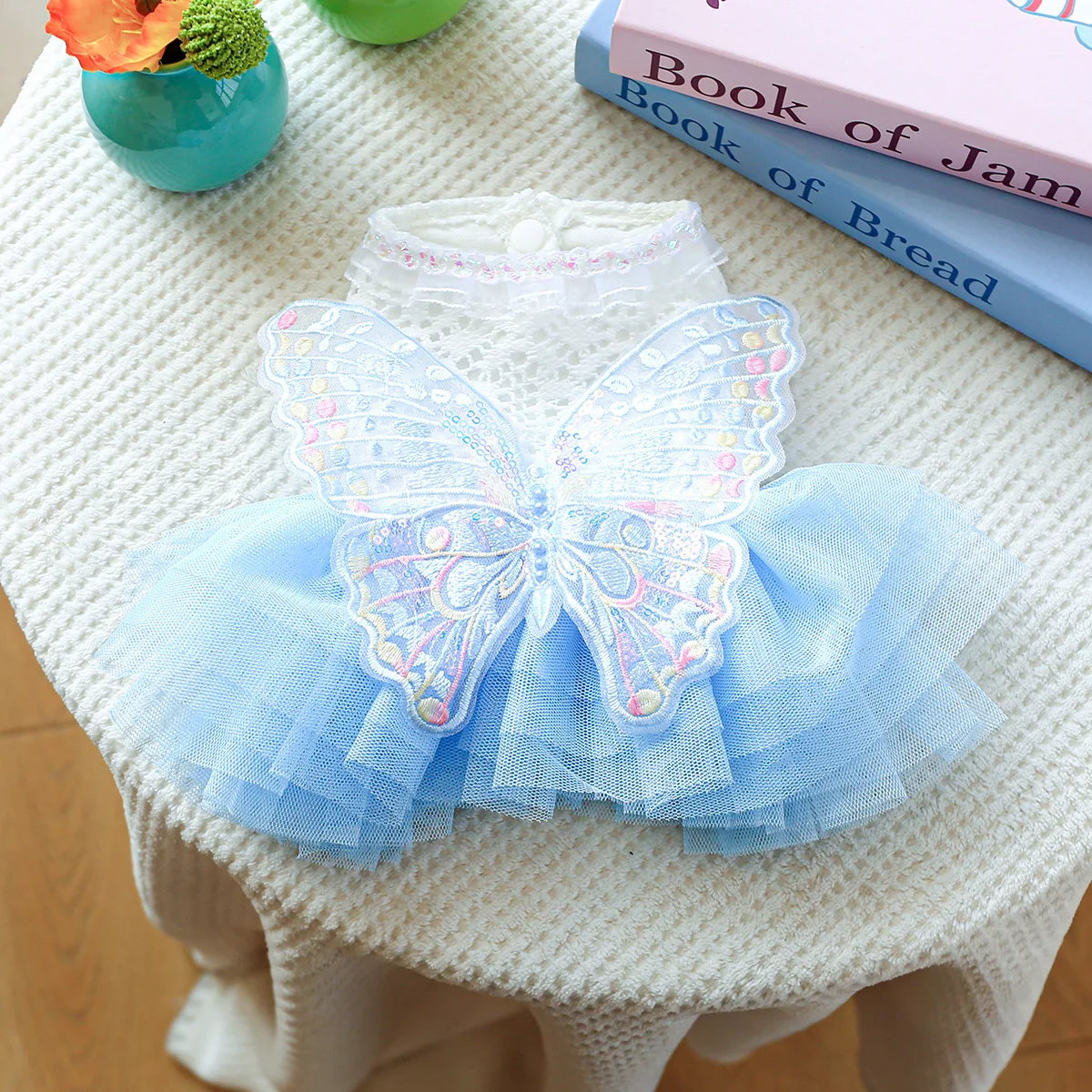 Vestido de malla de mariposa para mascotas, ropa para perros, falda abombada de malla de mariposa, ropa para cachorros, vestidos para perros pequeños