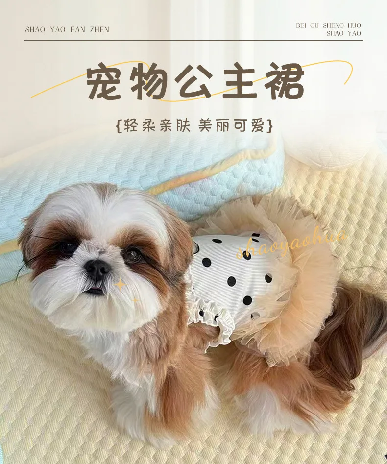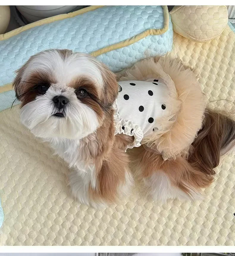 Vestido de malla de primavera para mascotas, vestido de princesa para perros, chaleco elástico de peluche Yorkshire, vestidos para perros pequeños y cachorros