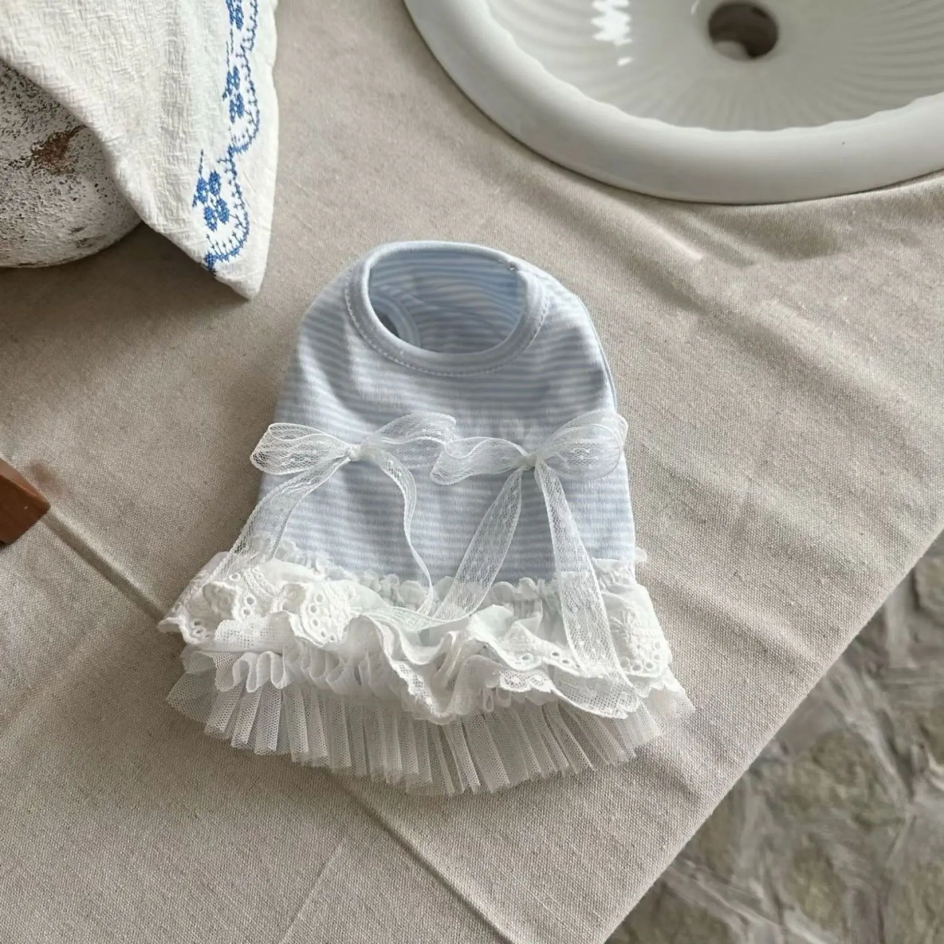 Vestido sin mangas a rayas de primavera para mascotas, princesa para gatos, lazo de encaje, camiseta sin mangas para perros pequeños, vestidos para perros pequeños