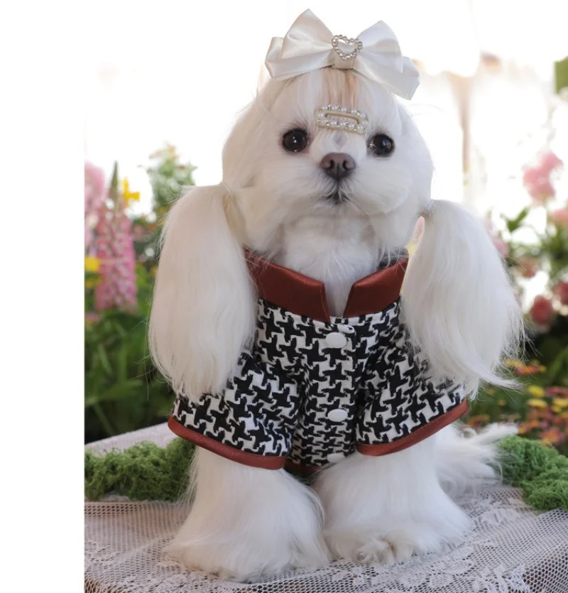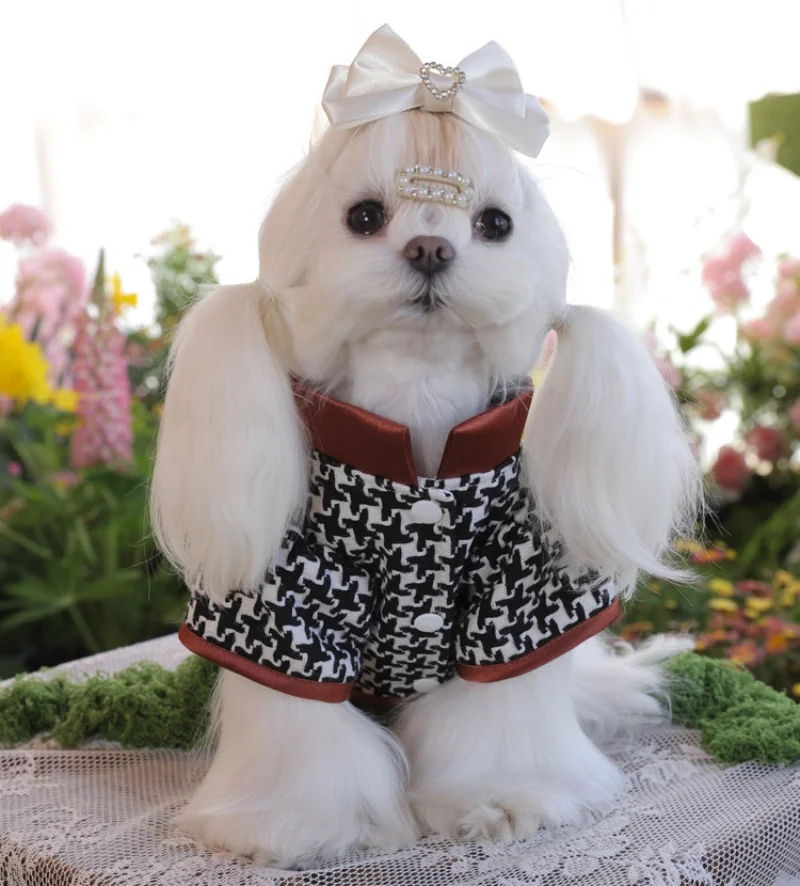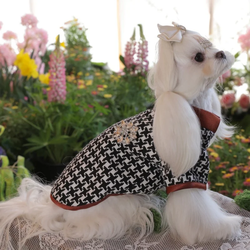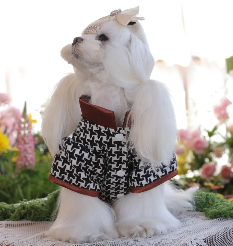 Vestido para mascotas con broche, vestido formal para mascotas con patrón de cuadros, ropa para perros, vestido formal para fiesta de cumpleaños, ropa para perros