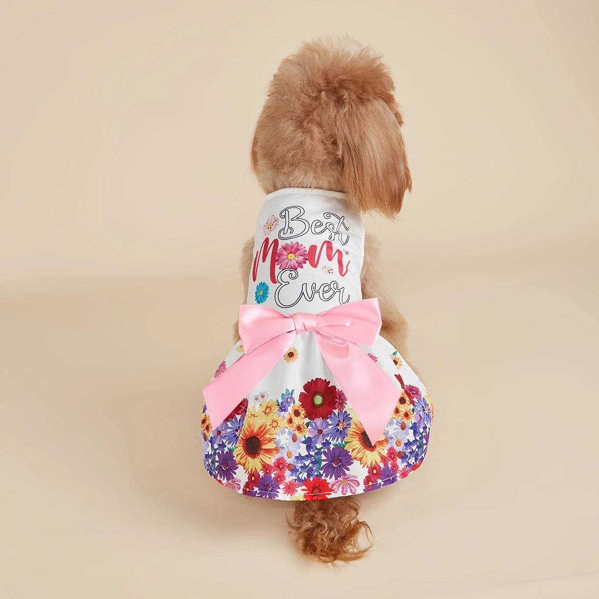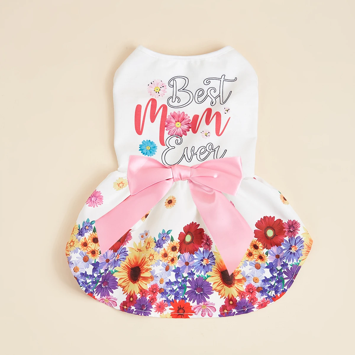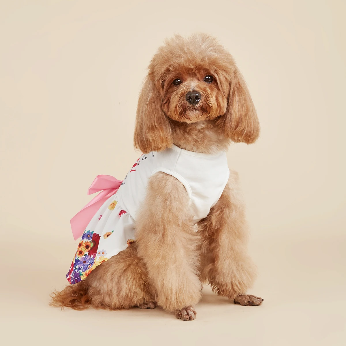 Vestido para mascotas con estampado floral colorido y lazo rosa, lindo traje para cachorros, ropa de moda para perros pequeños, ropa dulce para mascotas para fiesta de deshierbe