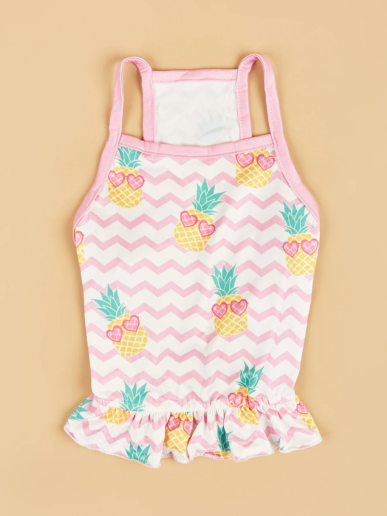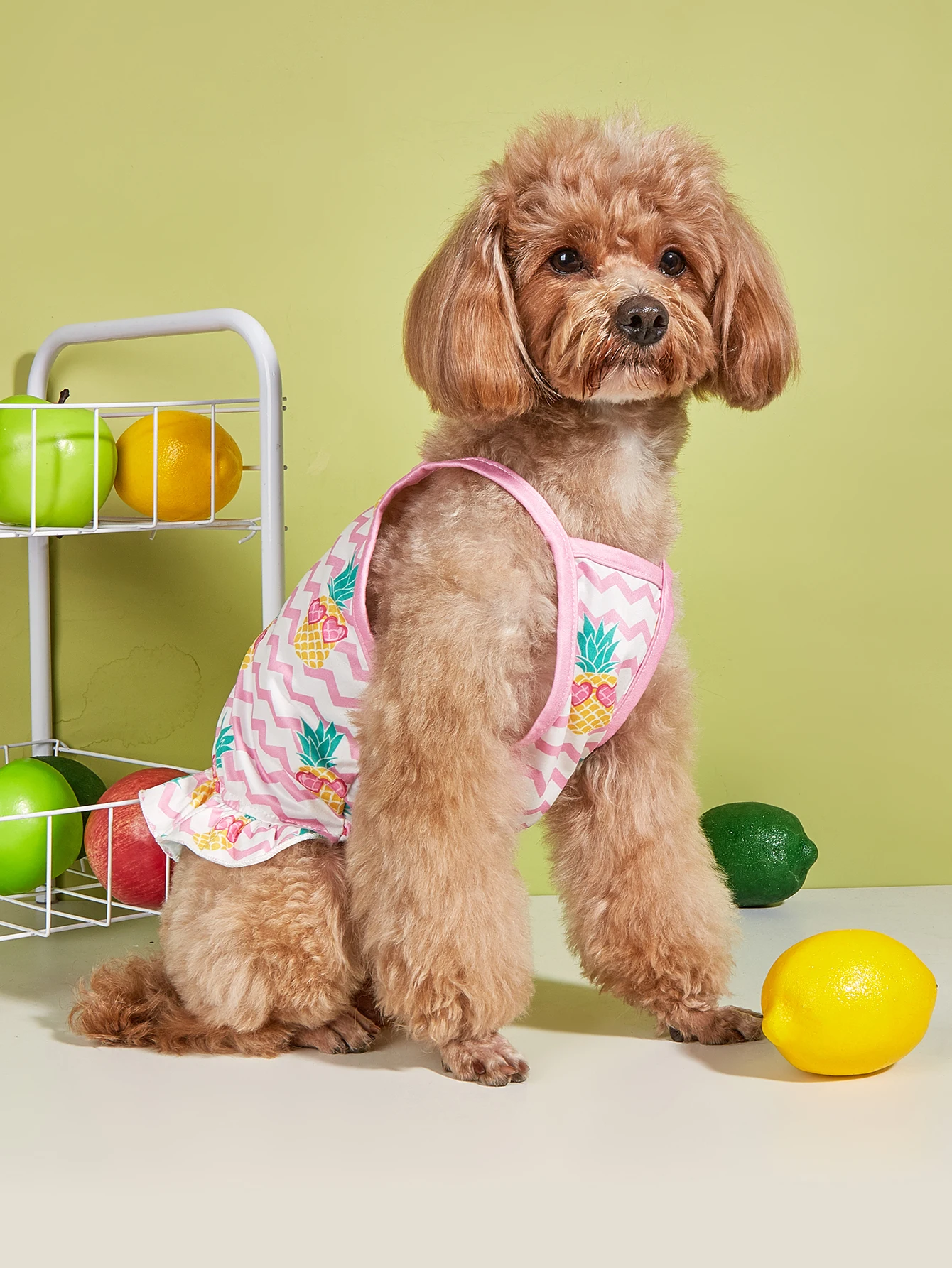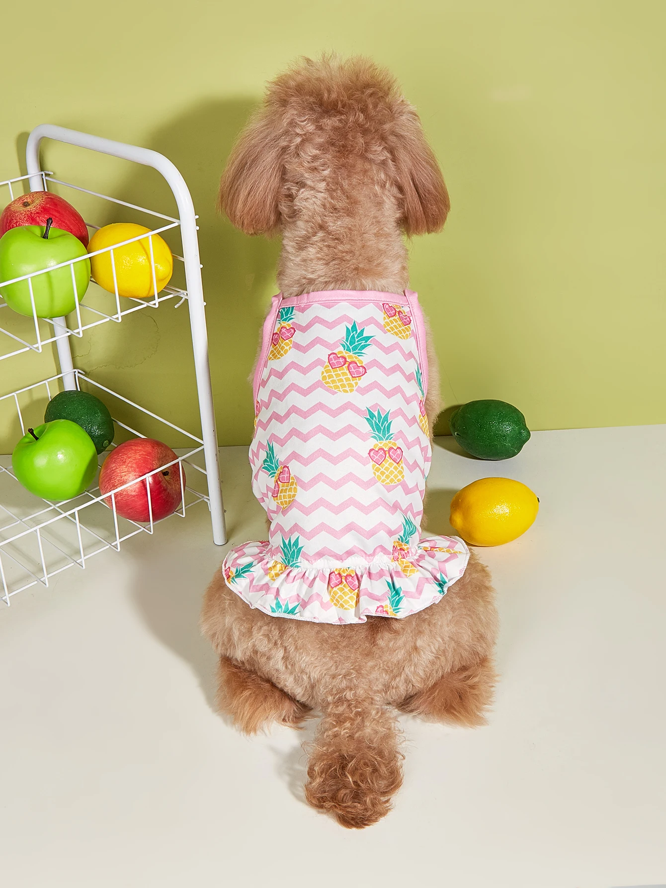 Vestido para mascotas con estampado de piña y patrón en zigzag rosa, traje para perrito con volantes, ropa bonita para cachorros, ropa de moda para perros pequeños