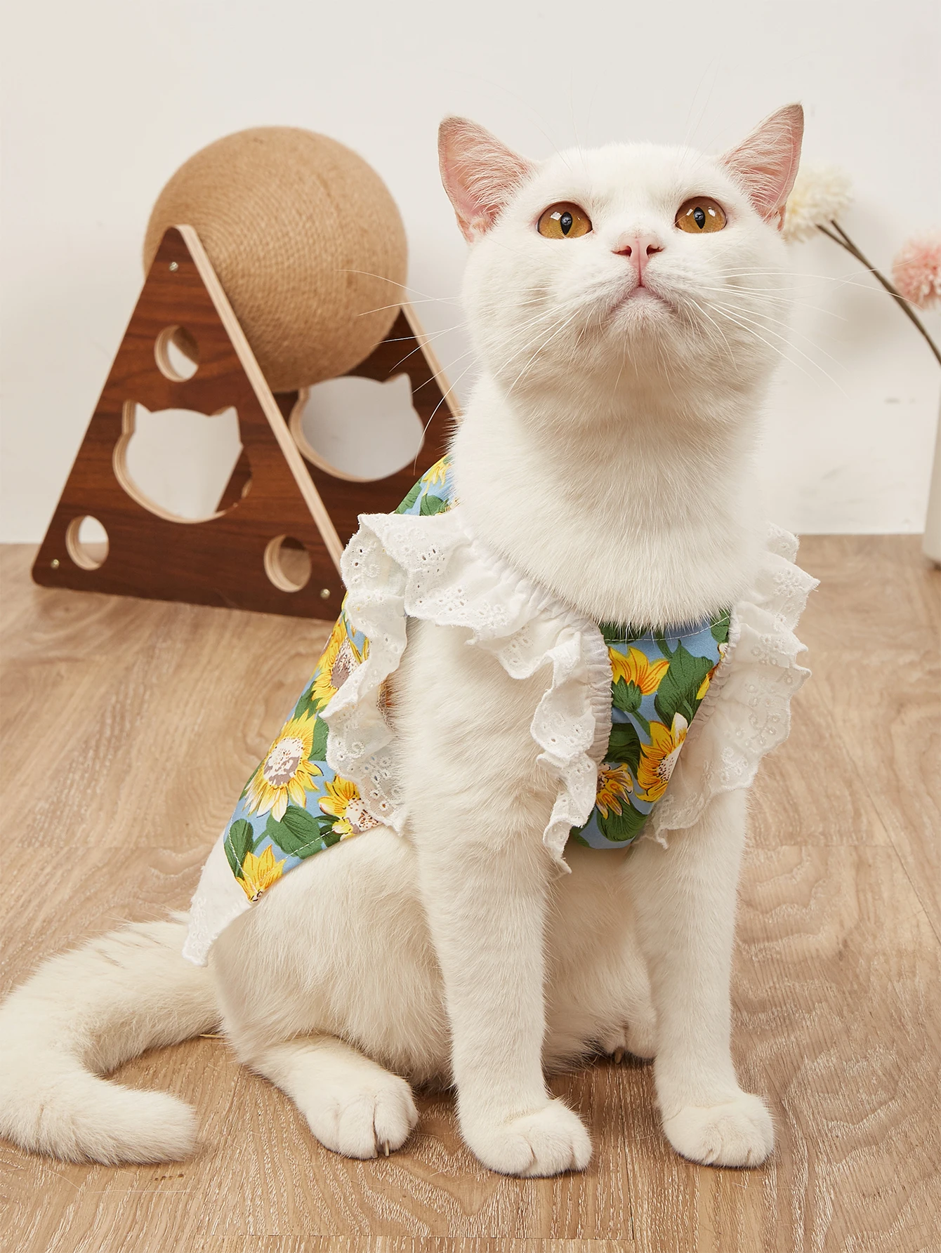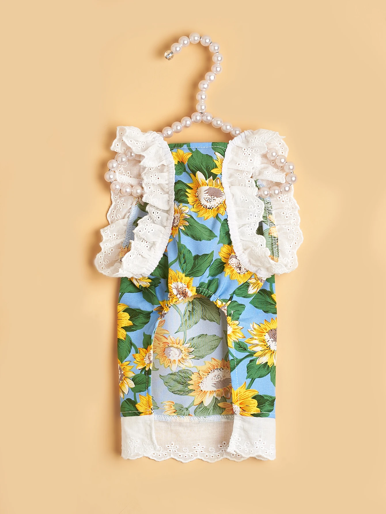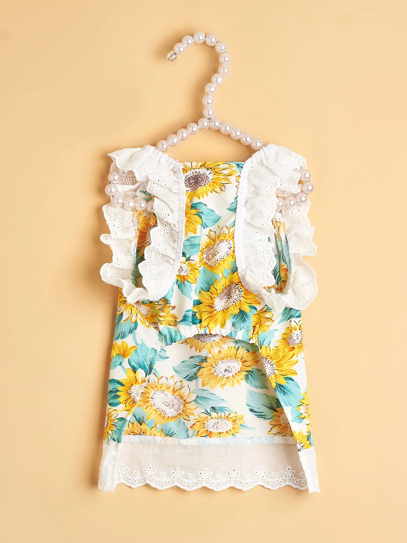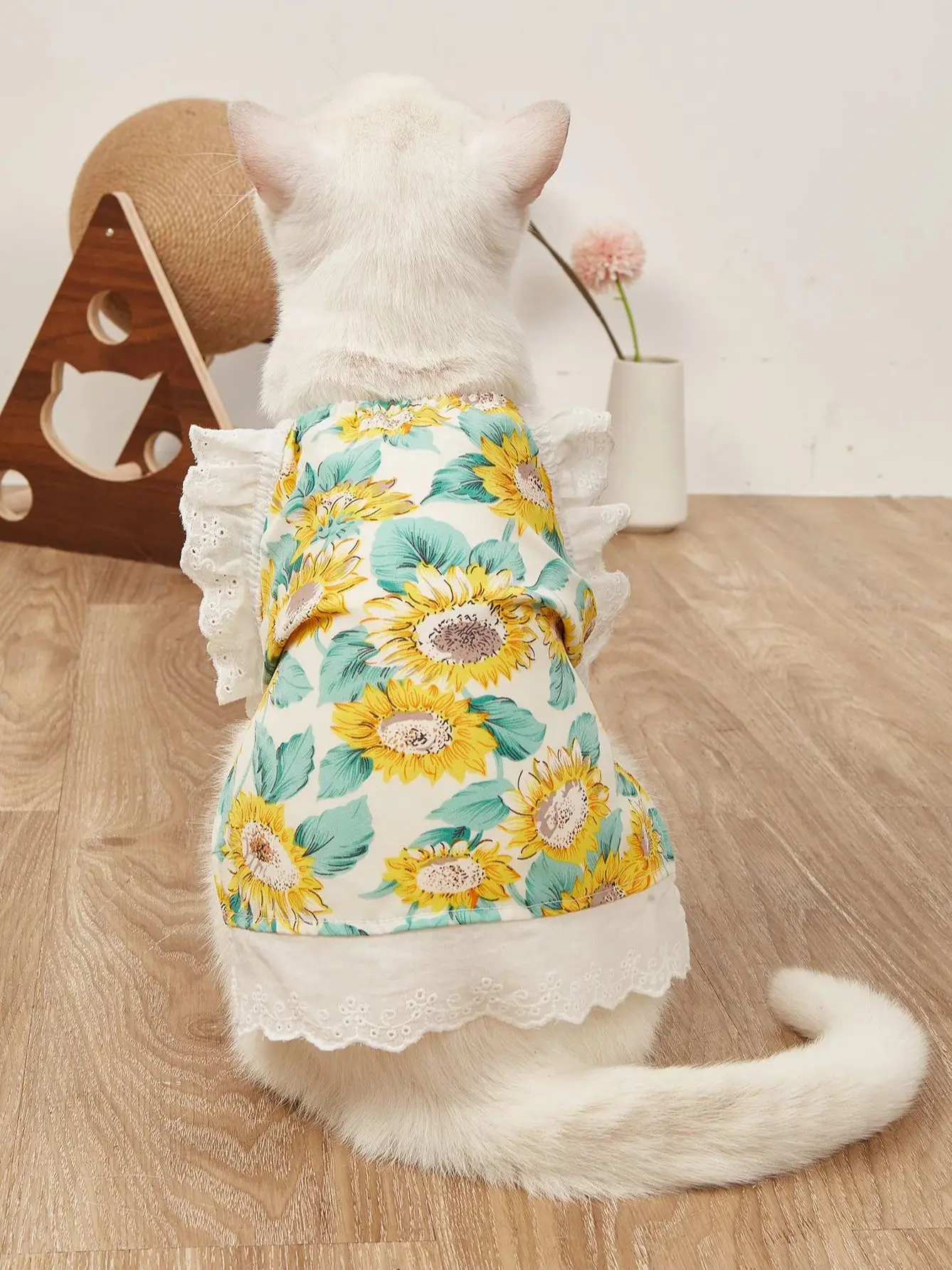 Vestido para mascotas, falda para perros con estampado de girasoles con volantes de encaje, traje para cachorros estilo INS, ropa bonita y transpirable para gatos y gatitos de verano,