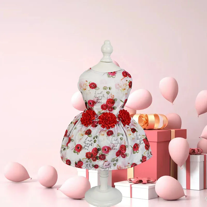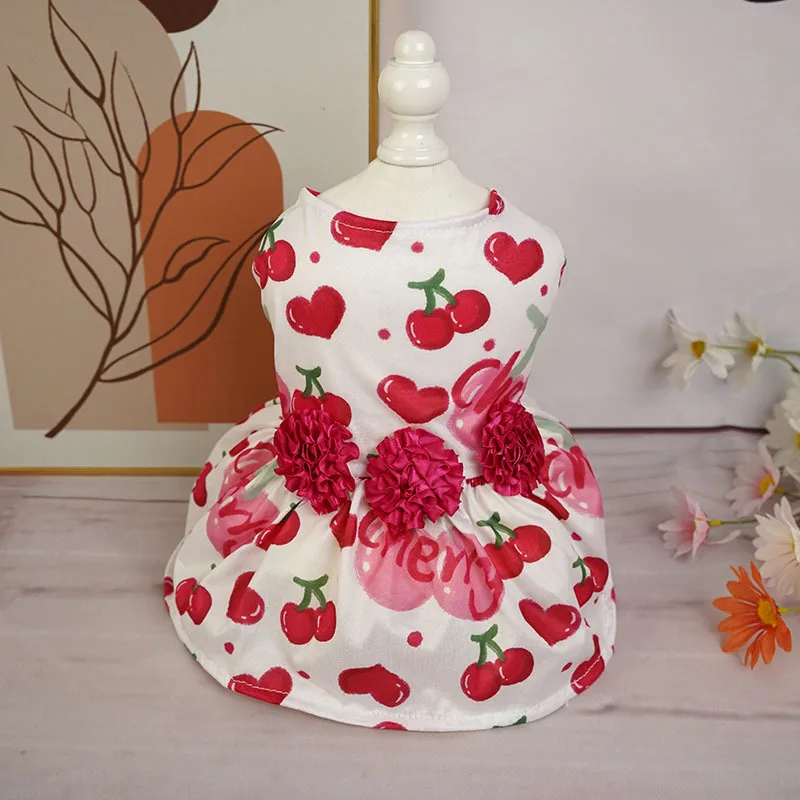 Vestido para mascotas, ropa para perros, vestido rosa de verano, Top de cereza, ropa bonita de Pomerania, ropa para perros pequeños y cachorros