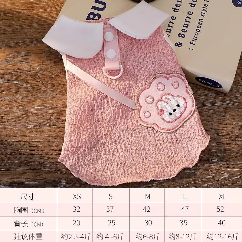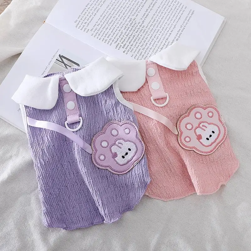 Vestido de mochila para perros, chaleco de primavera/verano para remolcar perros, abrigo de dos patas de verano, Top de cuello redondo de peluche, vestidos para perros pequeños