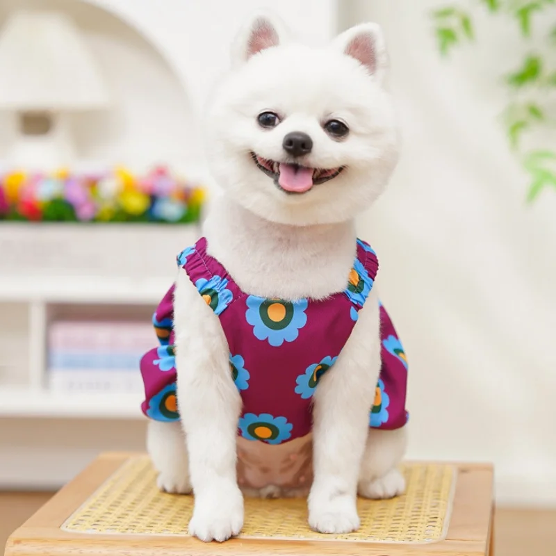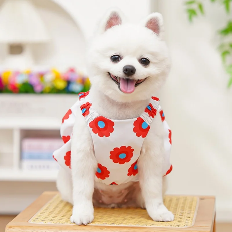 Vestido de moda para perros, ropa de verano para perros, falda de princesa con estampado de flores para cachorros, vestido de gato con tirantes dulce, falda de boda para mascotas, disfraces para perros
