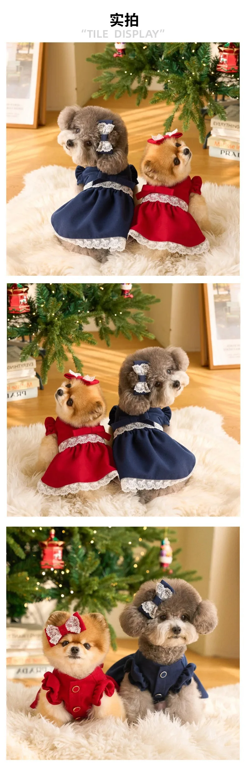 Vestido de Navidad para mascotas, Año Nuevo, Perro pequeño y mediano, gato, vestido con lazo de lana de doble cara, ropa para perros pequeños