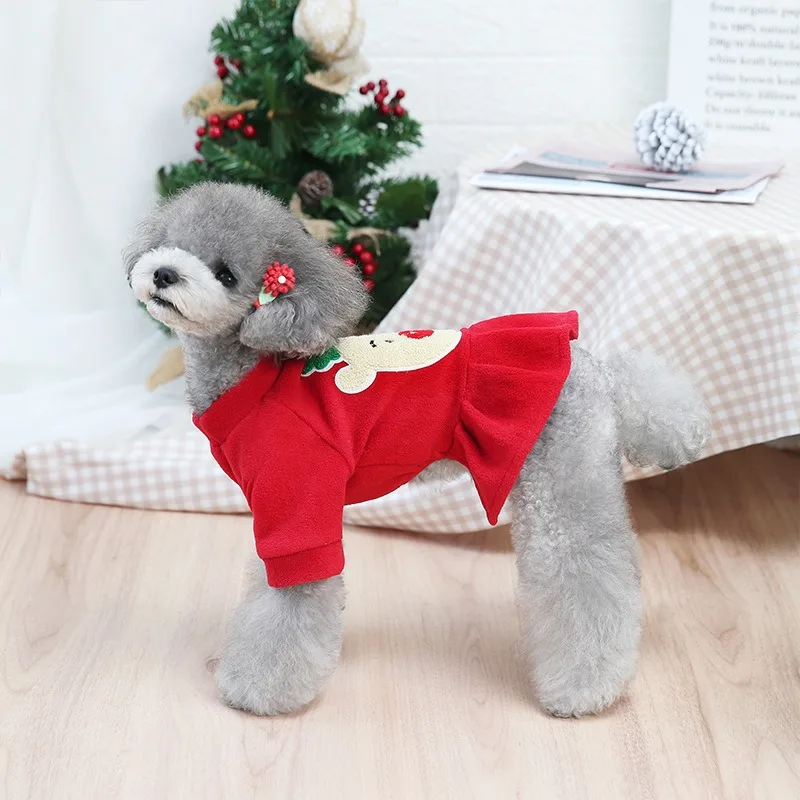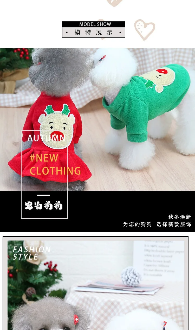 Vestido de Navidad para mascotas, ropa navideña para perros y alces, ropa de dos piernas para parejas, oso, perro de peluche, ropa de terciopelo para Otoño/Invierno