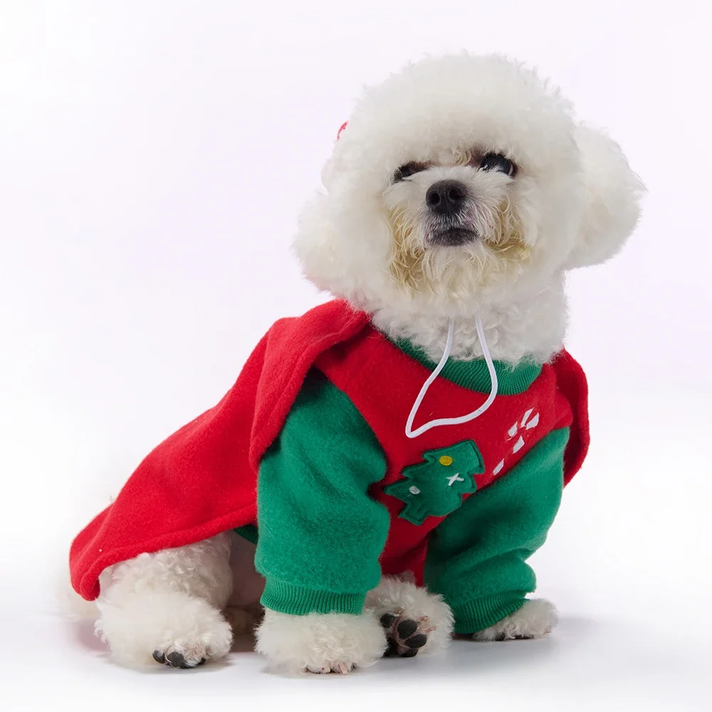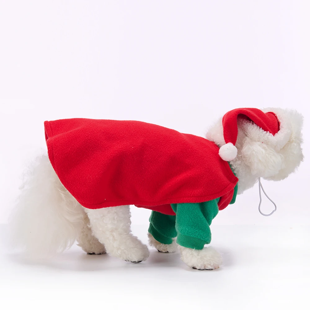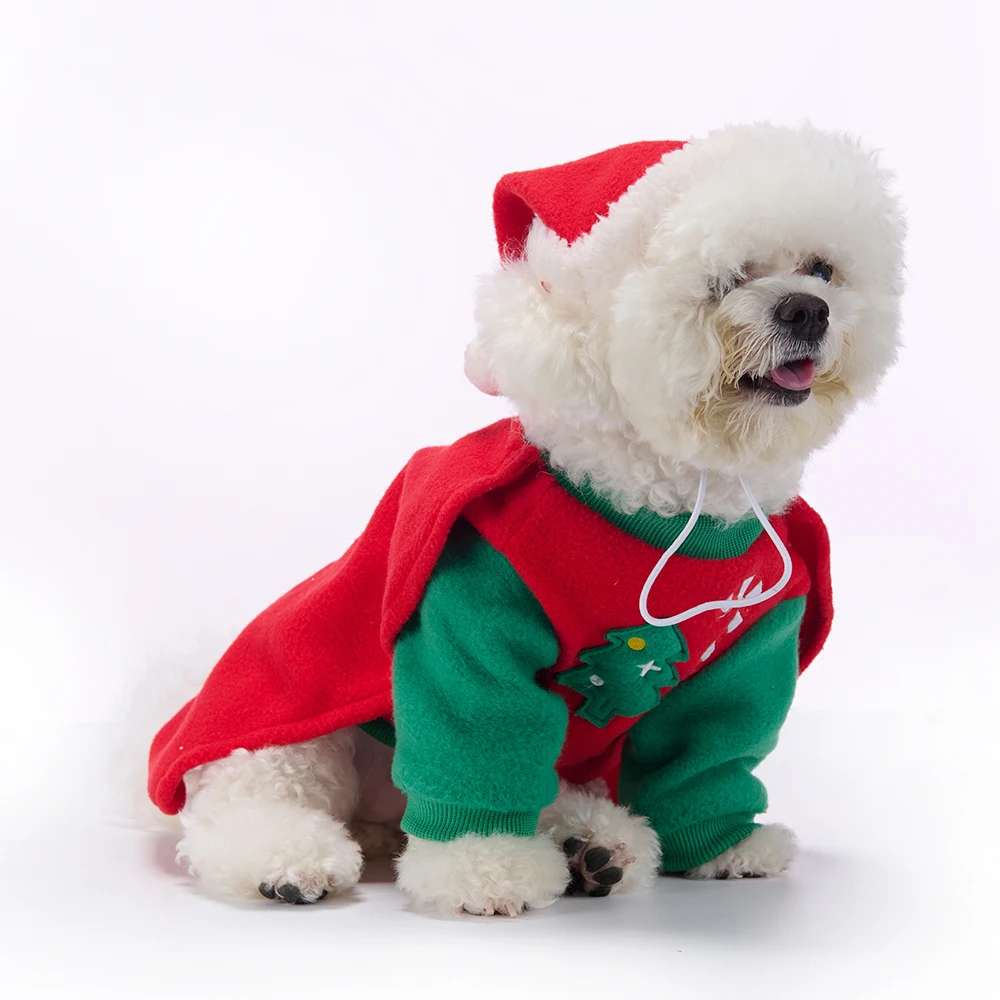 Vestido navideño de forro polar cálido para perros con sombrero, traje de invierno con piruleta morada, disfraz suave para mascotas para perros pequeños a XL