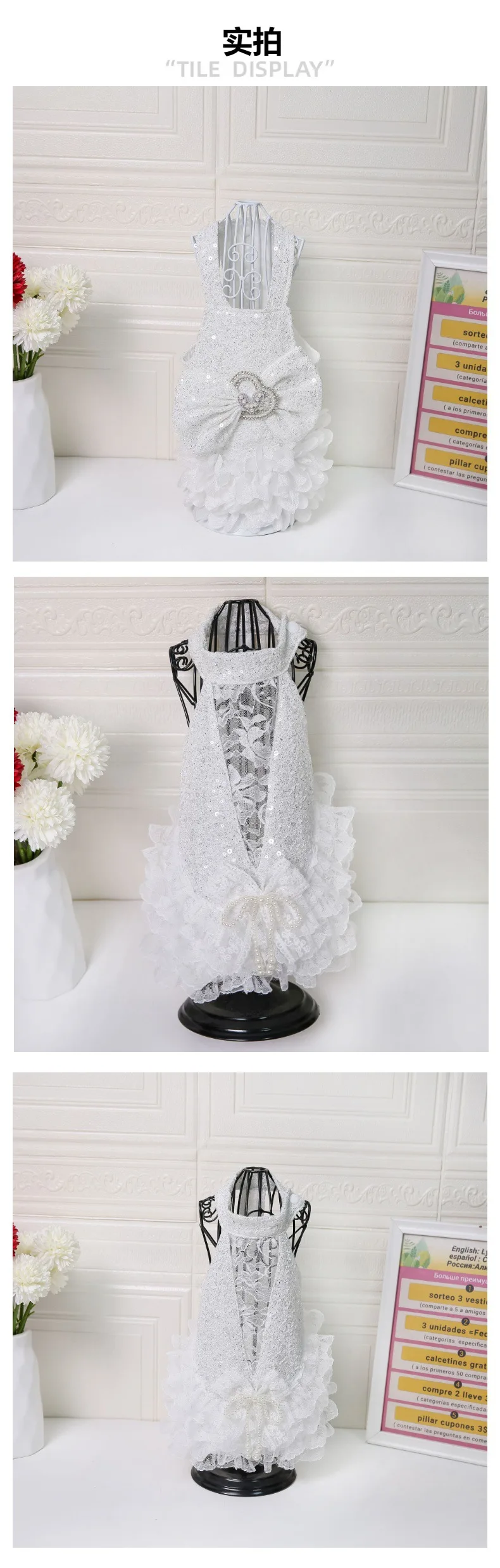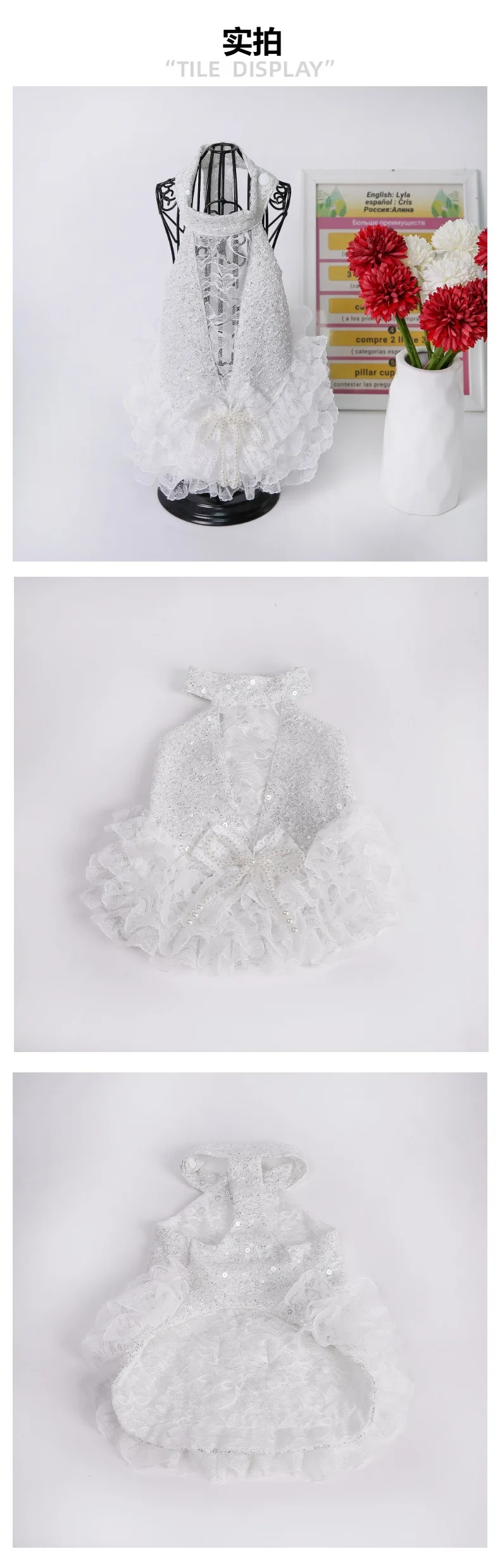 Vestido de novia blanco puro para primavera/verano para mascotas, vestido de princesa para perros, falda con tirantes y lazo, ropa brillante para perros pequeños