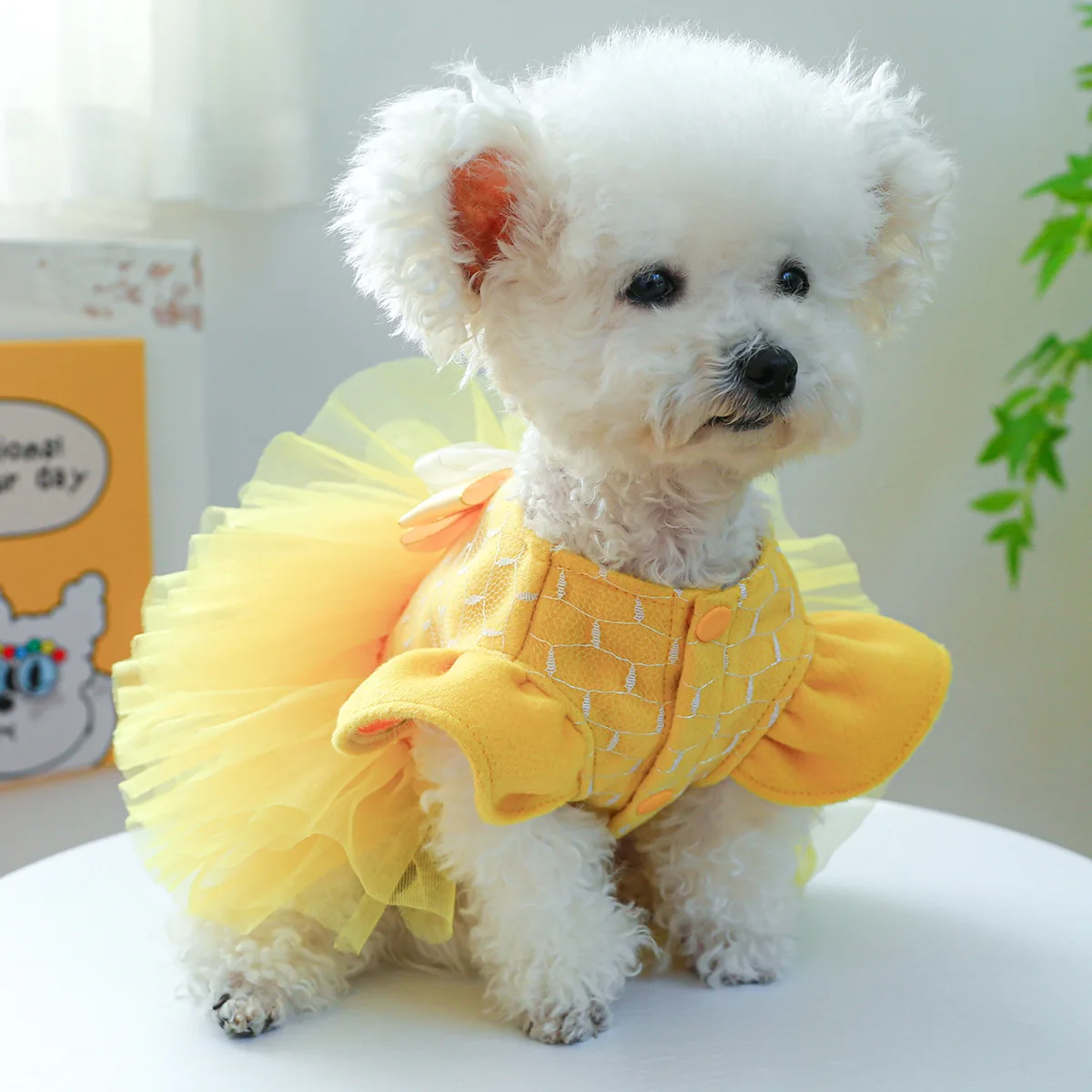Vestido de novia de diseño de dibujos animados para perros pequeños, ropa de lana amarilla para mascotas, ropa para Chihuahua, ropa de lujo para cachorros, Invierno
