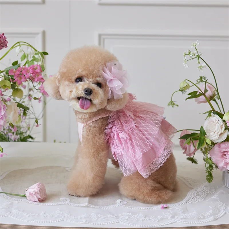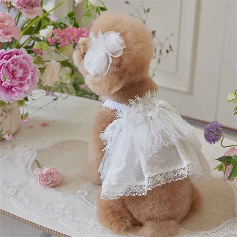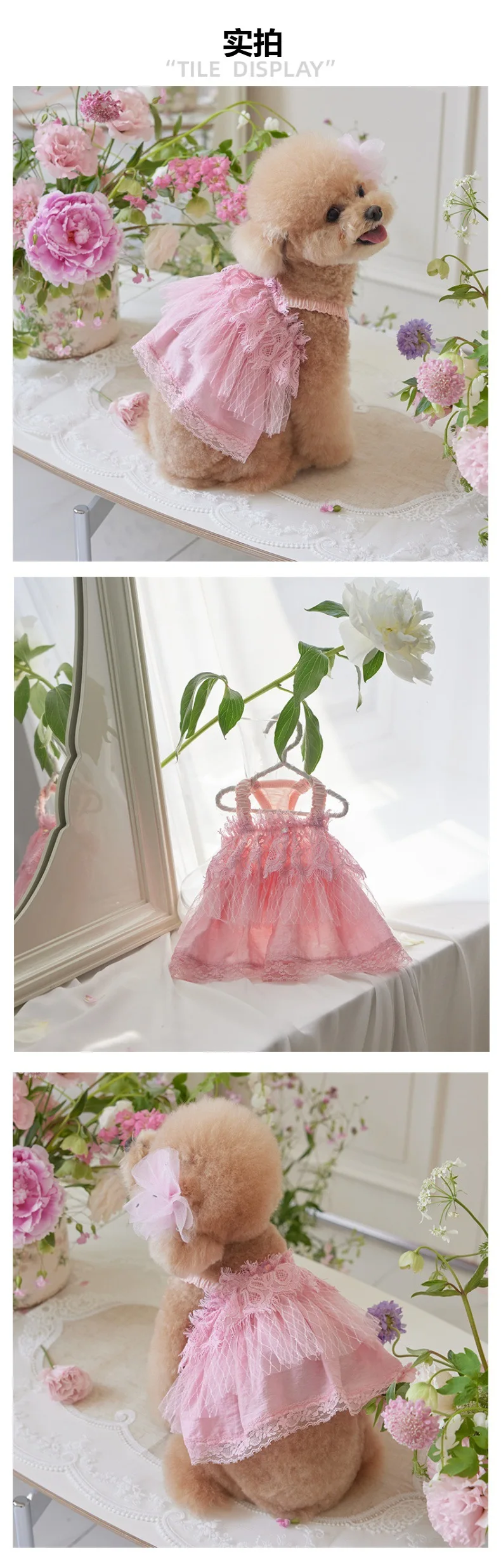 Vestido de novia de encaje de primavera para mascotas, falda esponjosa, vestidos de princesa para cachorros de perros pequeños y medianos para perros pequeños