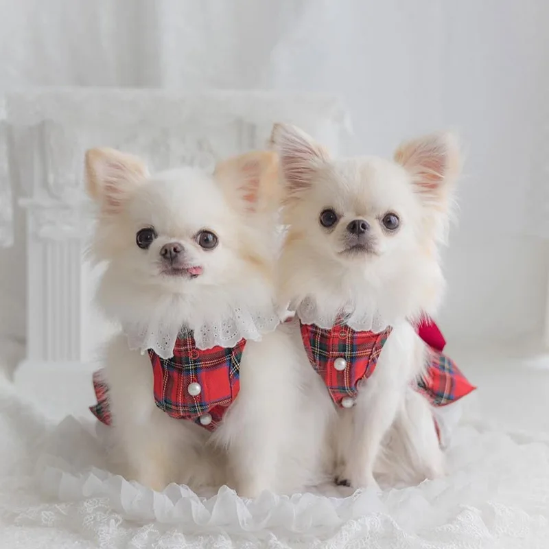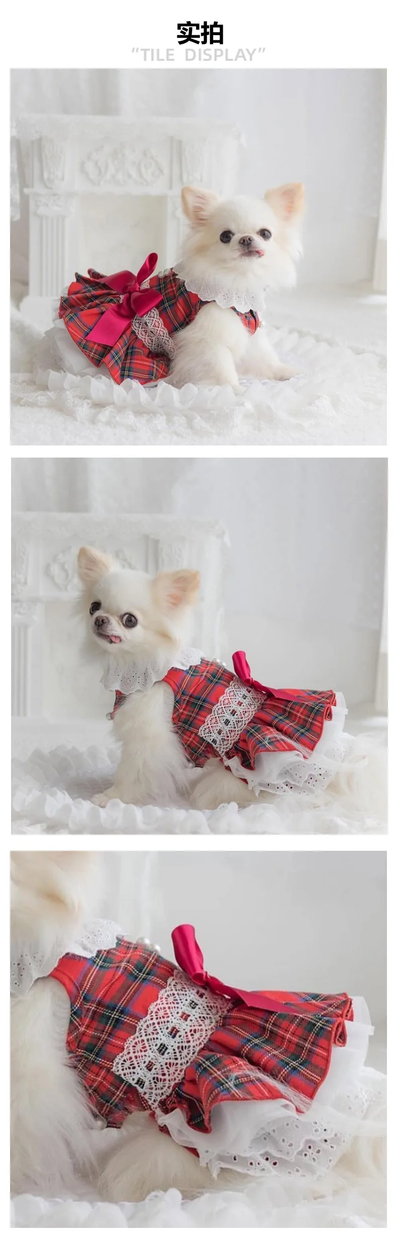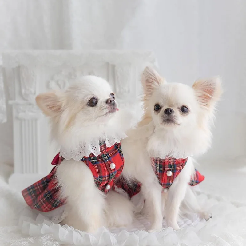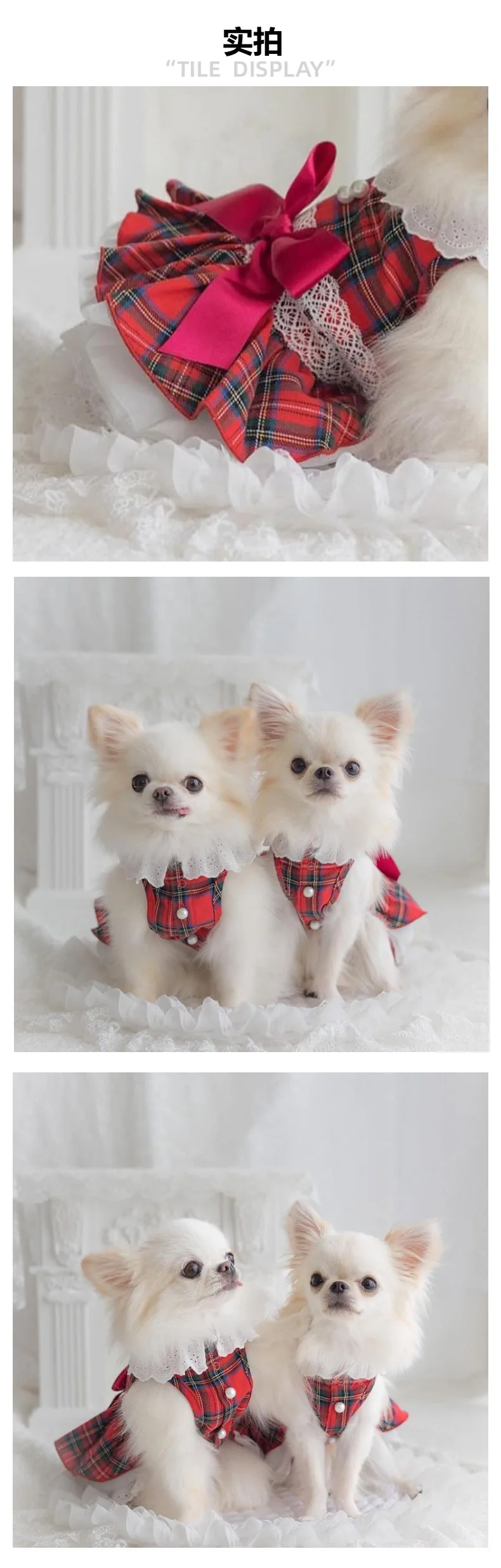 Vestido de otoño/invierno para mascotas, Año Nuevo, Navidad, Día de San Valentín, ropa para perros, falda a cuadros para mascotas, camiseta sin mangas para perros, vestidos para perros pequeños