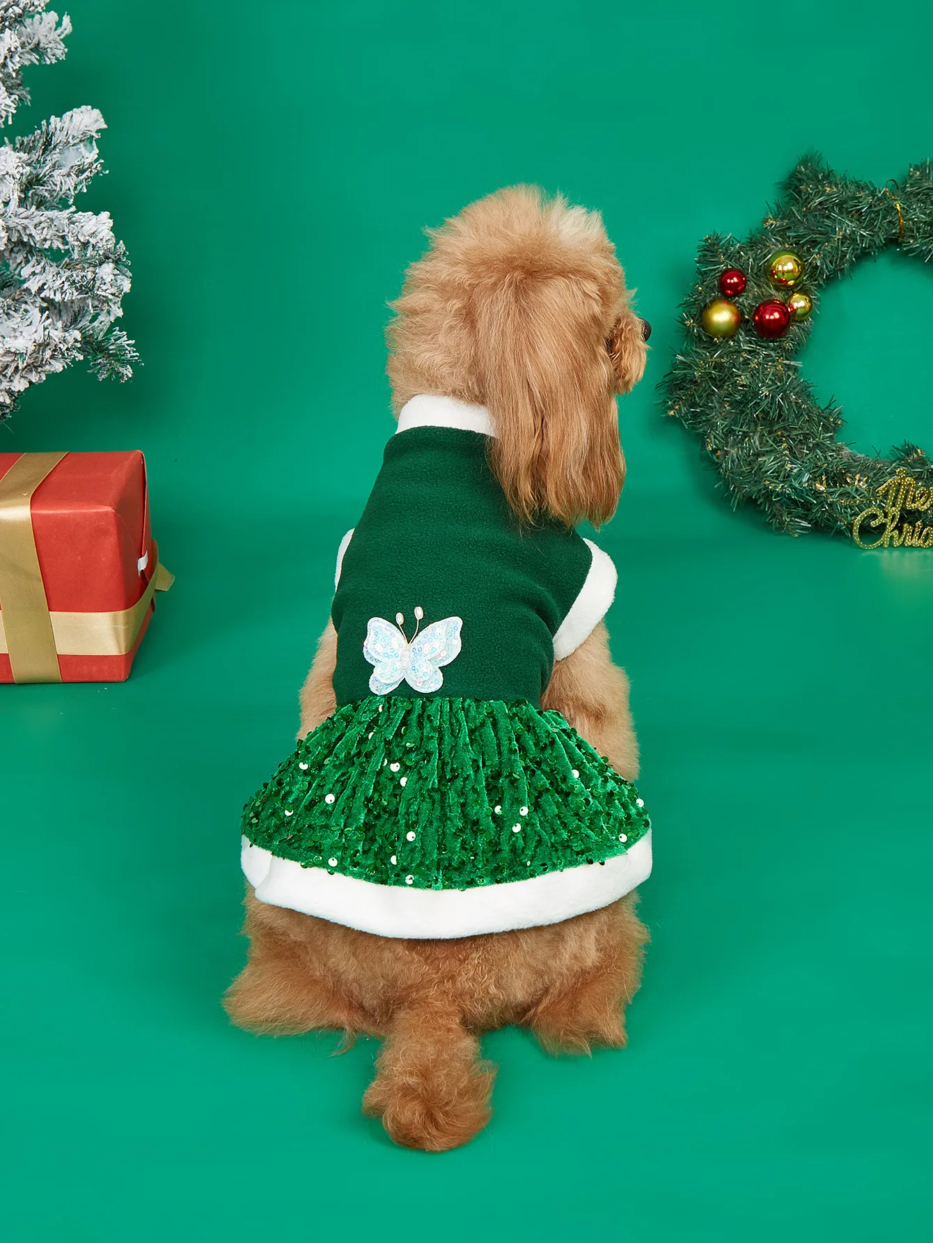 Vestido de peluche con purpurina para perro pequeño, ropa de gato, vestidos de perro para cachorro, Navidad, Otoño e Invierno