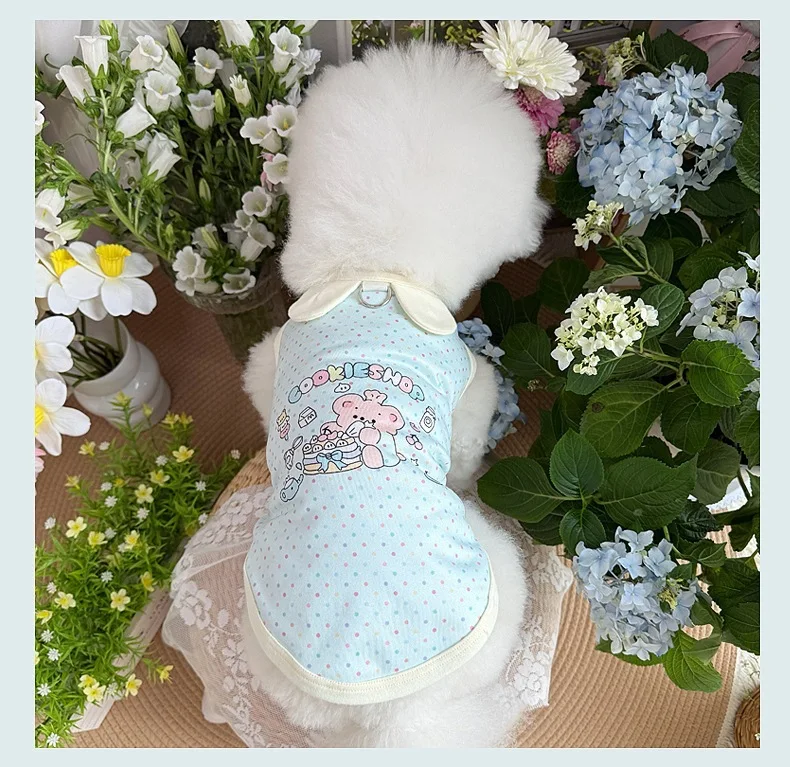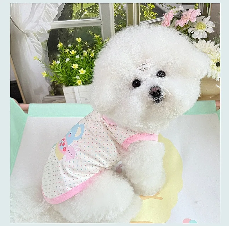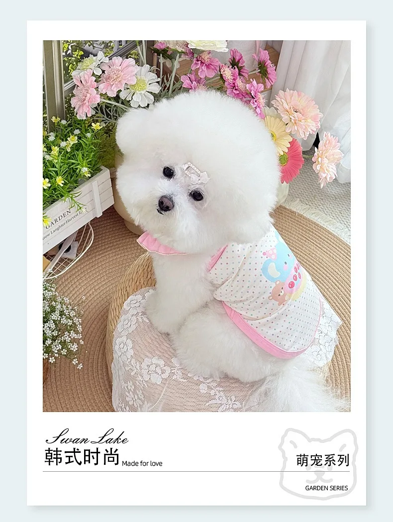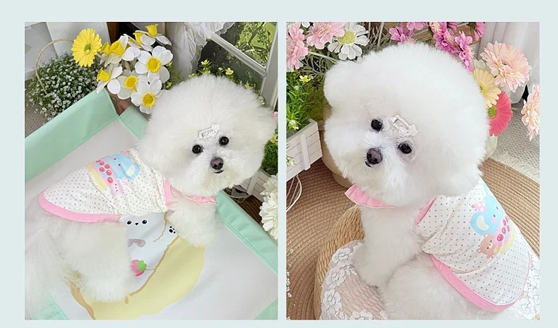 Vestido de peluche con tirantes de color helado estampado de dibujos animados para mascotas, ropa para cachorros, ropa para perros pequeños
