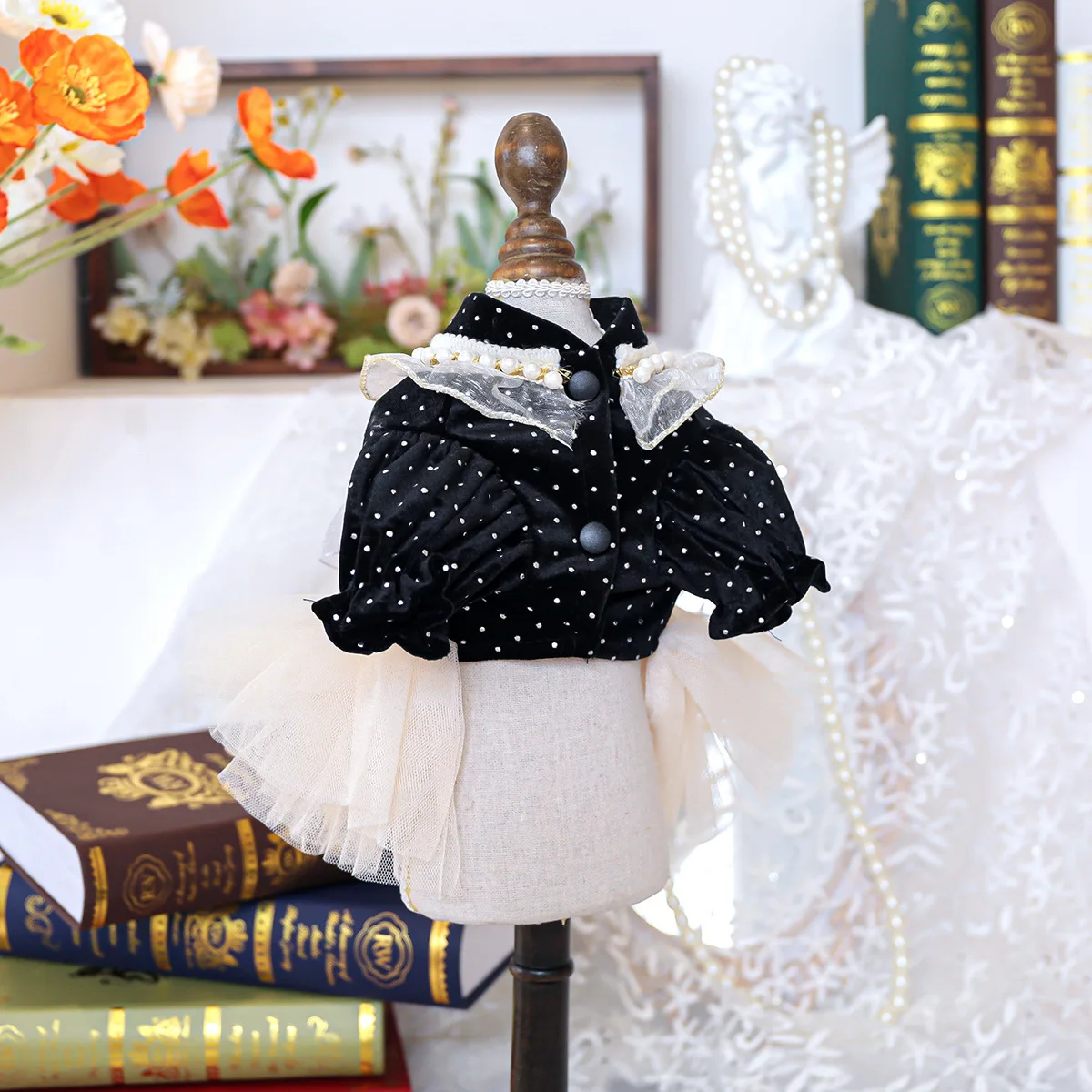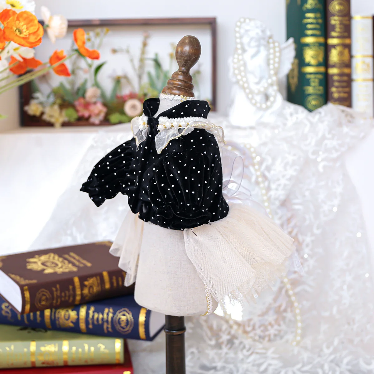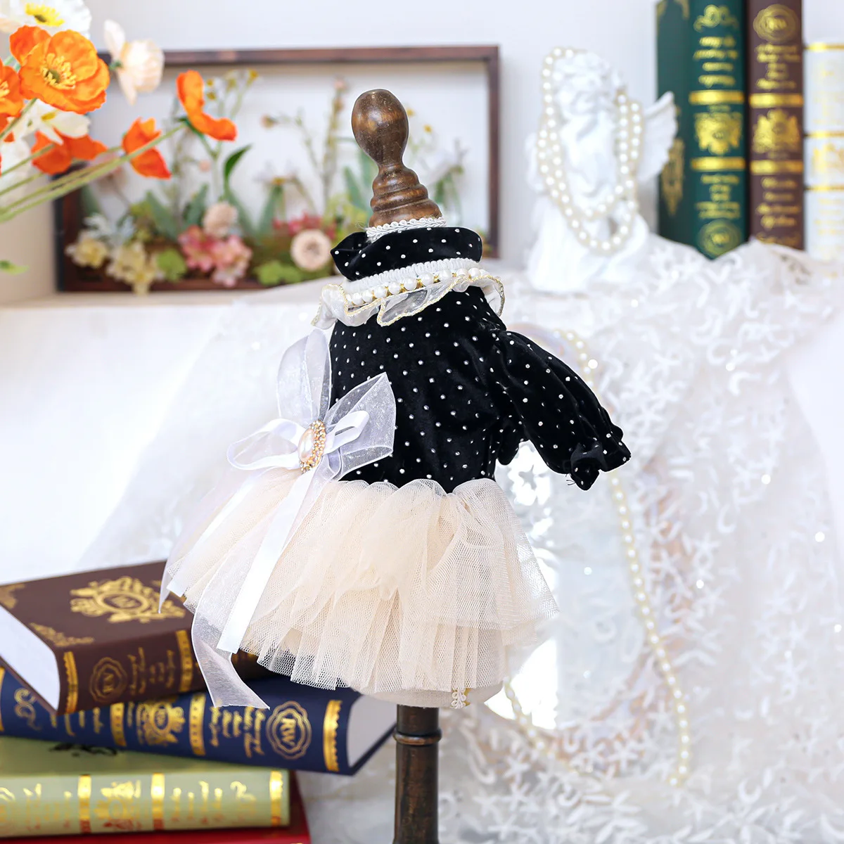 Vestido de perlas de primavera para mascotas, vestidos con lazo de malla empalmados para gatos de peluche, vestido de novia cálido, ropa para cachorros