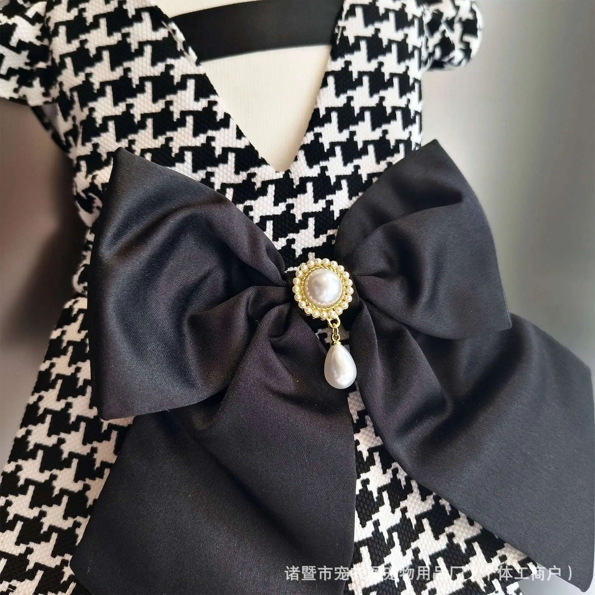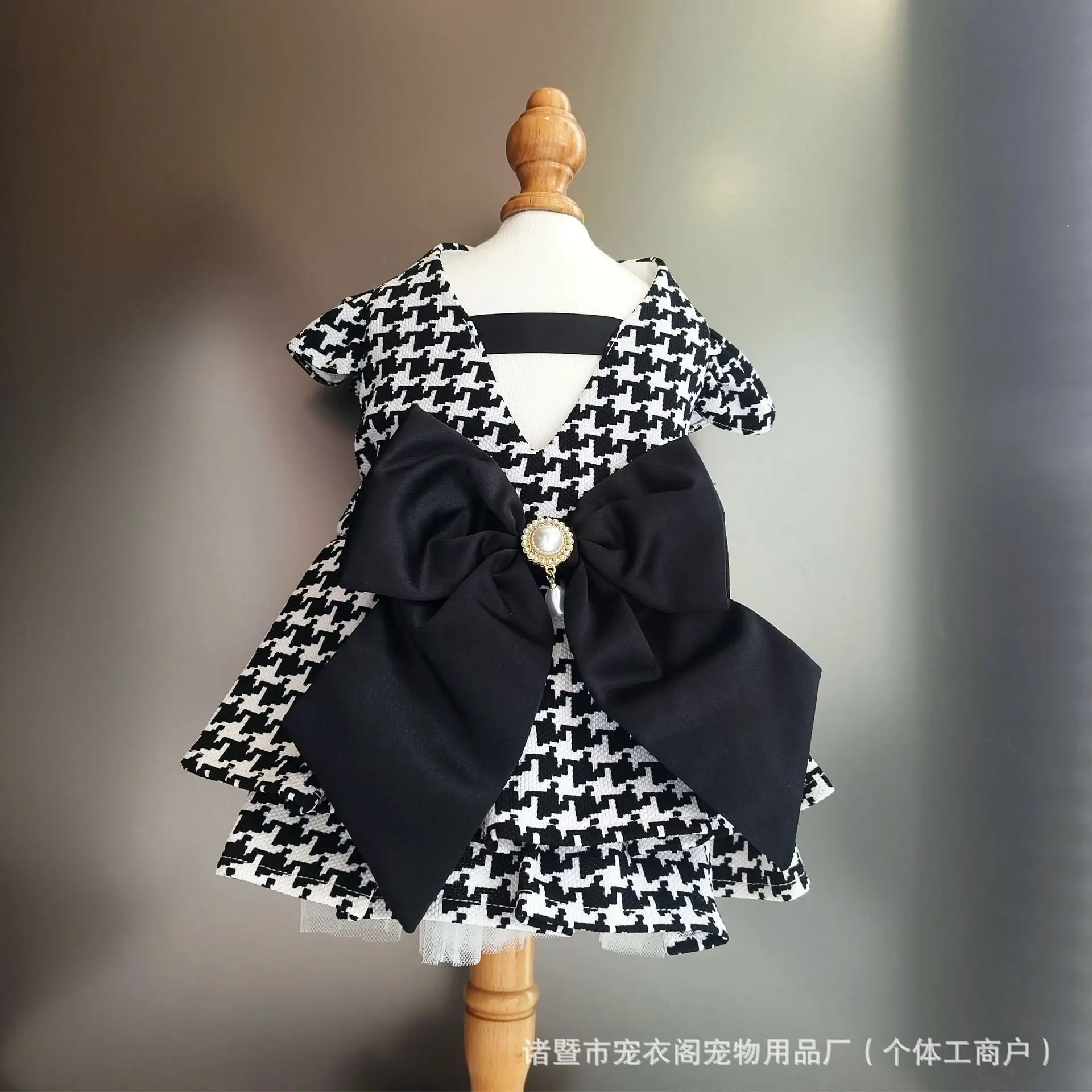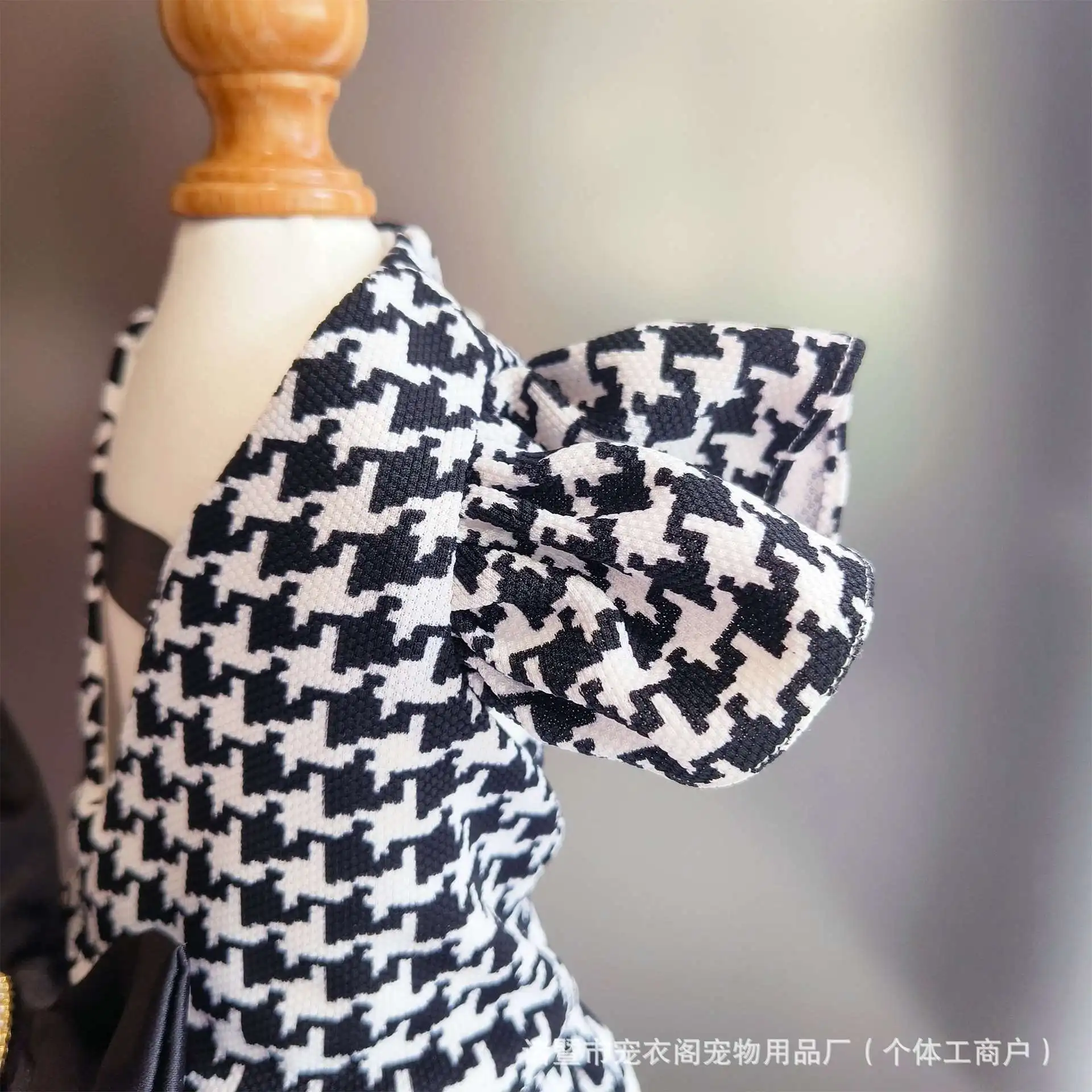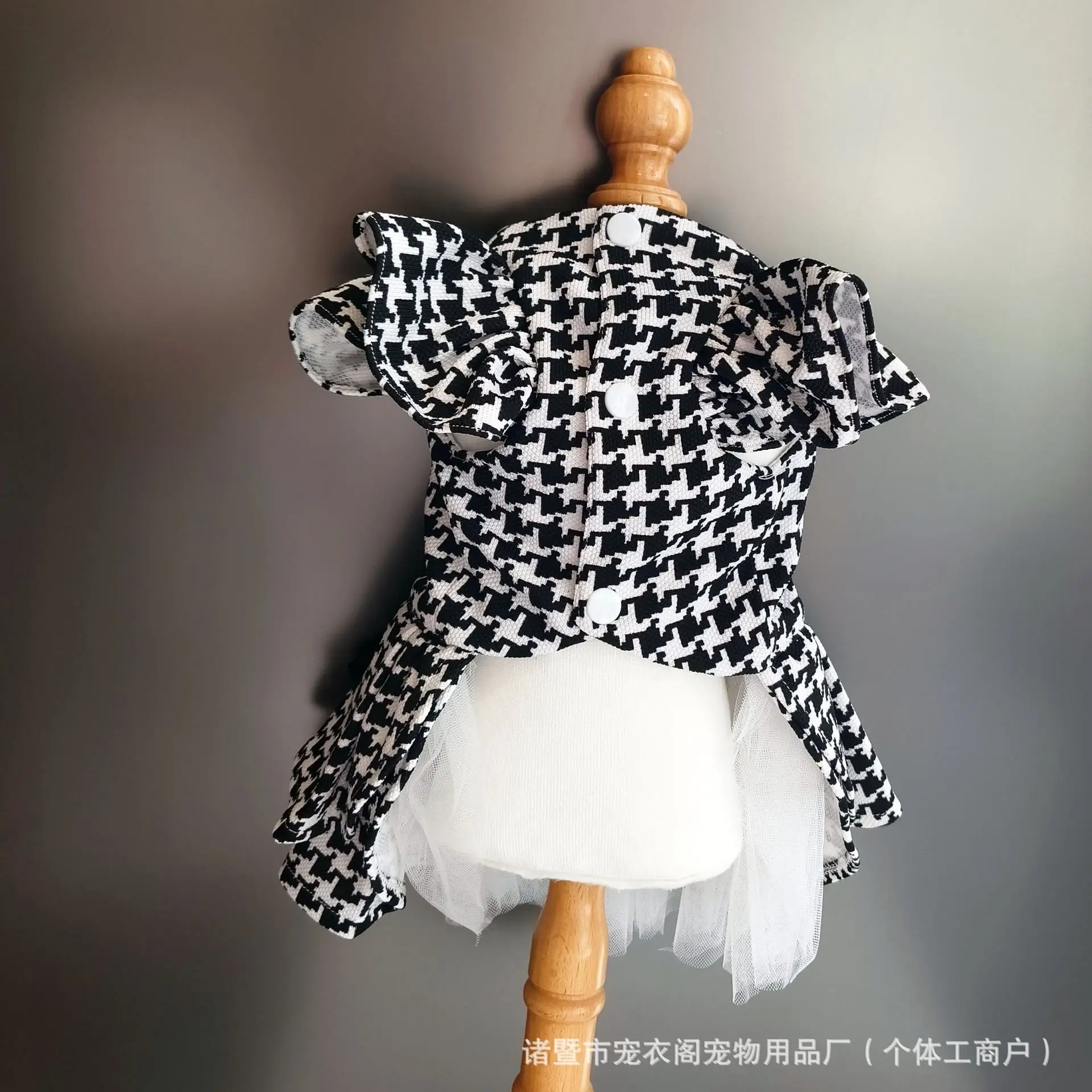 Vestido para perro con cárdigan de punto de pata de gallo y falda tutú, traje de cachorro de malla transpirable para ropa para perros pequeños Bichon