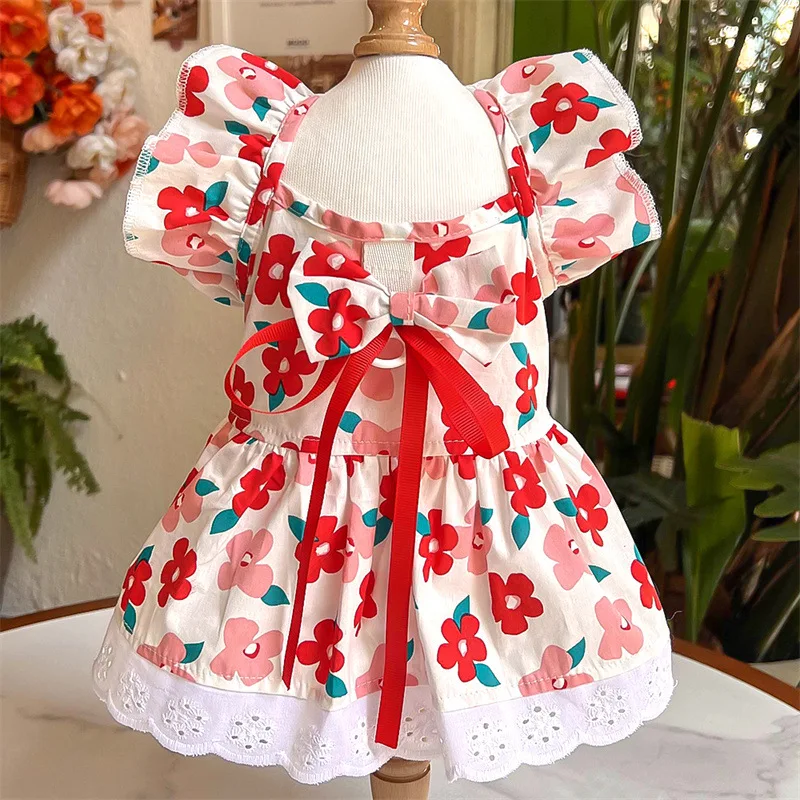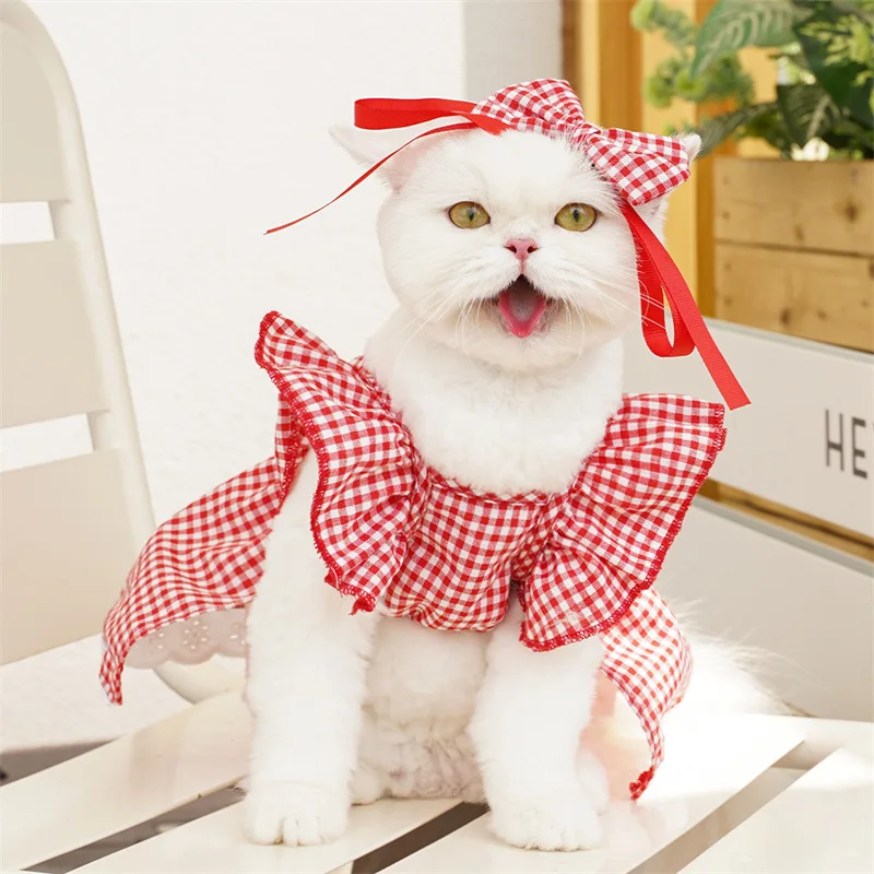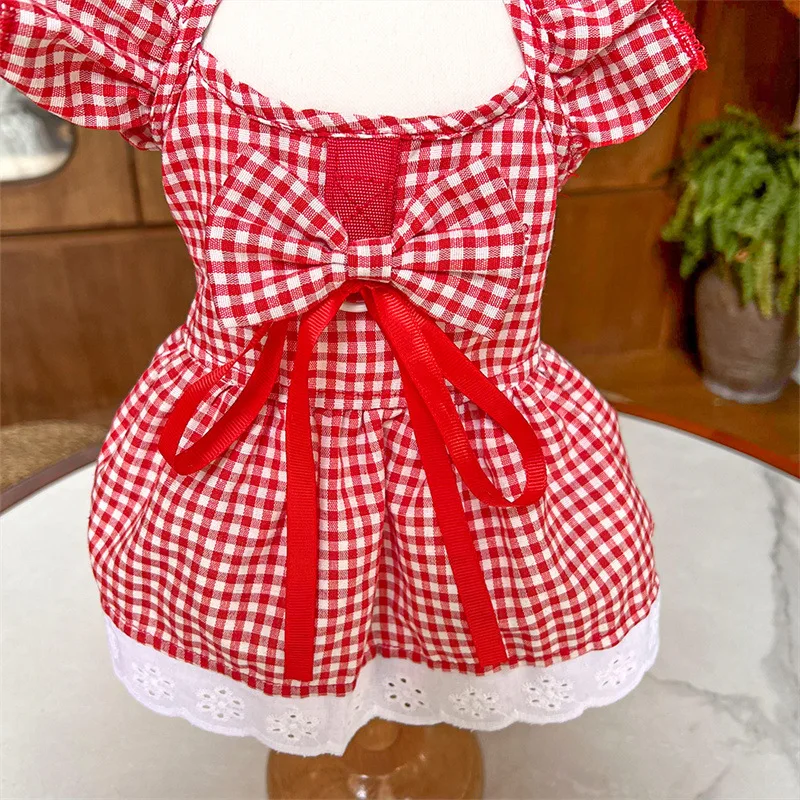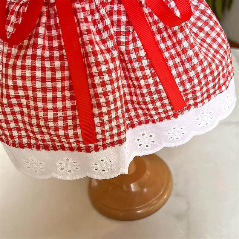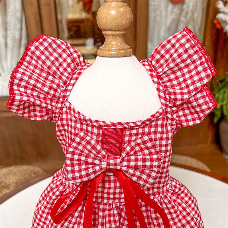 Vestido para perro, chaleco de lujo para mascotas, falda a cuadros de algodón para cachorro, disfraz para perro y niña, ropa para Chihuahua, ropa para perro Bichon con lazo