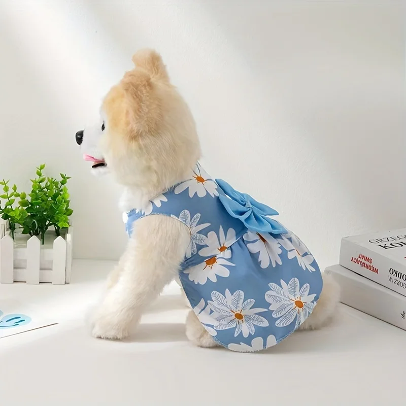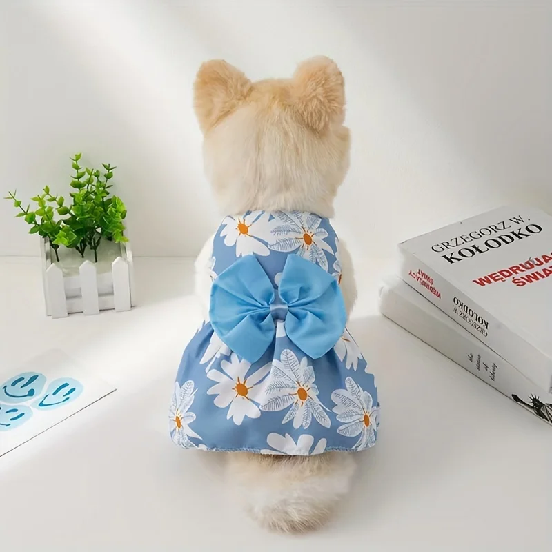 Vestidos para perros de compañía, princesa, viento, gasa ligera que fluye, falda con tirantes y lazo, vestido con tirantes, ropa fina transpirable para perros TeddyPet