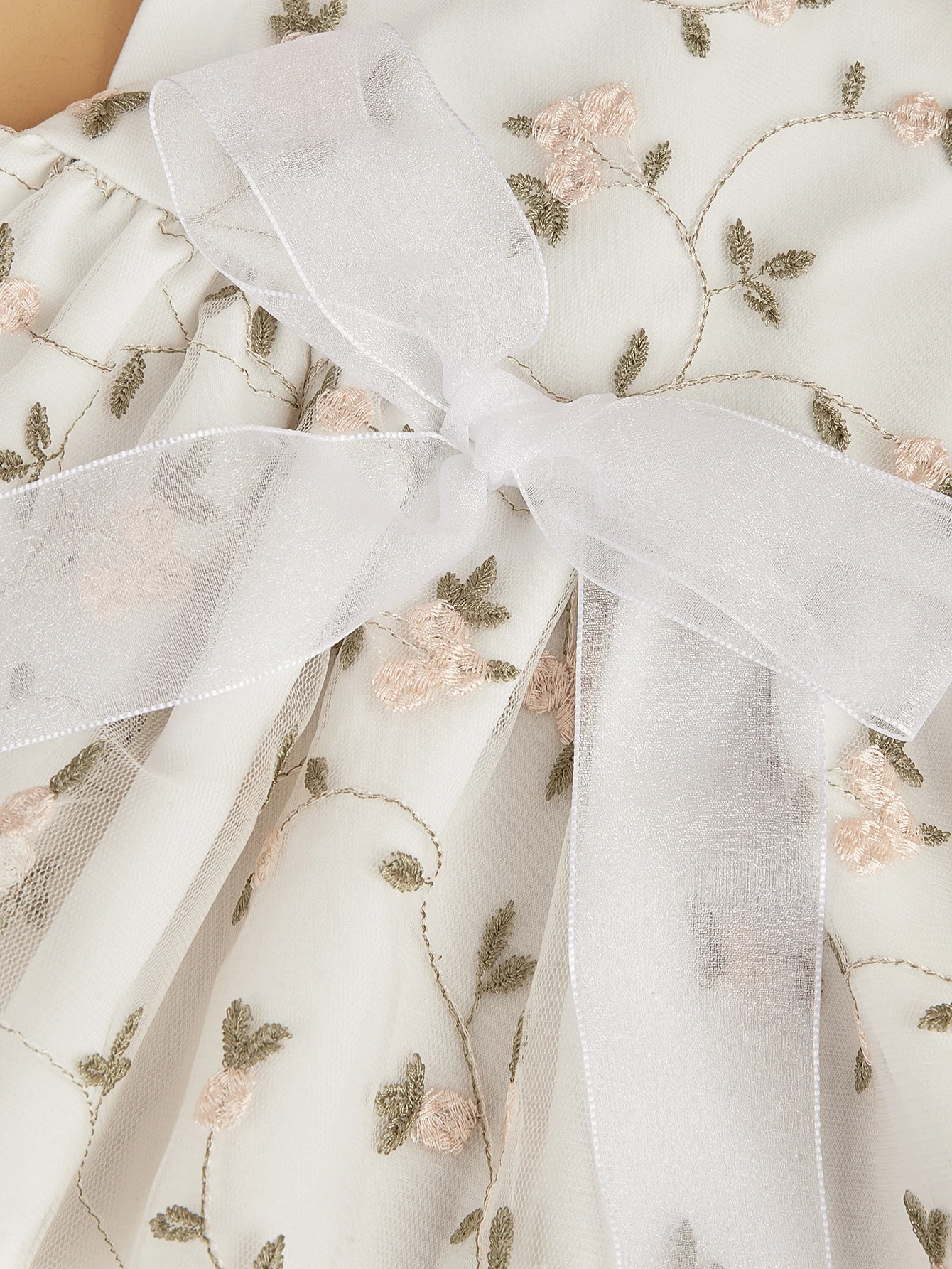 Fabuloso vestido blanco con flores y hojas bordadas. ¡Altamente recomendado! A+++++