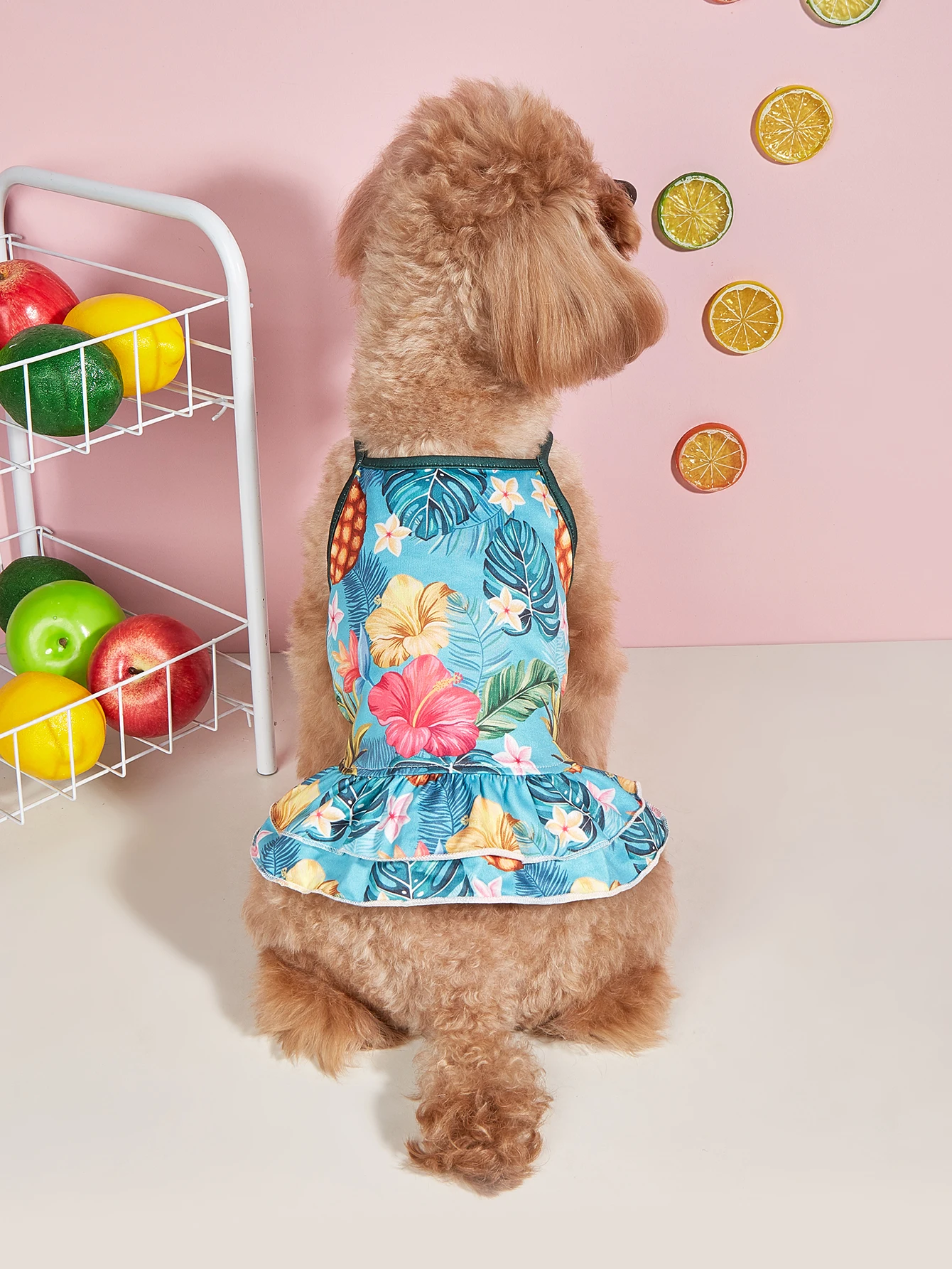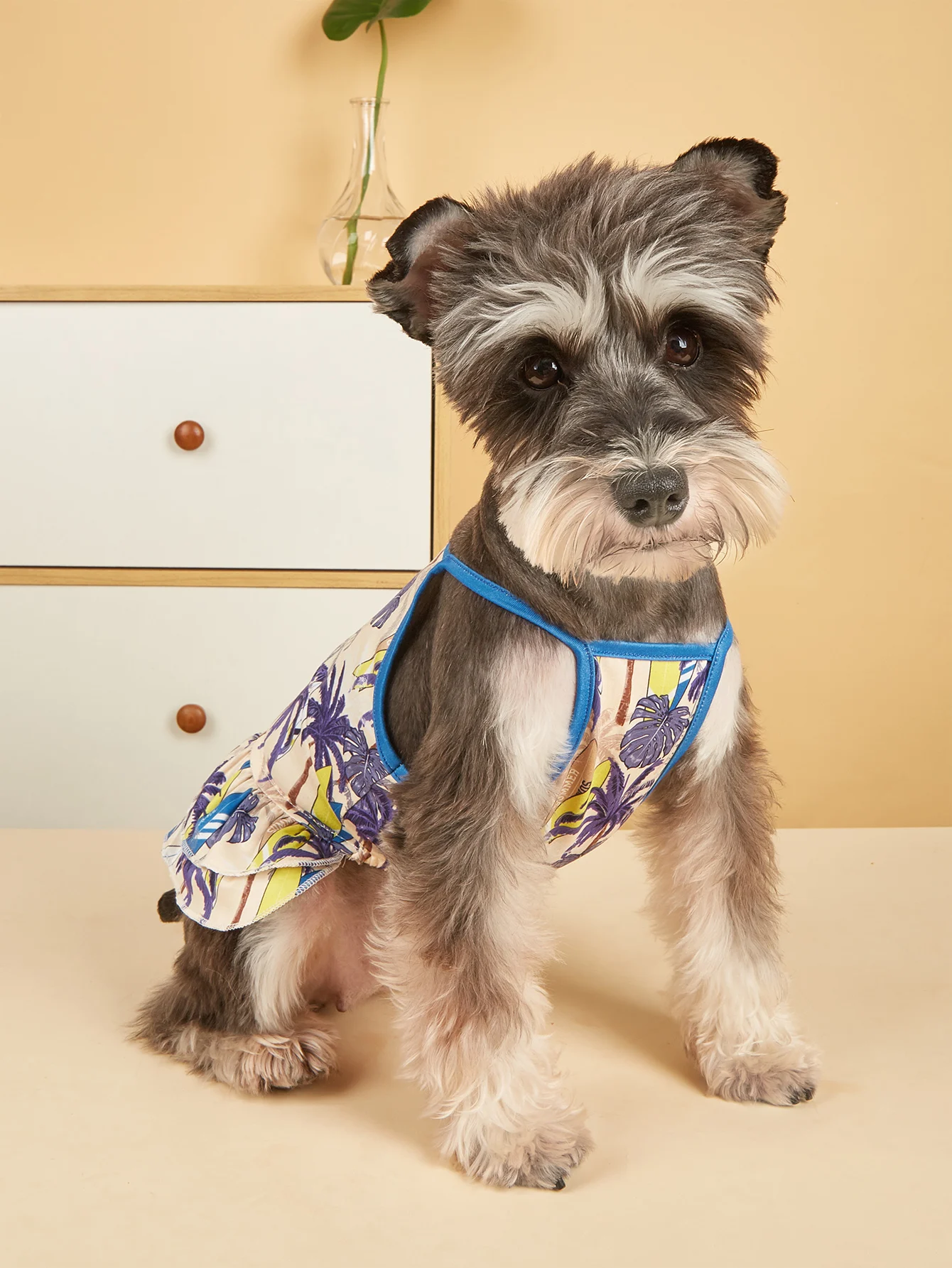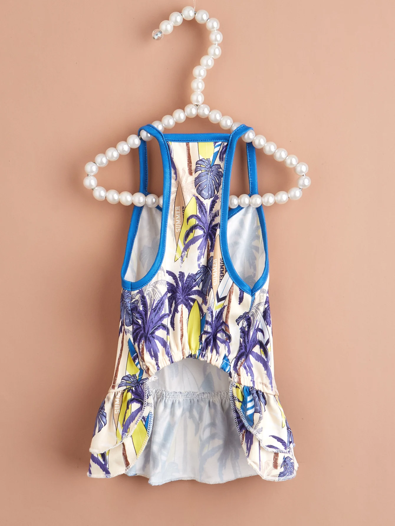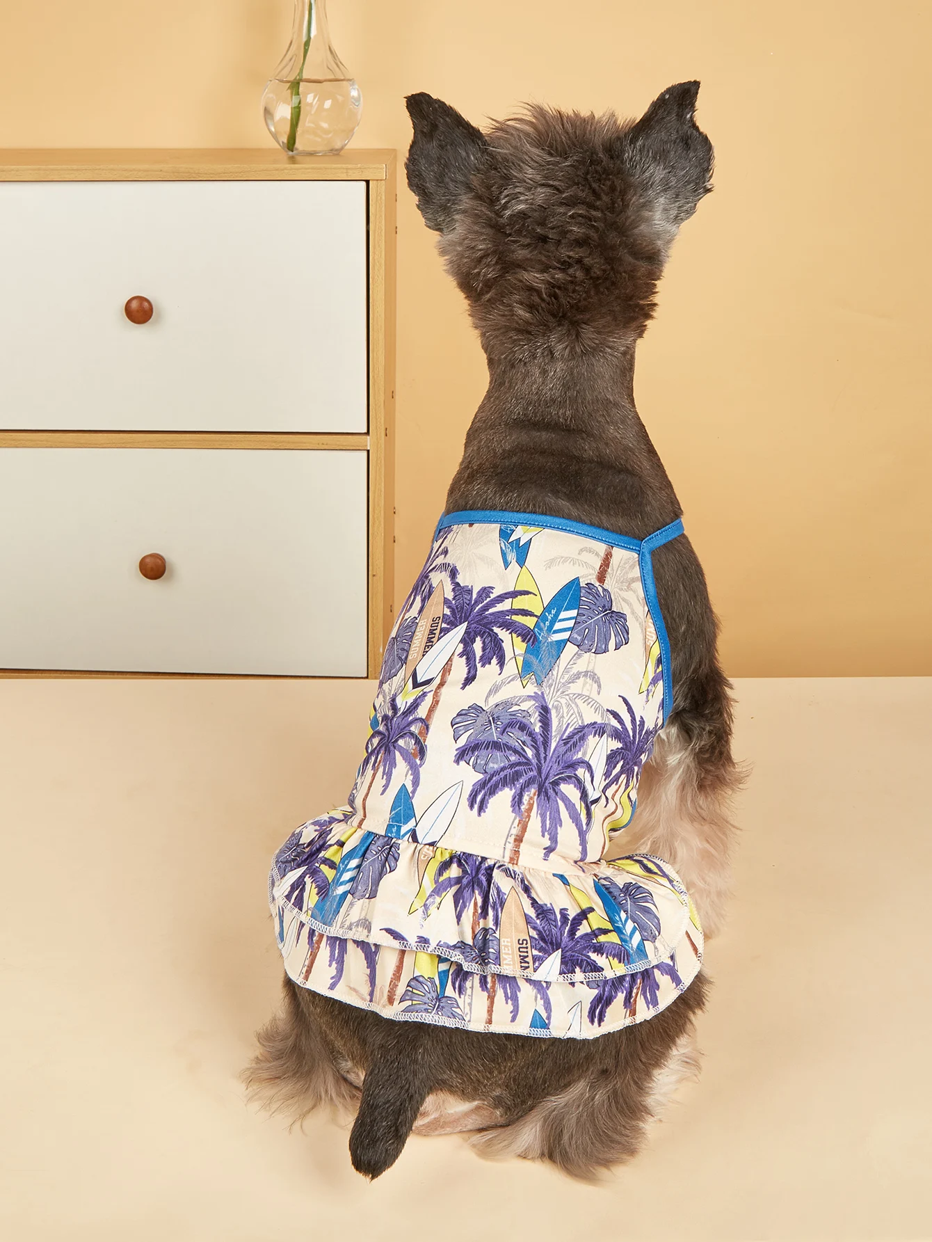 Vestido para perros pequeños, disfraz con estampado de árbol de coco para cachorros con dobladillo, ropa para perros y gatos, ropa para la playa