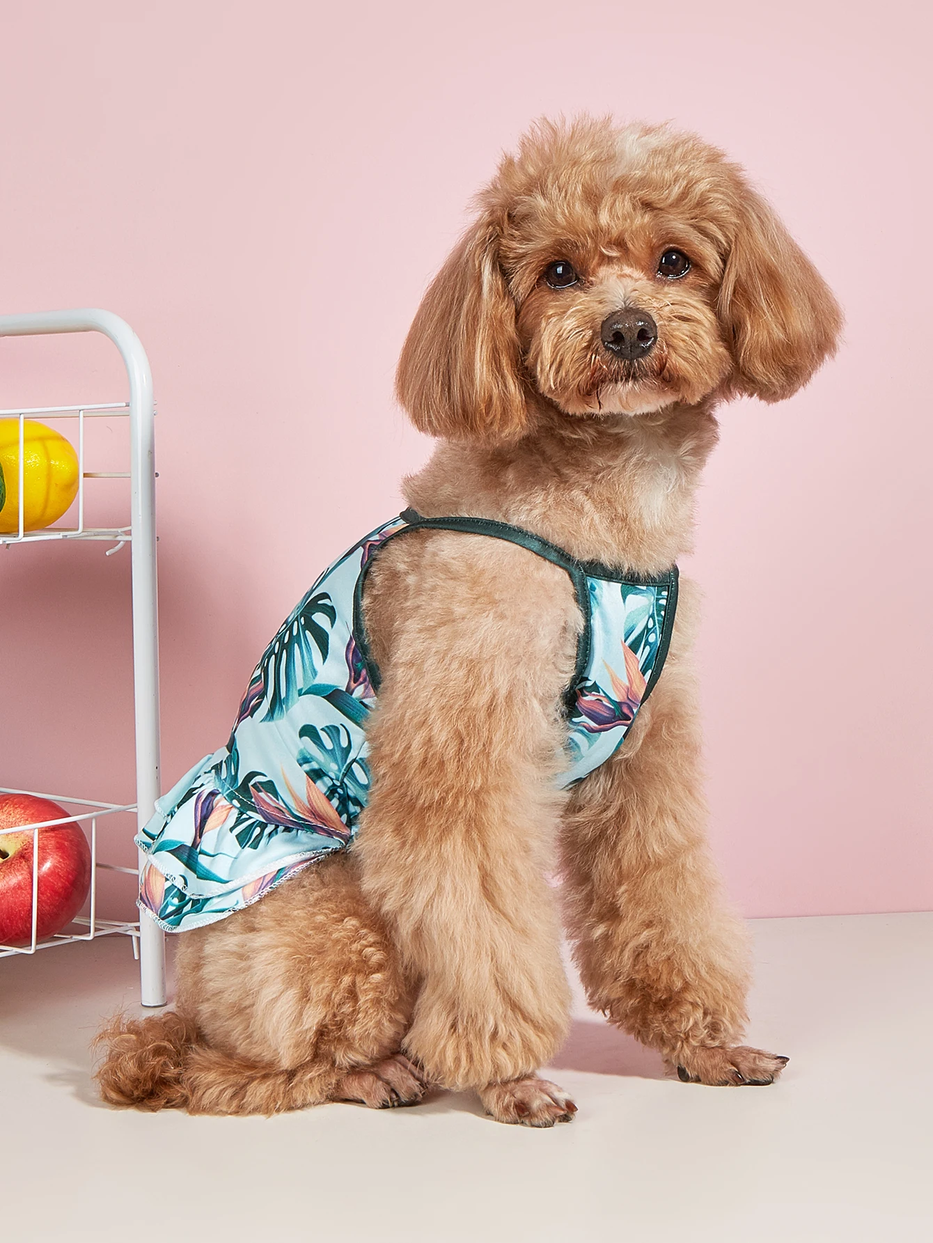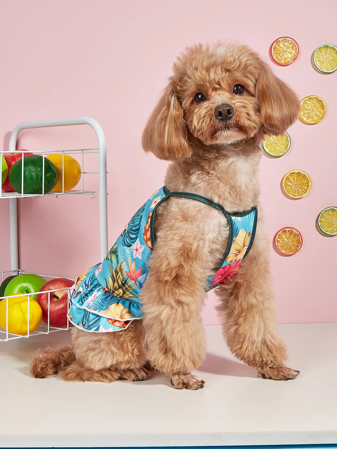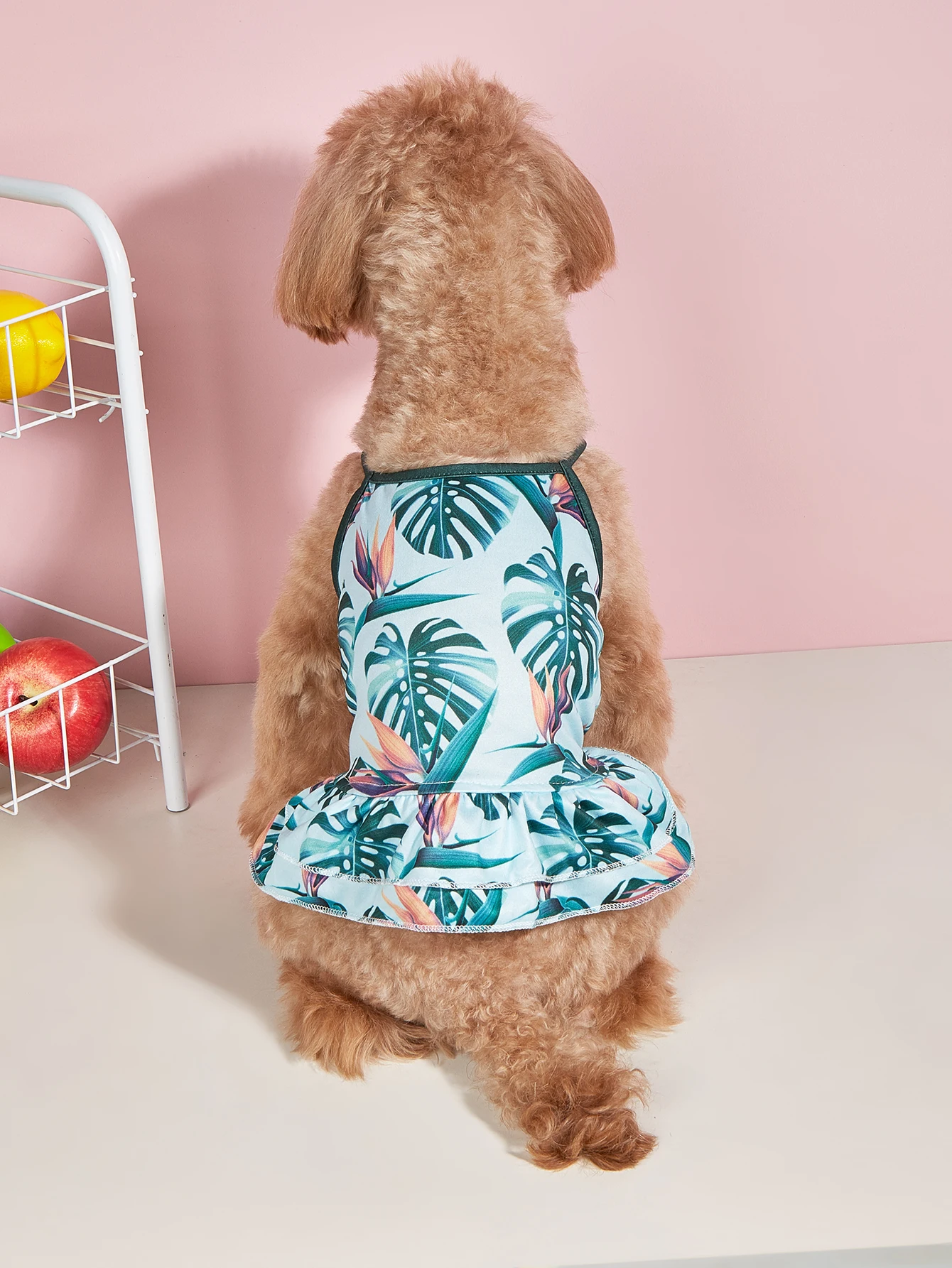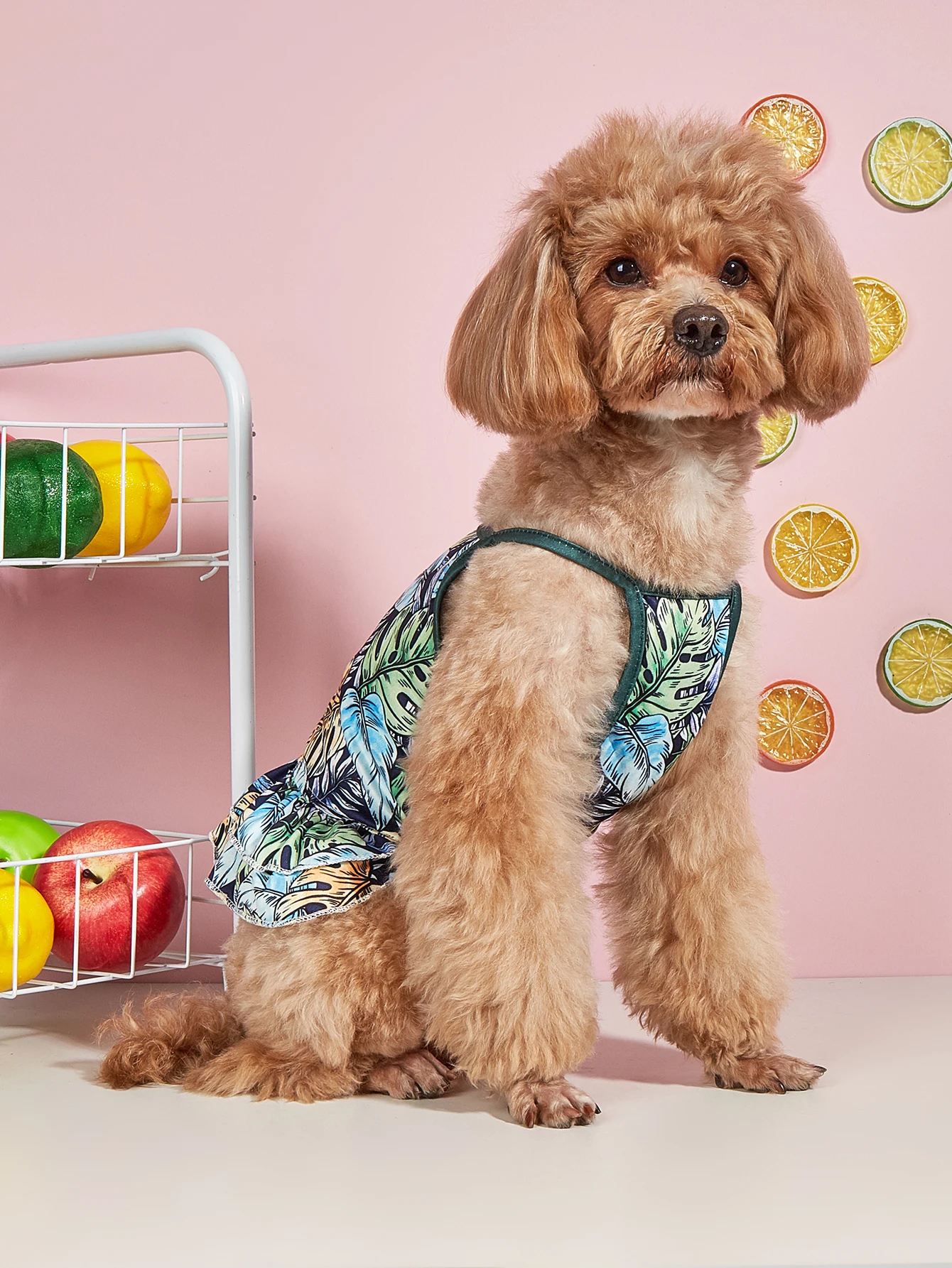 Vestido para perros pequeños, disfraz con estampado de árbol de coco para cachorros con dobladillo, ropa para perros y gatos, ropa para la playa