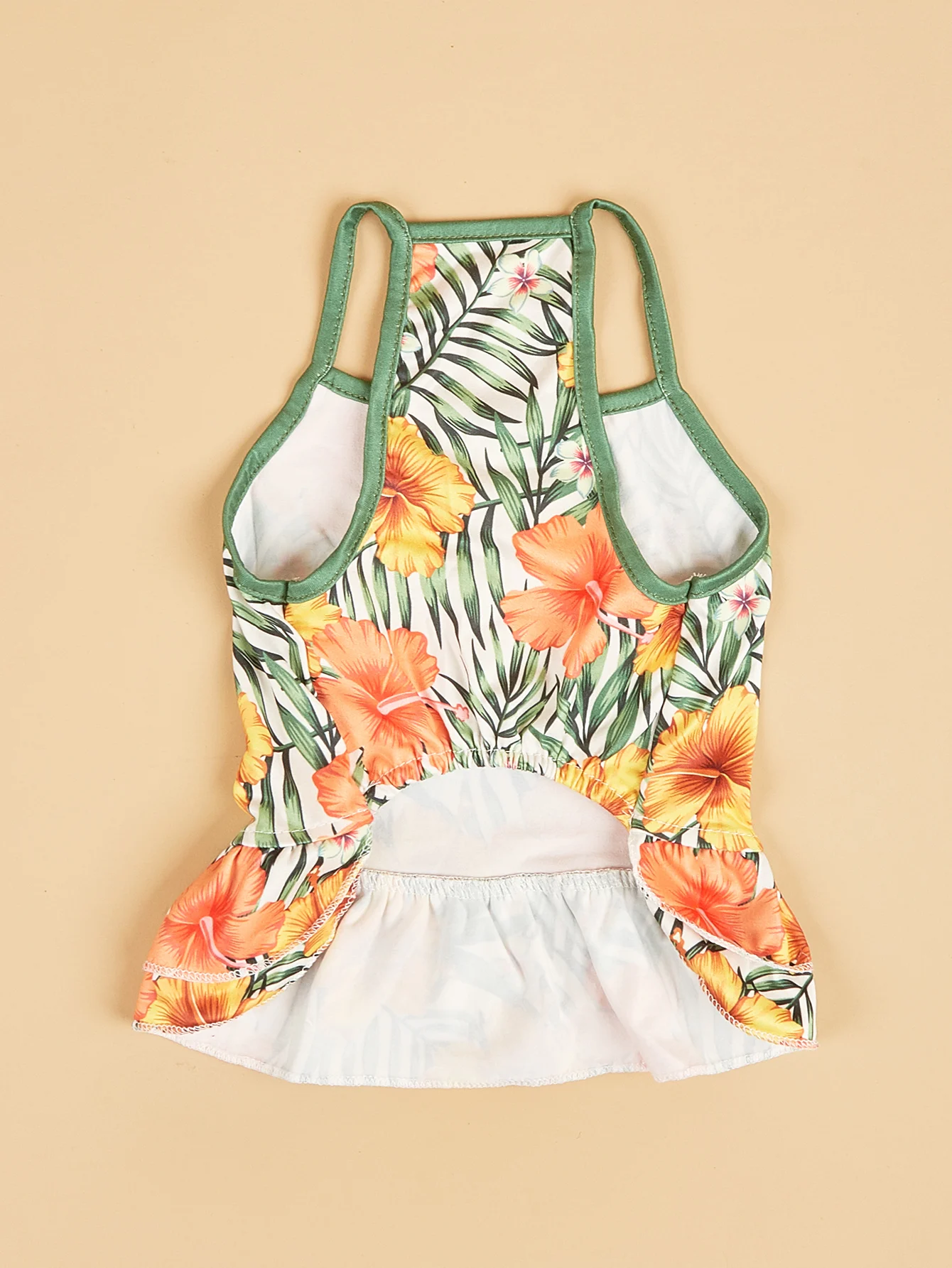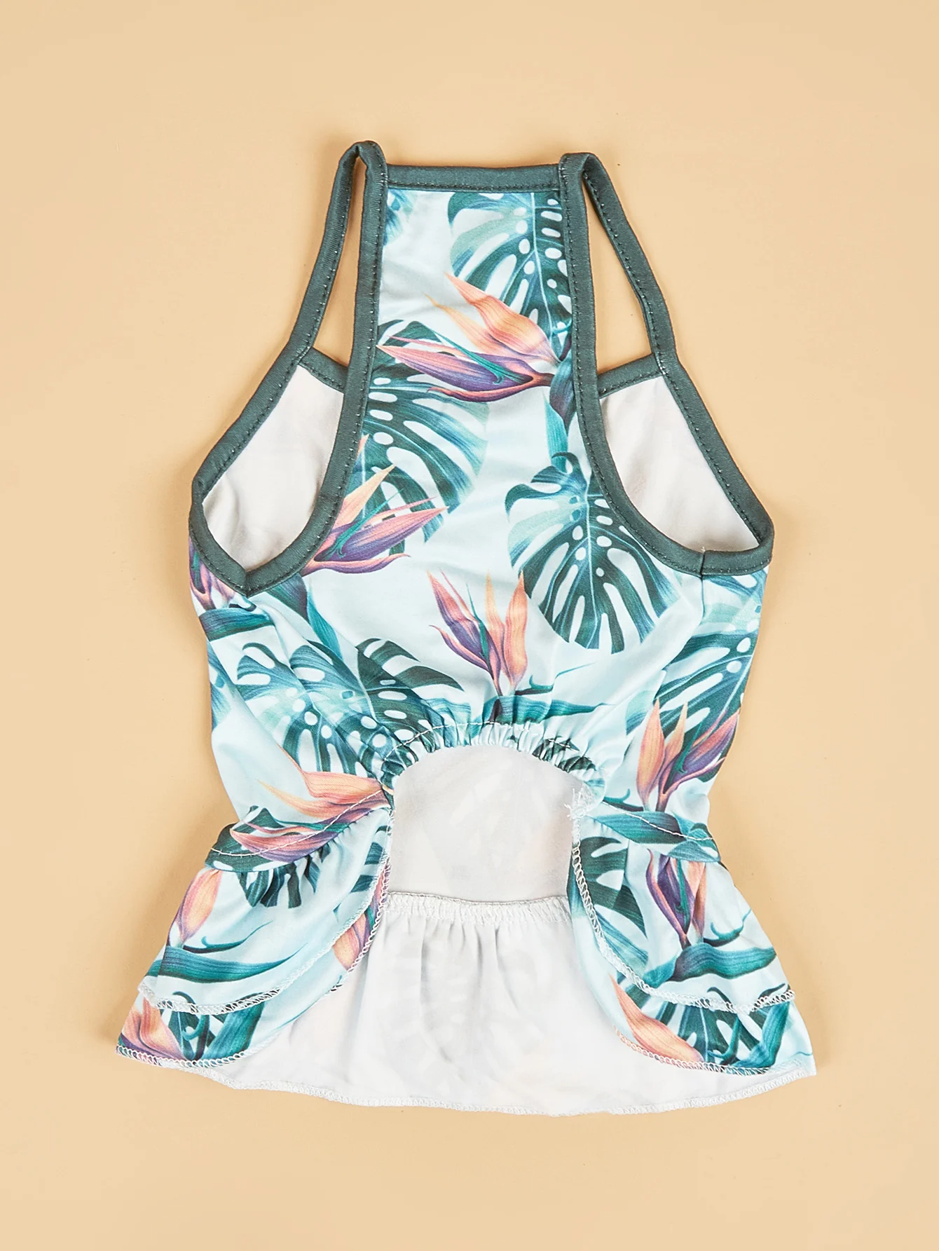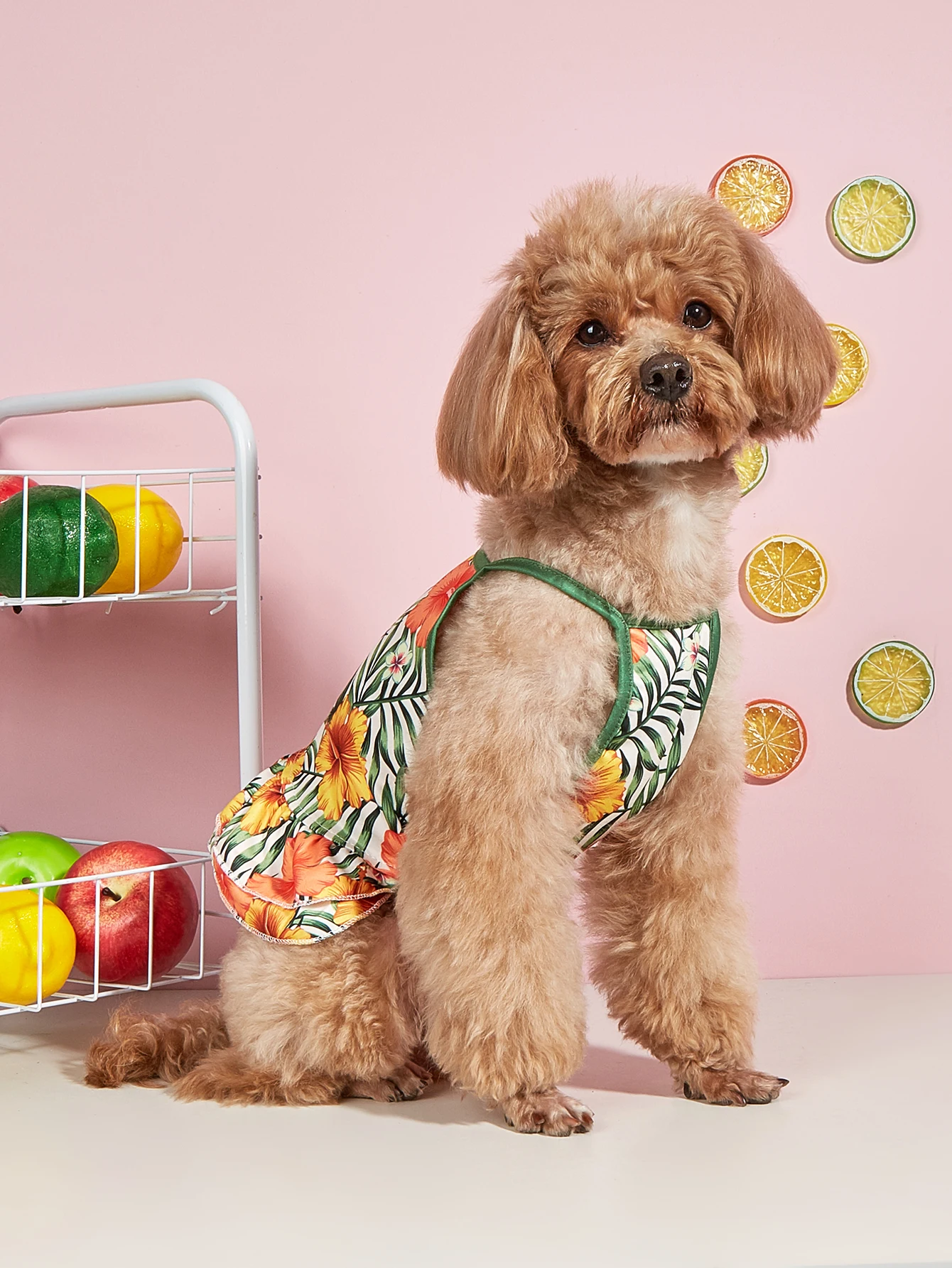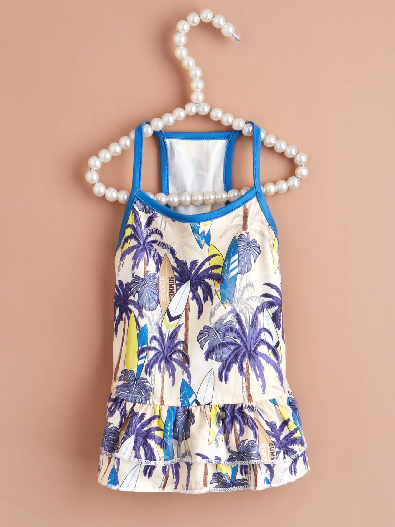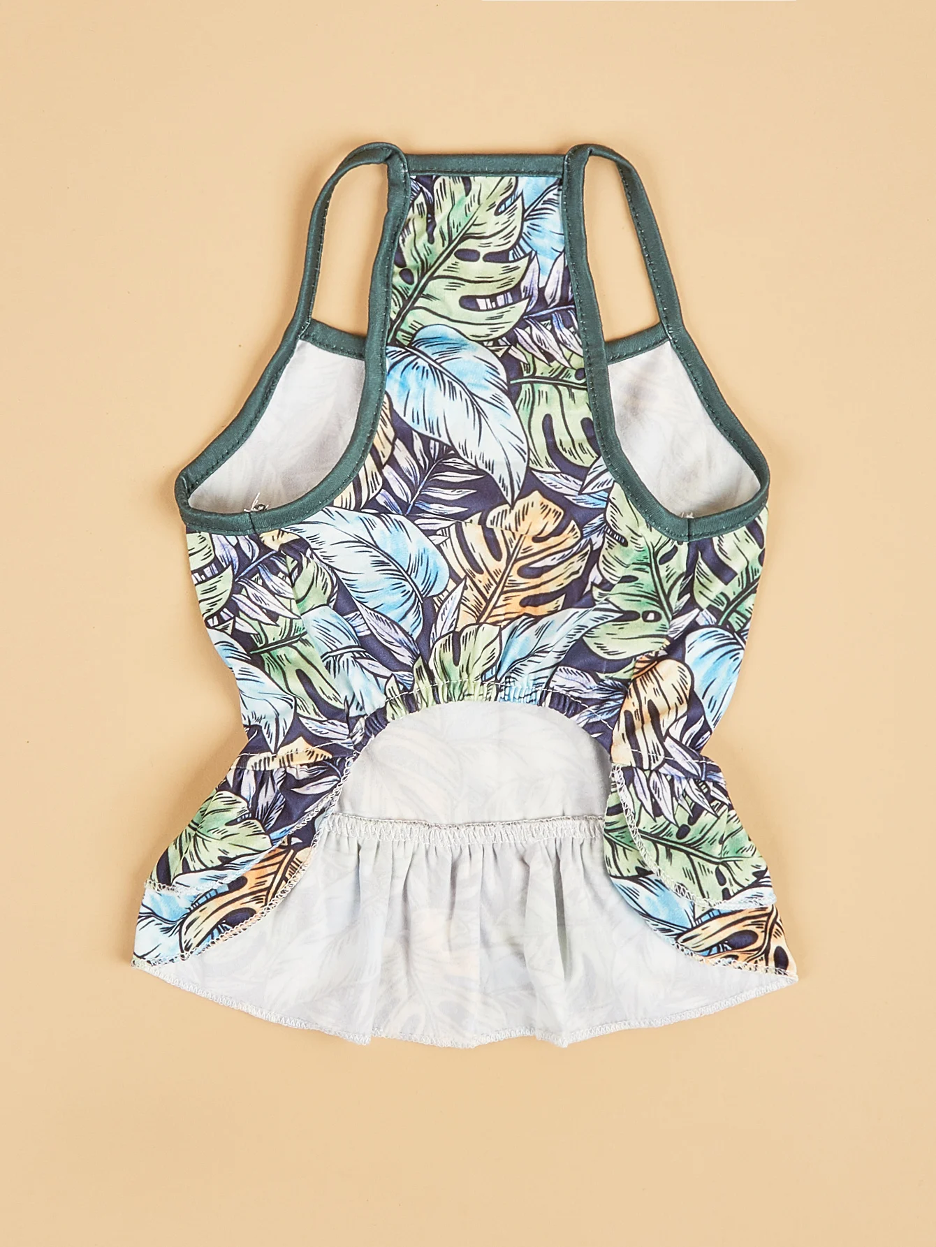 Vestido para perros pequeños, disfraz con estampado de árbol de coco para cachorros con dobladillo, ropa para perros y gatos, ropa para la playa