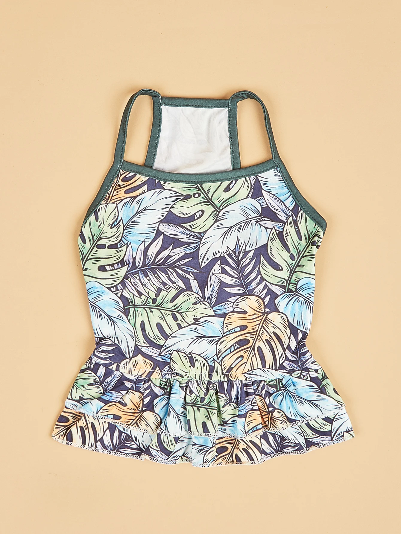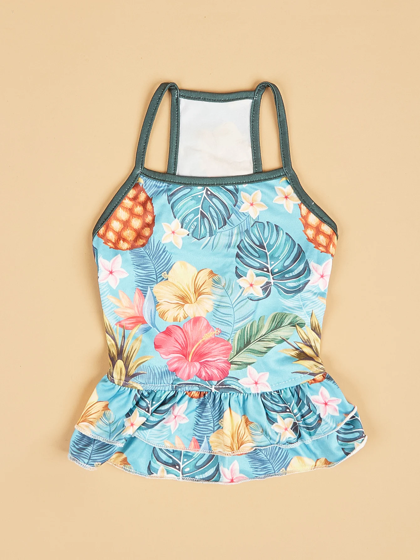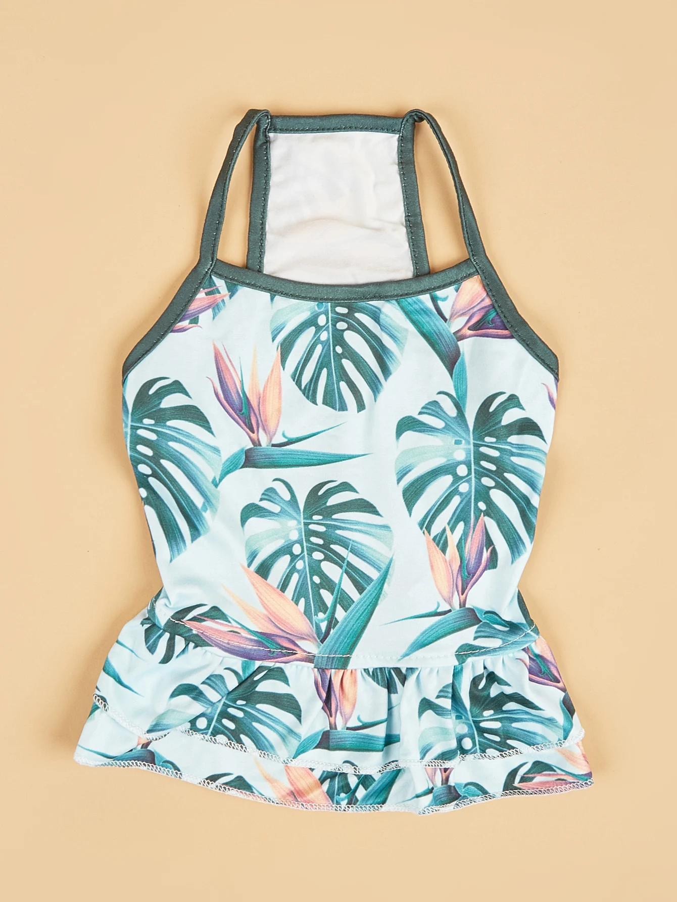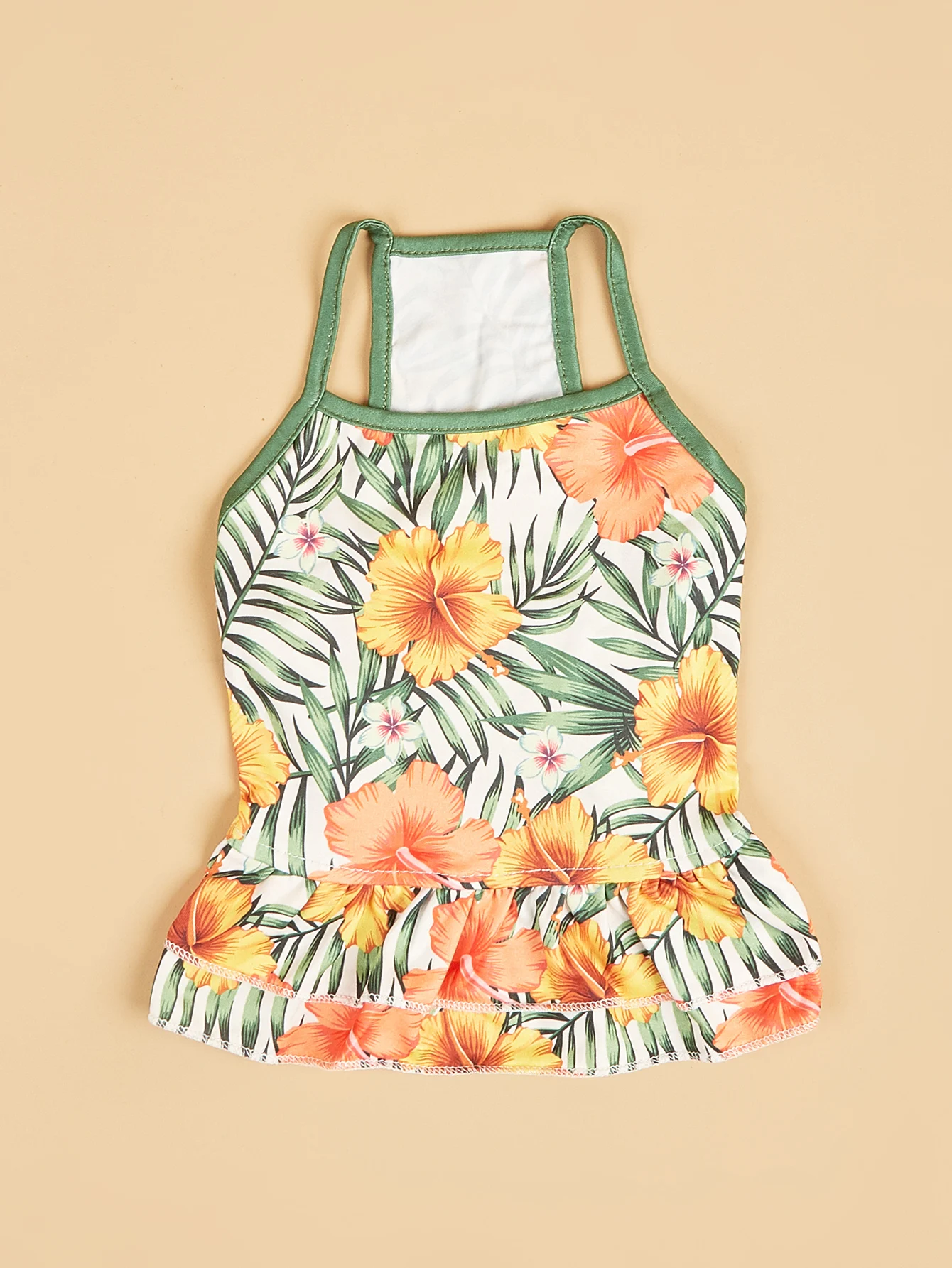 Vestido para perros pequeños, disfraz con estampado de árbol de coco para cachorros con dobladillo, ropa para perros y gatos, ropa para la playa