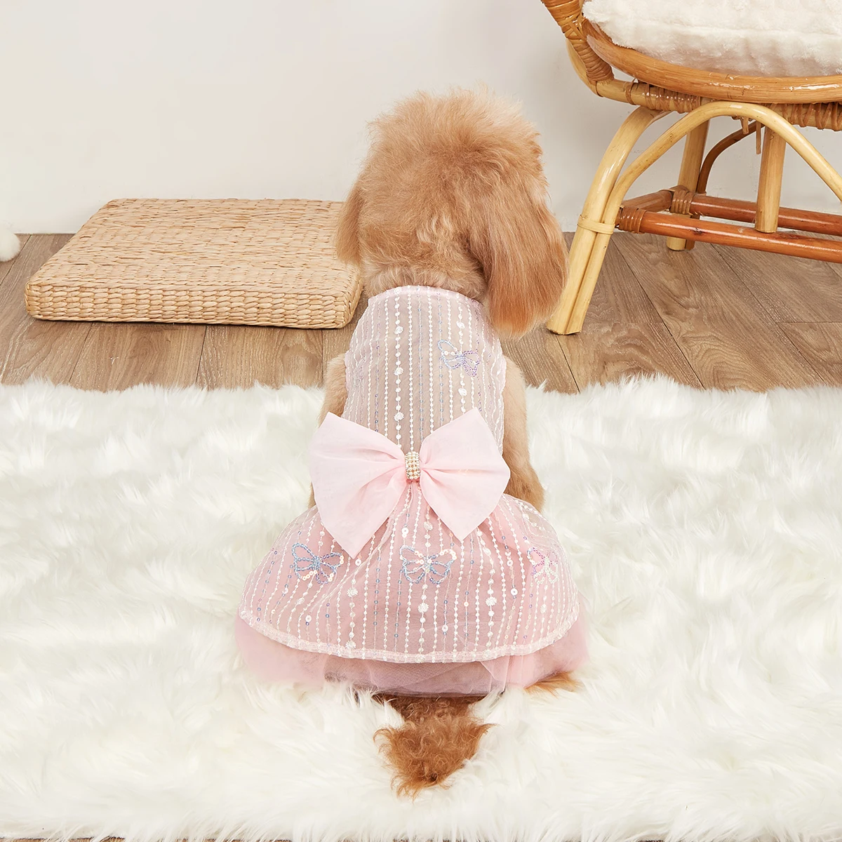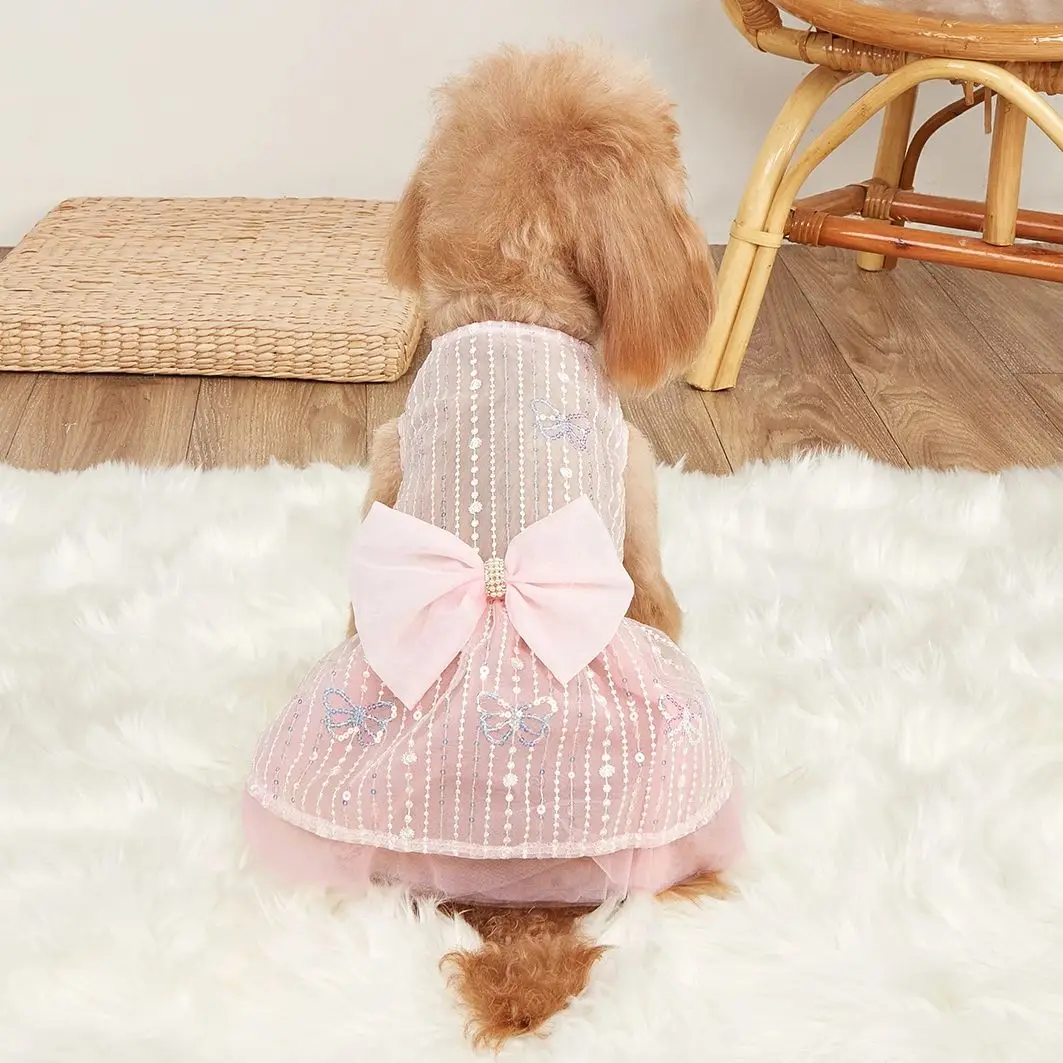 Vestido para perros pequeños, disfraz de mariposa con lentejuelas, vestidos de lujo para cachorros con lazo, hermoso perro de boda, ropa para gatos A