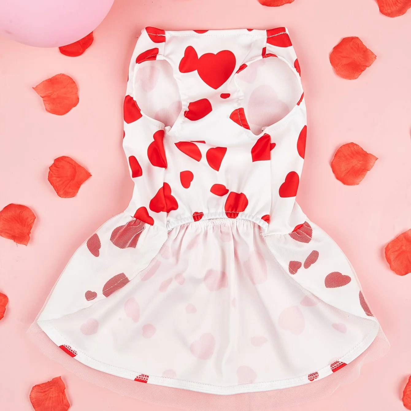 Vestido para perros y niñas, ropa sin mangas con estampado de corazón, ropa para mascotas, Perrito, lazo rosa, ropa de tul para gatos, vestidos para cachorros