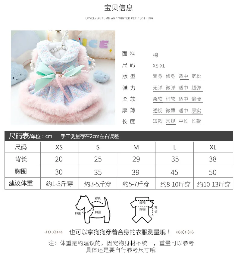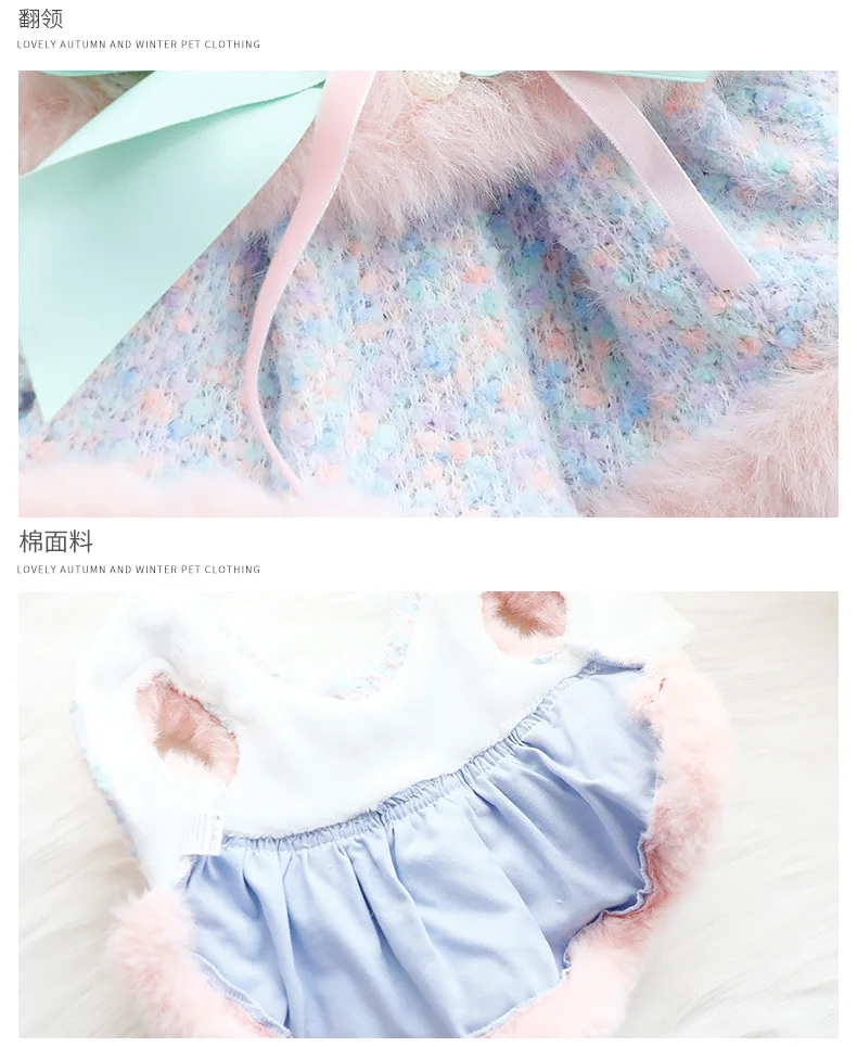 Vestido de piel para perro, vestido grueso de princesa para gato, abrigo de encaje de felpa colorido, tracción para perro pequeño, ropa para cachorros, otoño e invierno