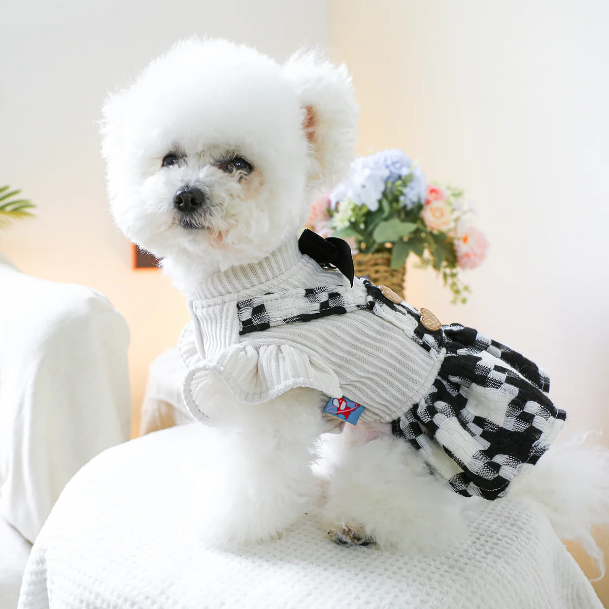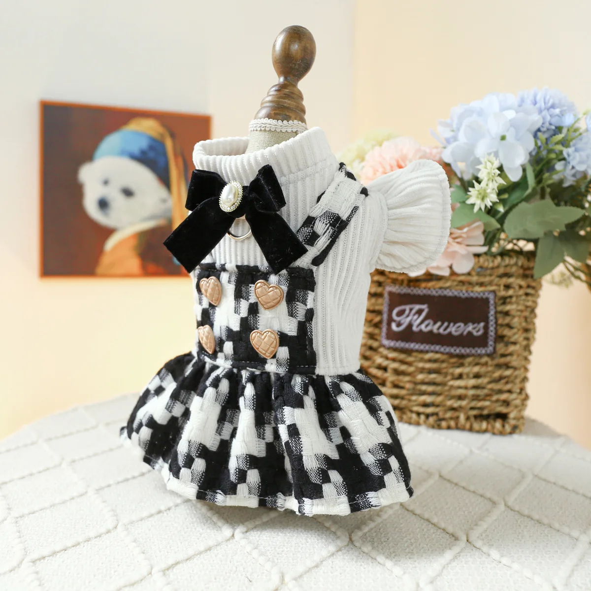 Vestido de dos piezas con lazo a cuadros para mascotas, abrigo a cuadros para perros, ropa para gatos, falda con tirantes de amor, ropa para cachorros, otoño e invierno