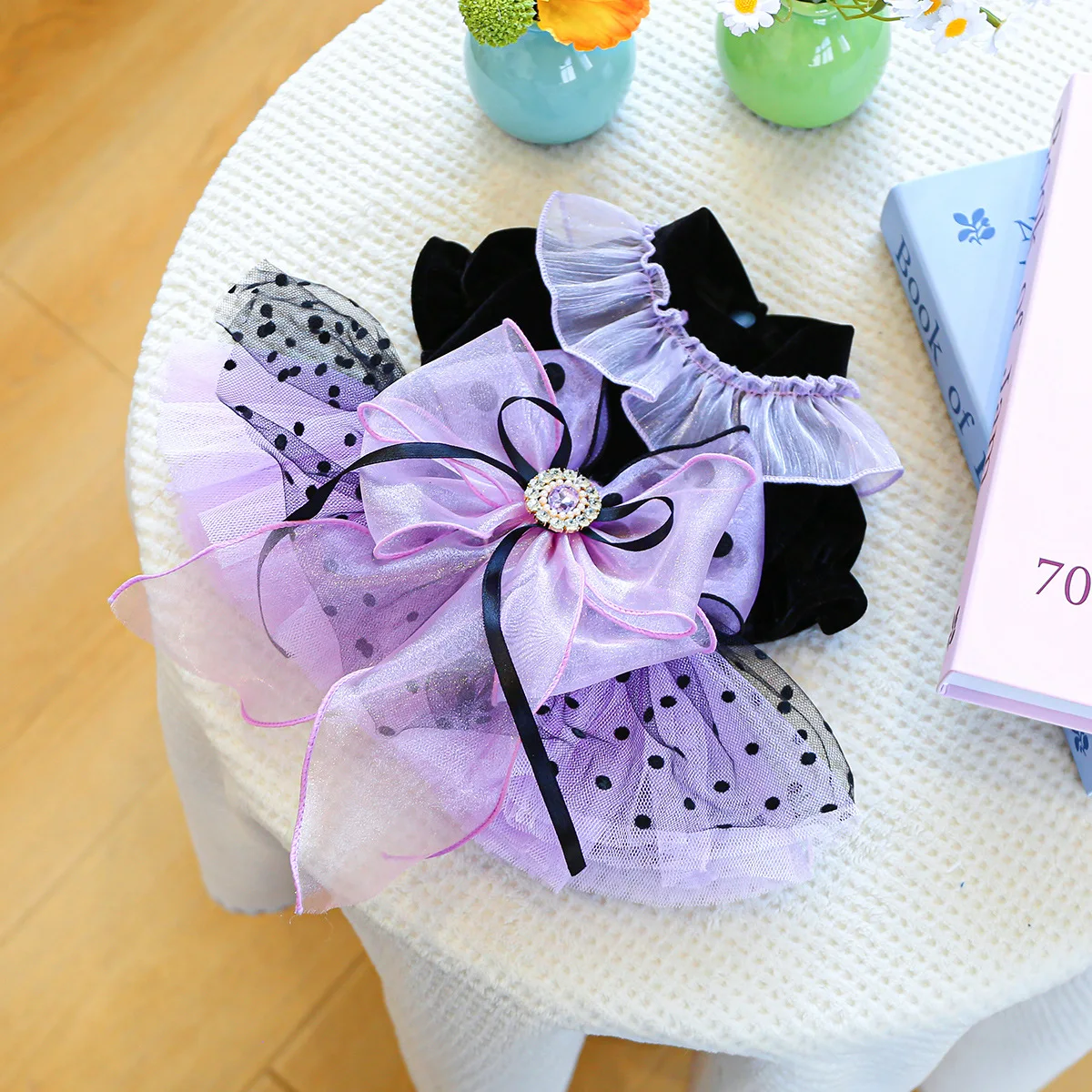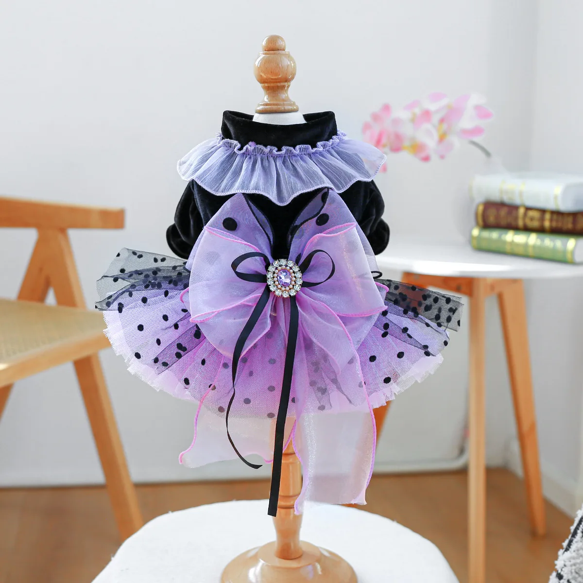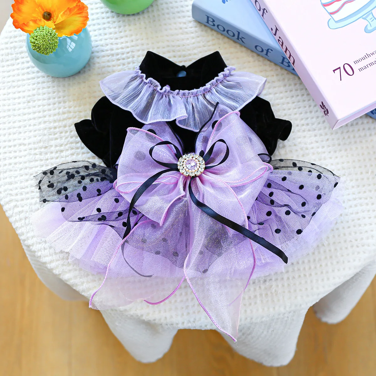 Vestido de primavera con cuello alto para mascotas, ropa de malla con lazo grande para perros, falda esponjosa, vestidos para perros pequeños, ropa para cachorros