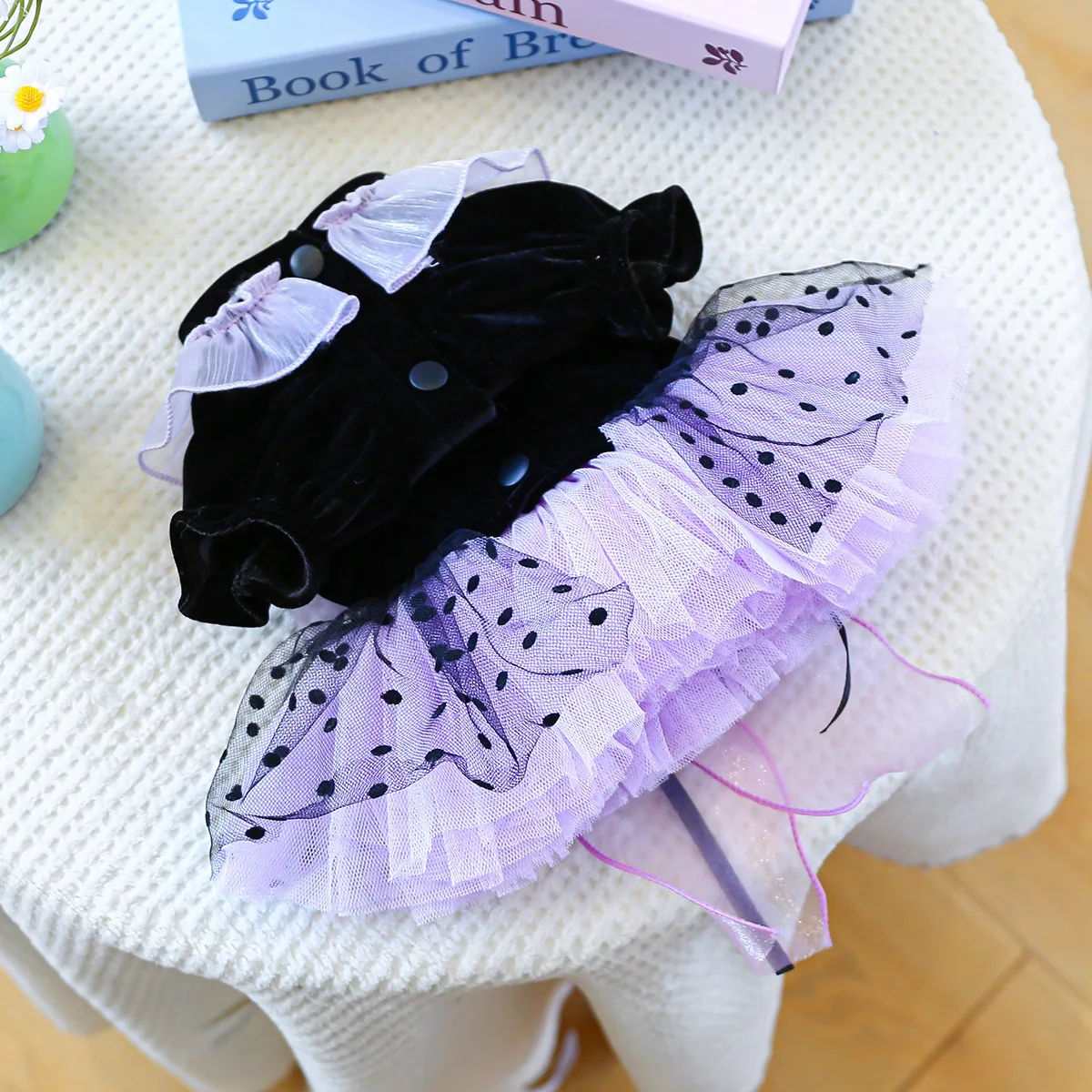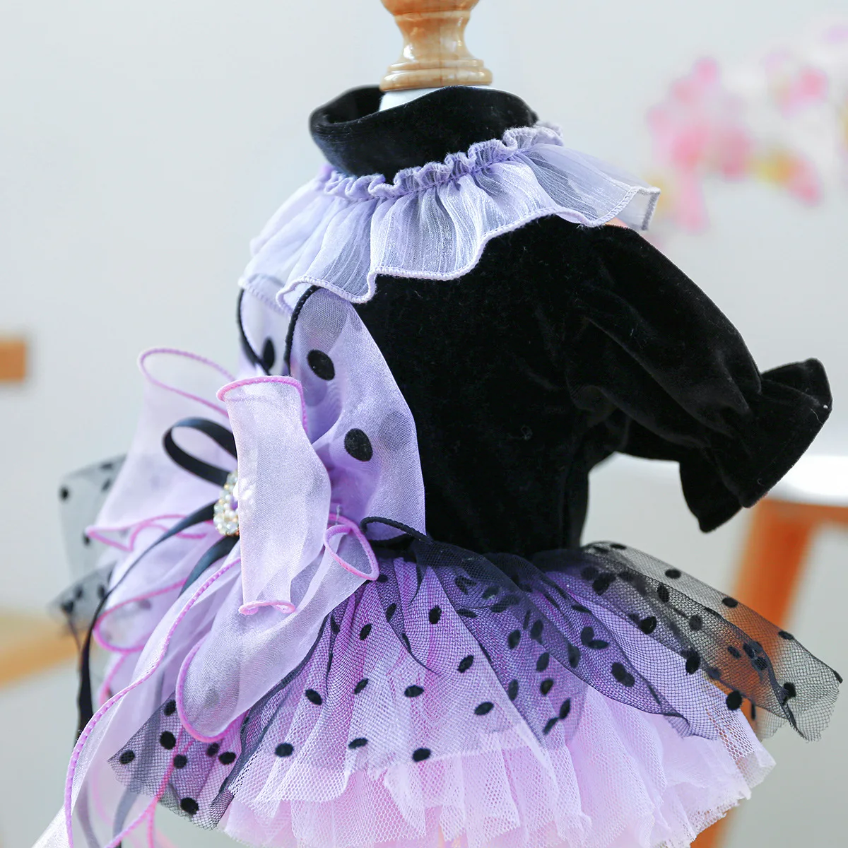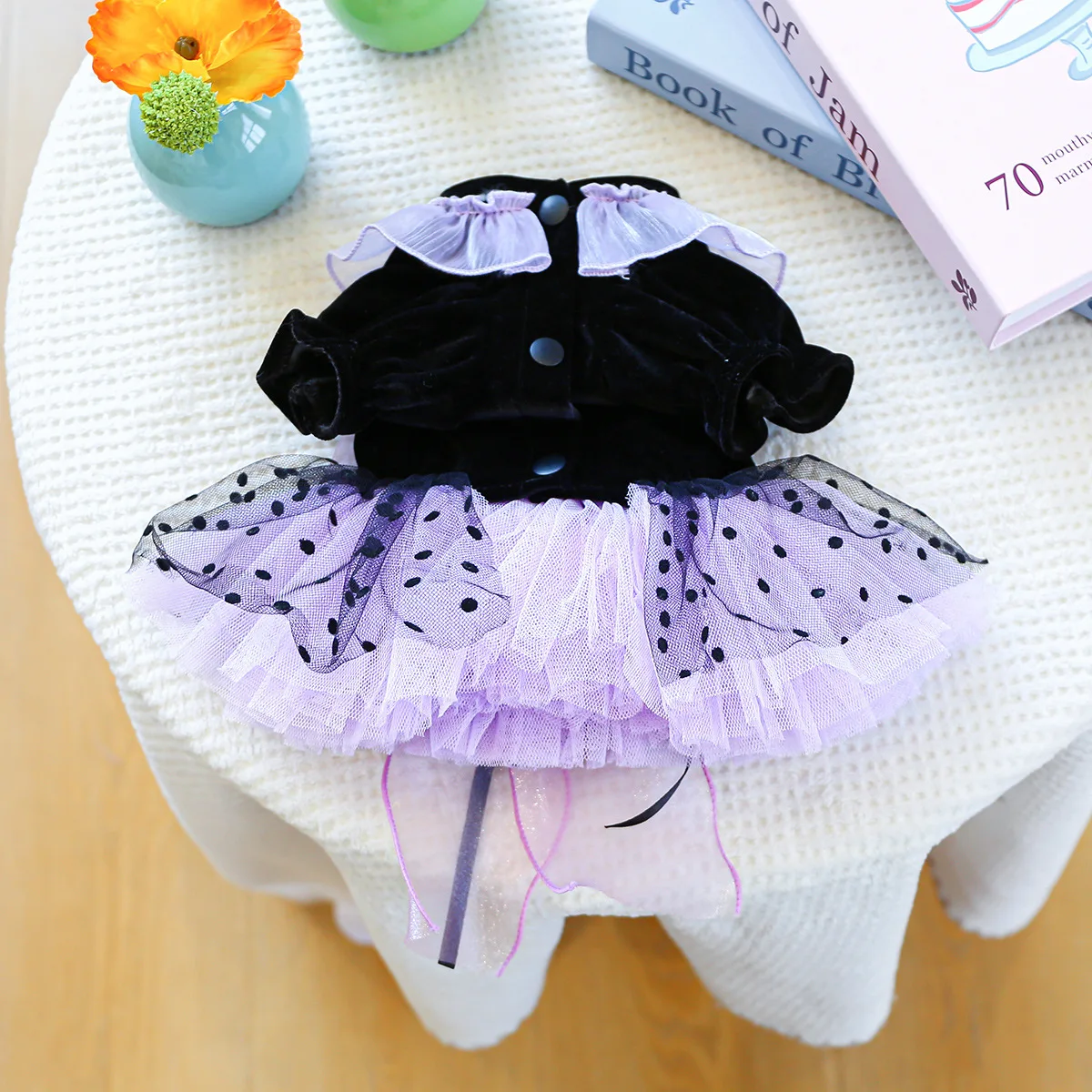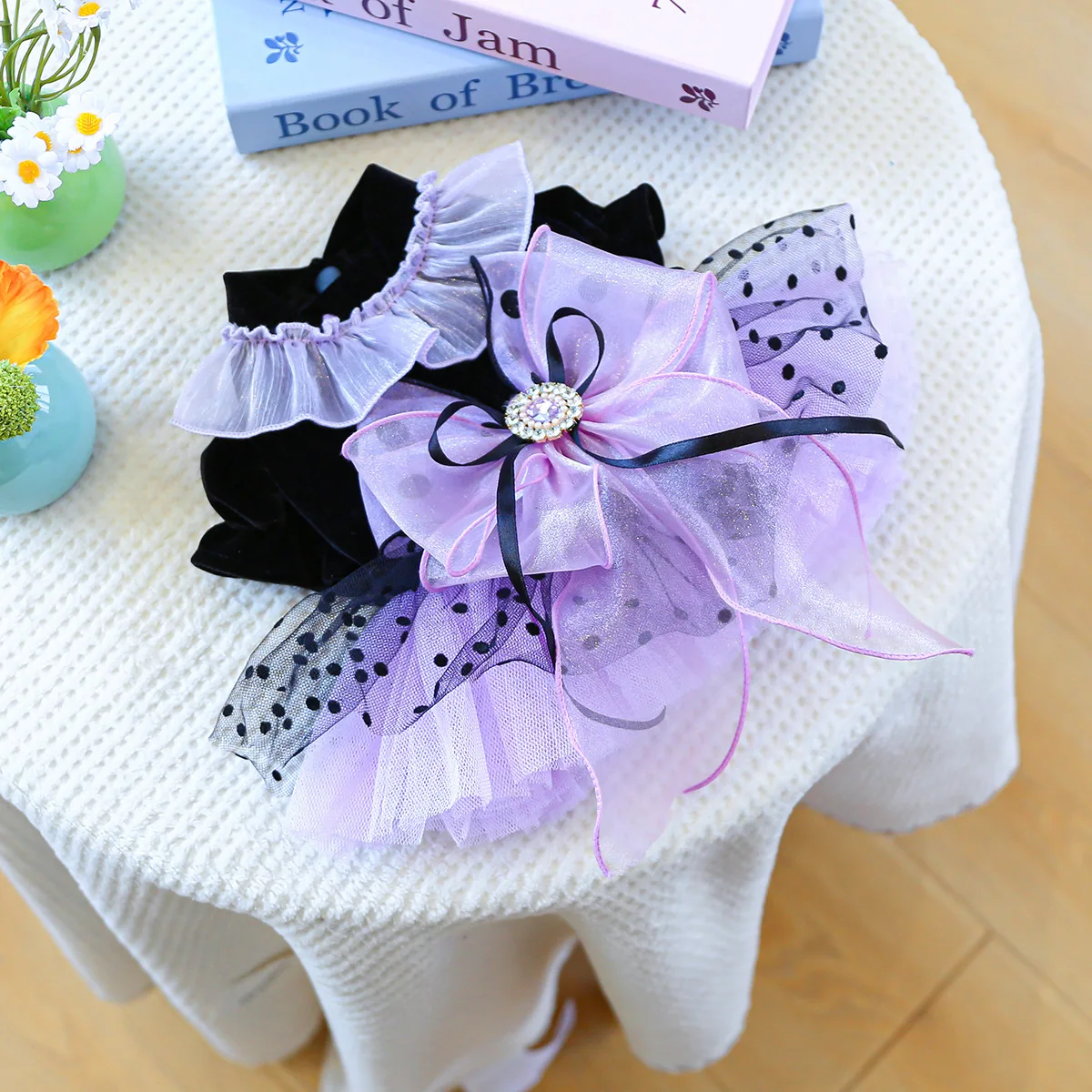 Vestido de primavera con cuello alto para mascotas, ropa de malla con lazo grande para perros, falda esponjosa, vestidos para perros pequeños, ropa para cachorros